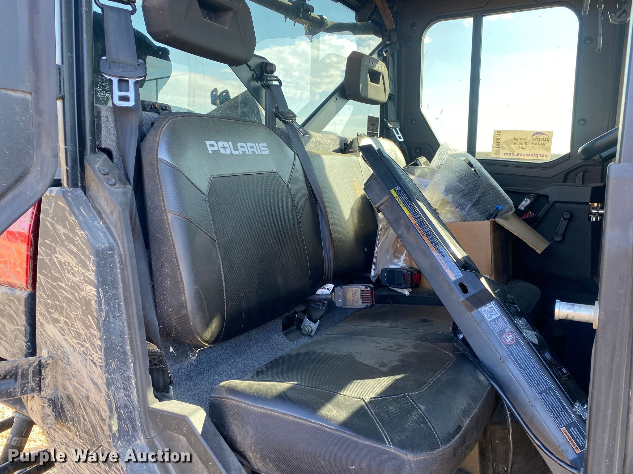Purple Wave is selling a used Utility Vehicle in Oklahoma. This item is a 2019 Polaris Ranger utility vehicle with the following: Miles: 664 on odometer, Hours: 166 on meter, VIN: 4XARSU997K8553119