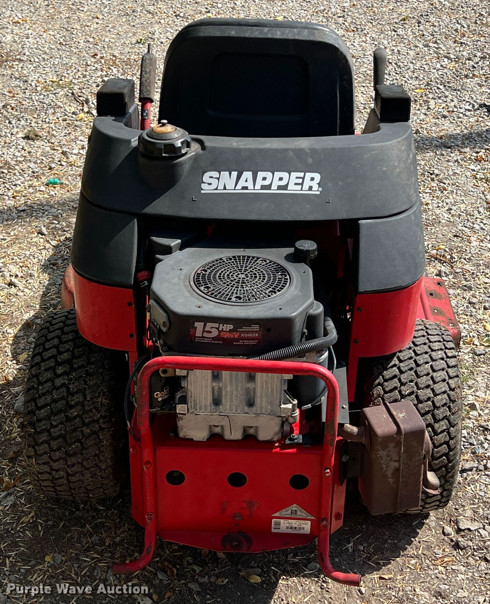 Snapper Z-Rider ZTR lawn mower. Cutting width: 44", Serial: 21383197. Engine Kohler, Cylinders: 2, Fuel type: Gas, HP: 15. Transmission Hydrostatic. Tires Front: 11x4.00-5, Rear: 18x8.50-8. Notes Non-operational unit. Pittsburg, KS 66762