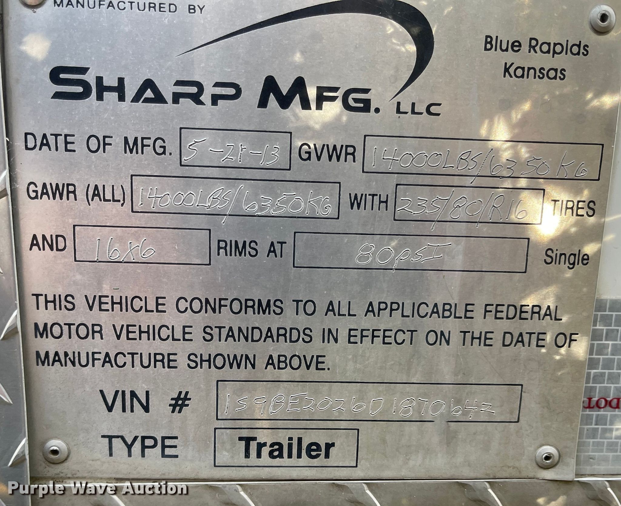 Purple Wave is selling a used Enclosed Cargo Trailer in Kansas. This item is a 2013 Sharp spray foam trailer with the following: VIN: 1S9BE2026D1870642