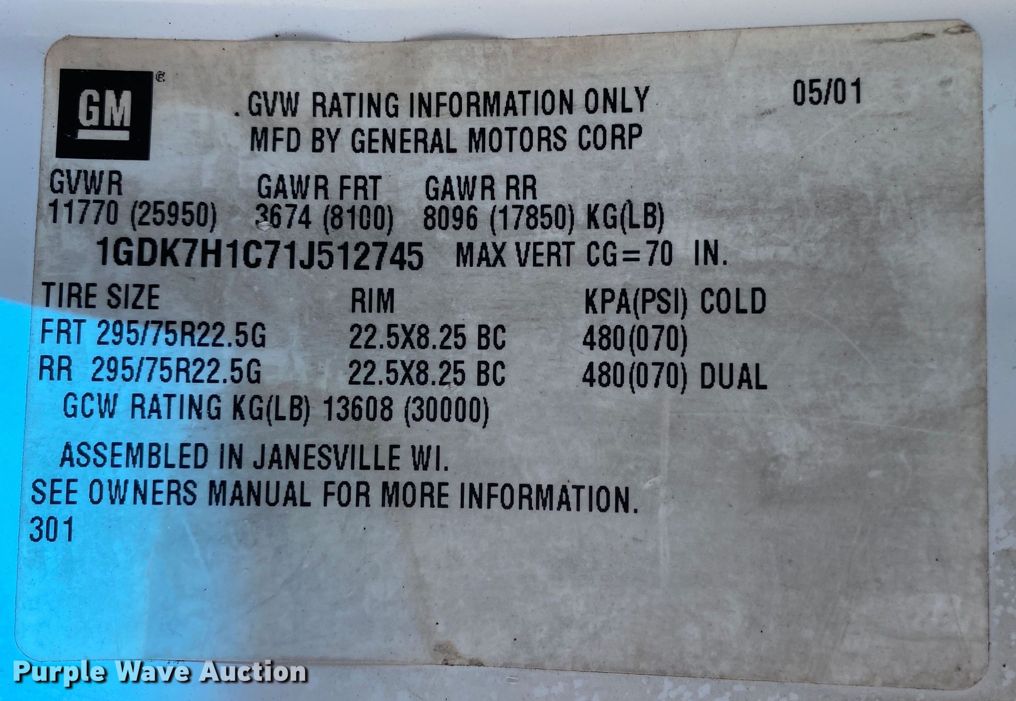 - VIN: 1GDK7H1C71J512745