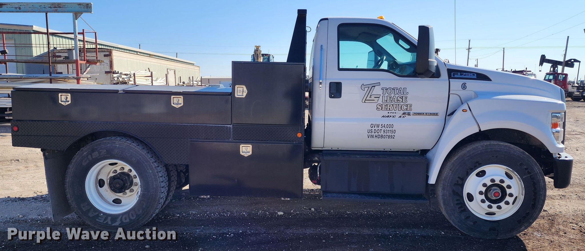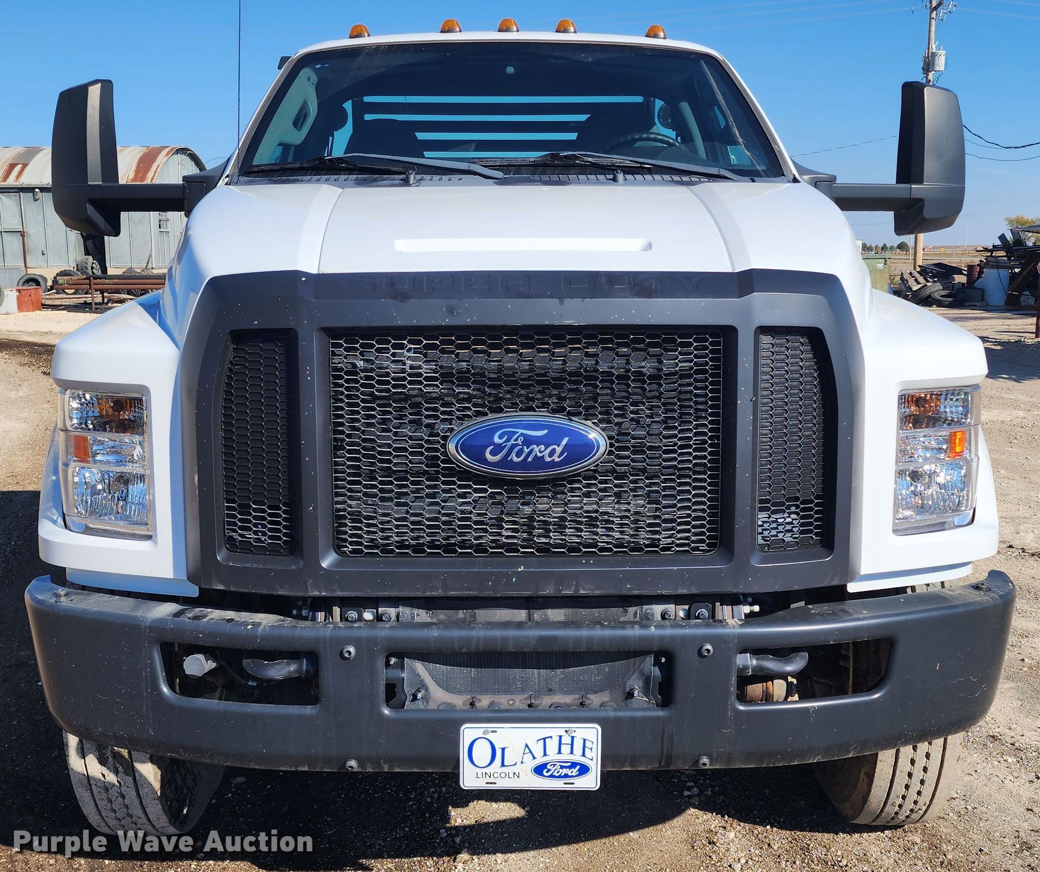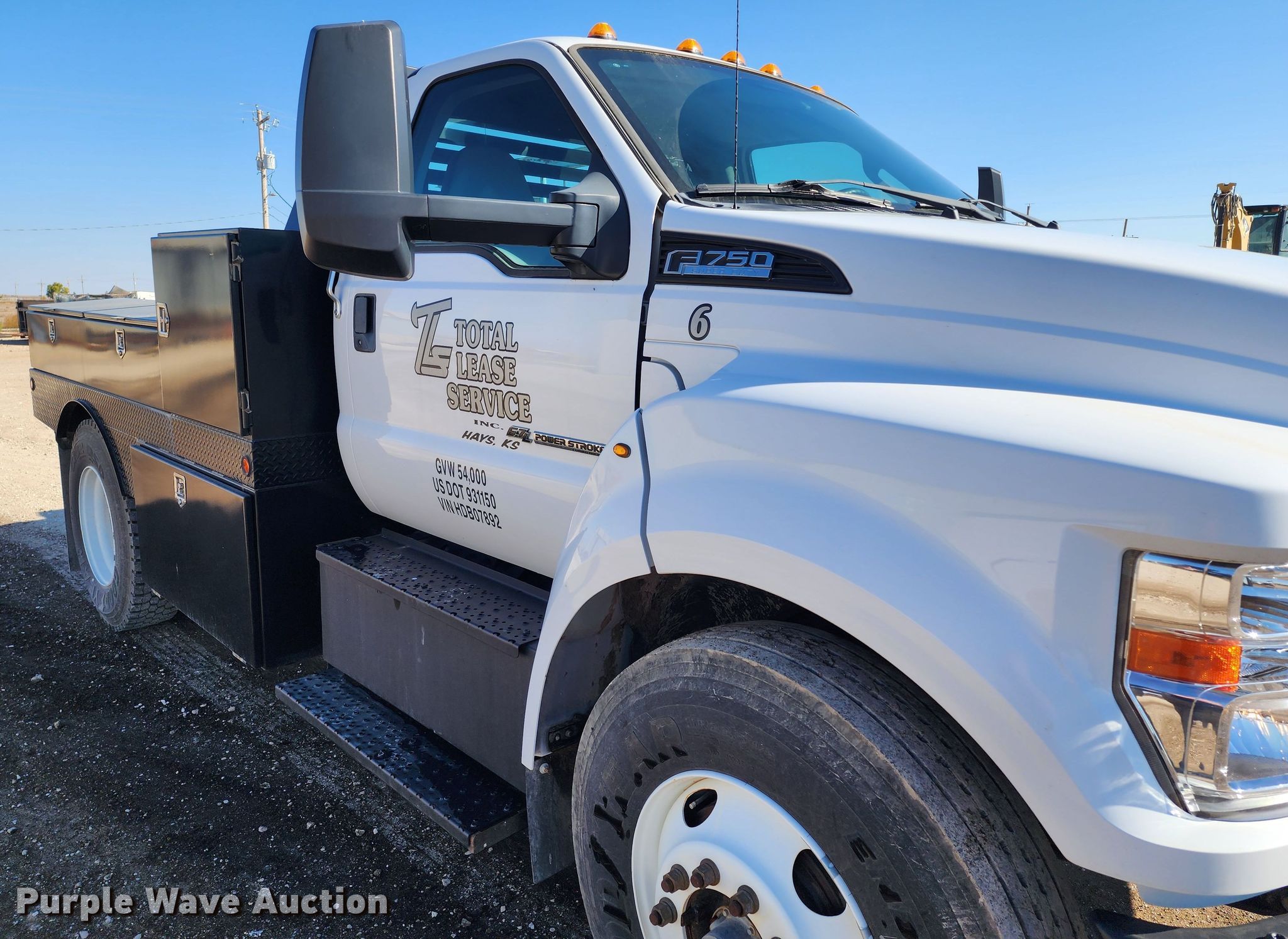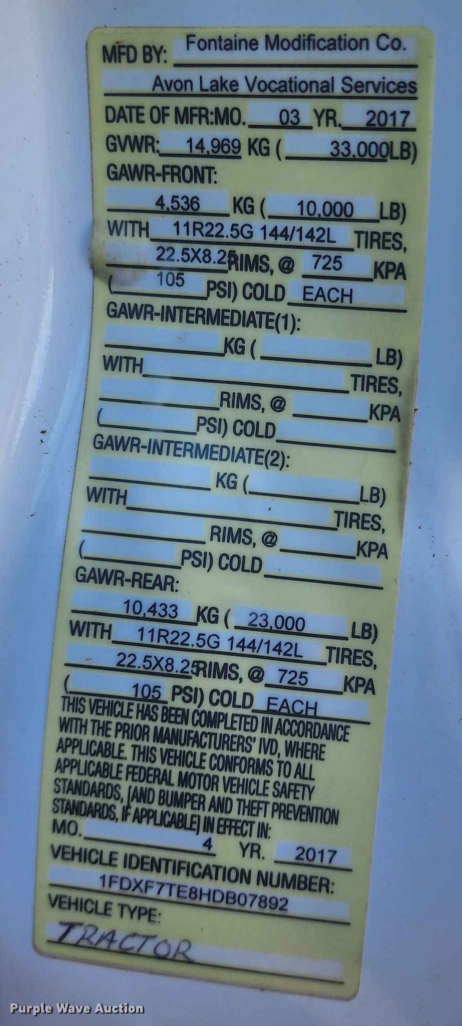 2017 Ford F750 Super Duty flatbed truck. Miles: 4,613 on odometer, VIN: 1FDXF7TE8HDB07892. Engine Displacement: 6.7L, Cylinders: 8, Fuel type: Diesel. Transmission Automatic. Chassis Axles: Single, Suspension: Air, Brakes: Air, GVWR: 33,000 lbs, Differential lock. Interior AC, Heat, Cruise control, Auxiliary controls. Features Flatbed 10' 2" L x 8' W, Hitch: Gooseneck. Tires Size: 11R22.5. Notes Contents not included. Kansas title. Title distribution may be delayed up to 14 days from verification of funds. Total Lease Service, Inc.. 1309 Toulon Ave. Hays, KS 67601