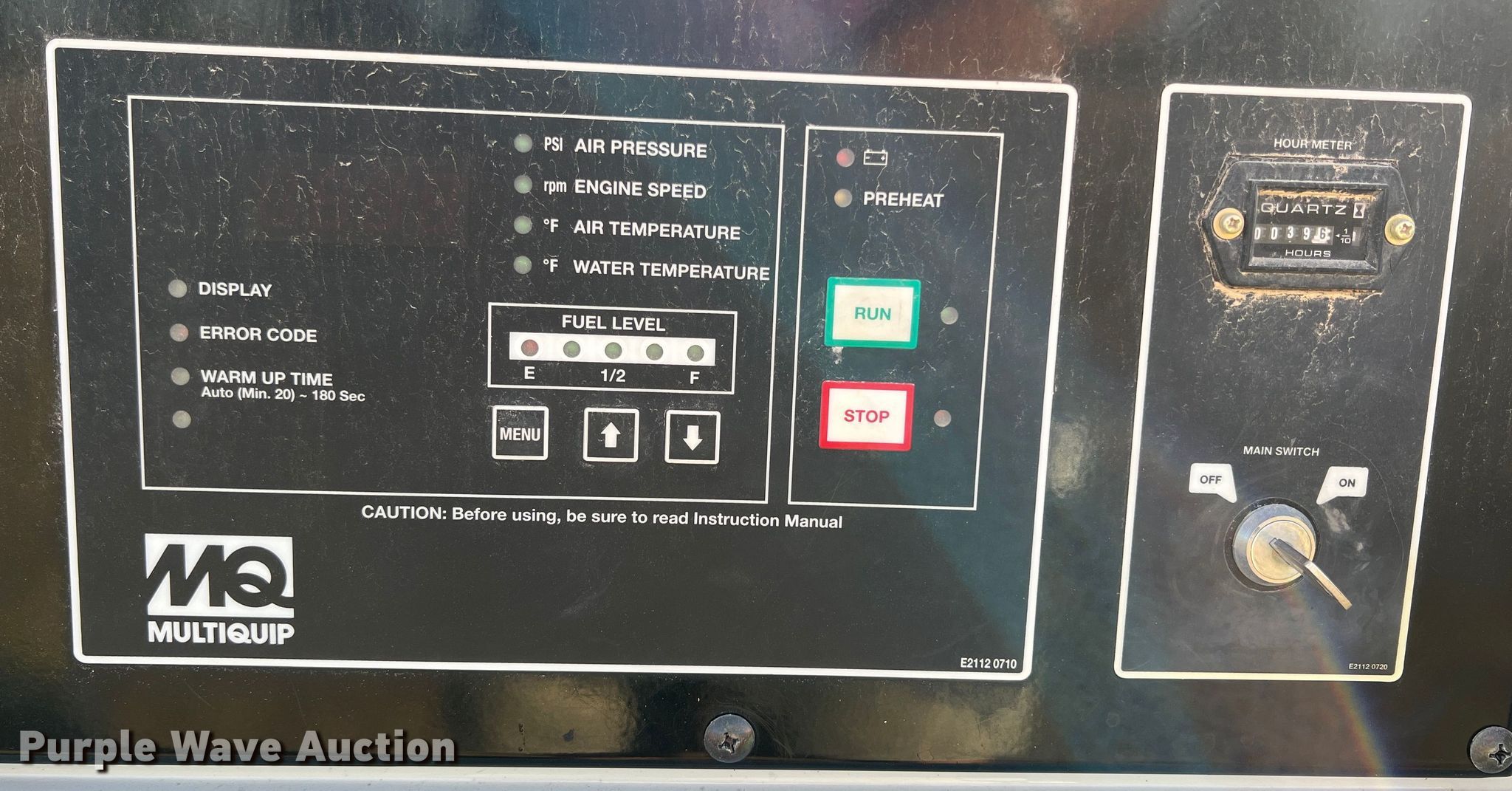 Purple Wave is selling a used Air Compressor in Oklahoma. This item is a Multiquip DIS-185SSI4F air compressor with the following: Hours: 40 on meter, Serial: 9500021