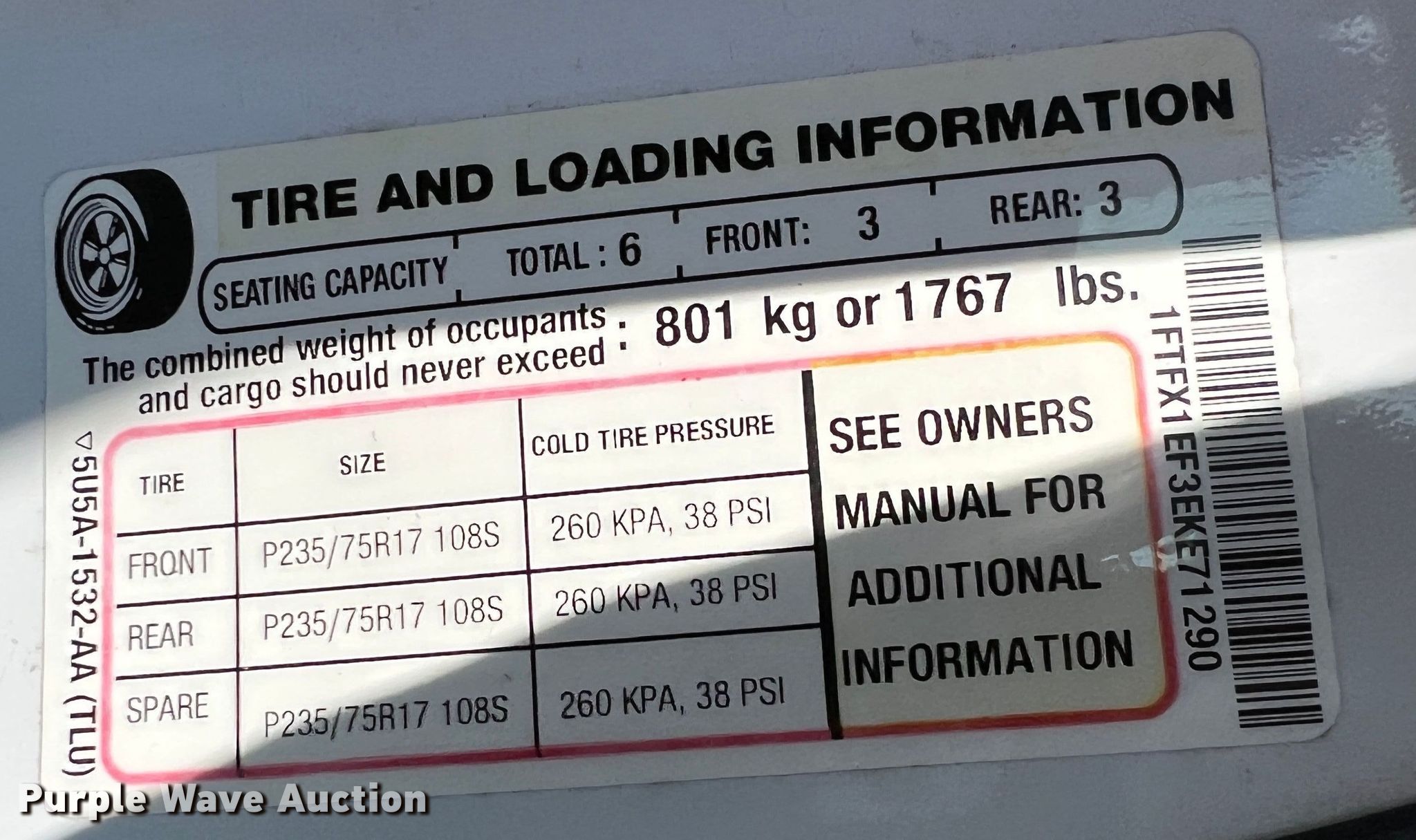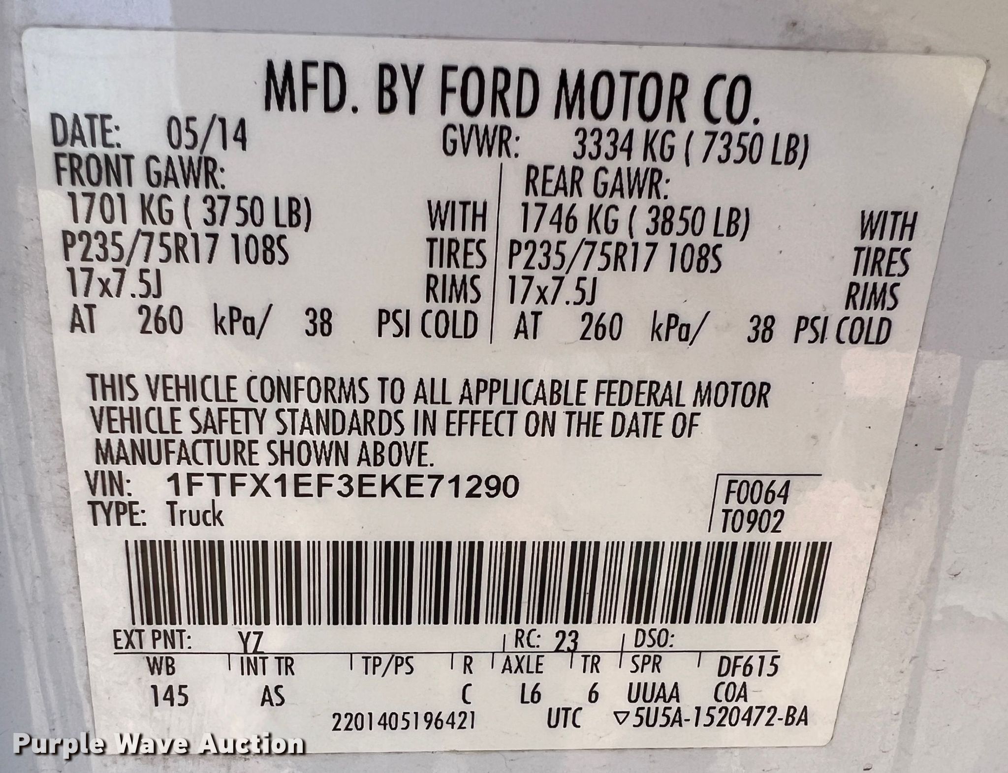 - VIN: 1FTFX1EF3EKE71290