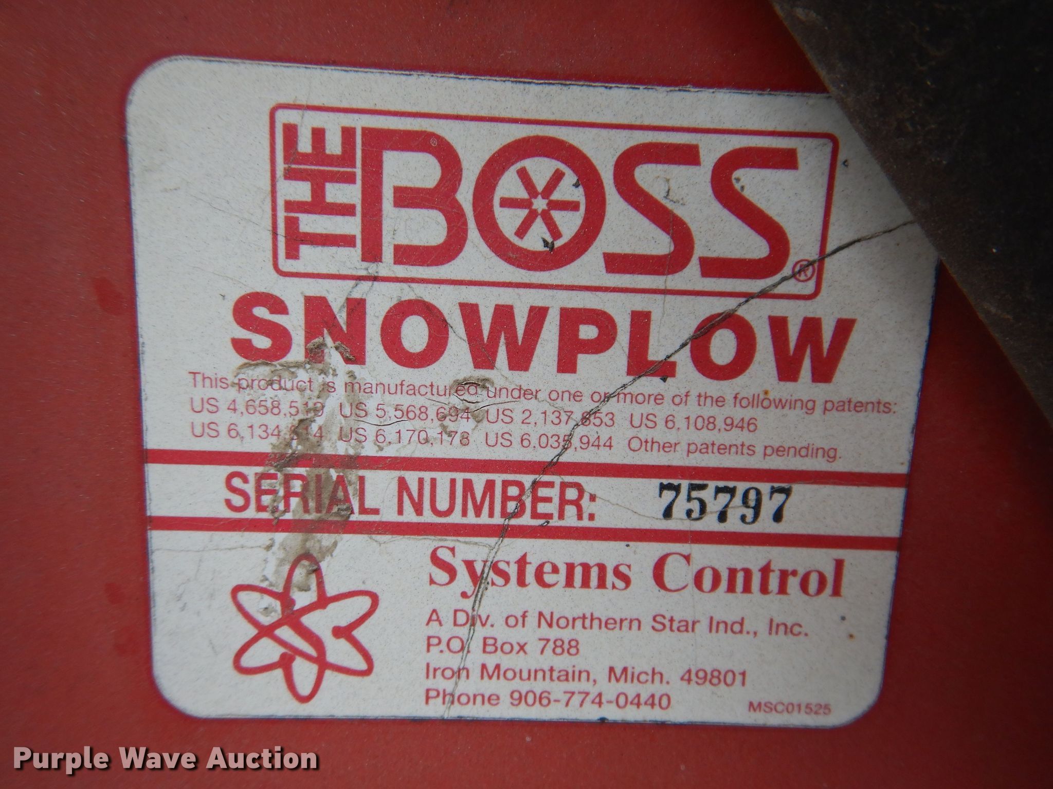 The Boss The Boss 9'W snow plow. Serial: 75797. 1300 Lincoln Street. West Des Moines, IA 50265