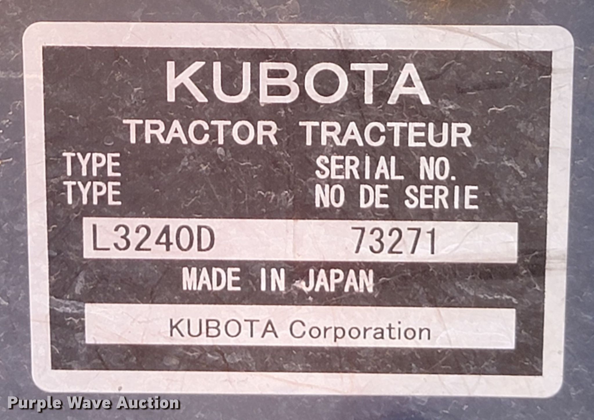 Purple Wave is selling a used Tractor Loader Backhoe in South Dakota. This item is a Kubota L3240 backhoe with the following: Hours: 726 on meter, Serial: 73271