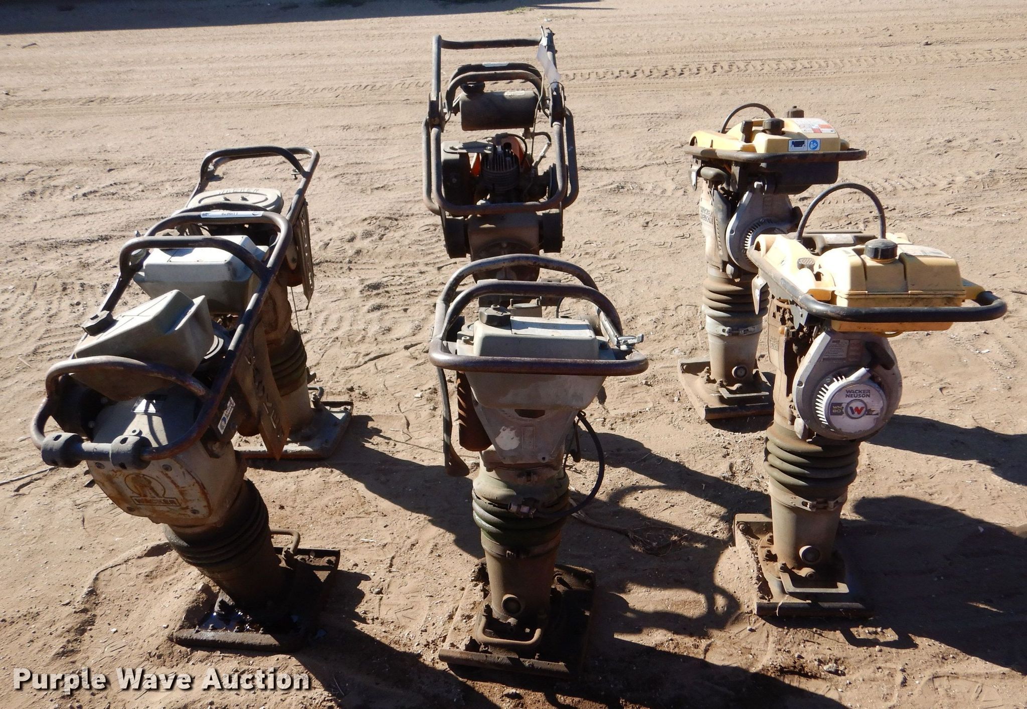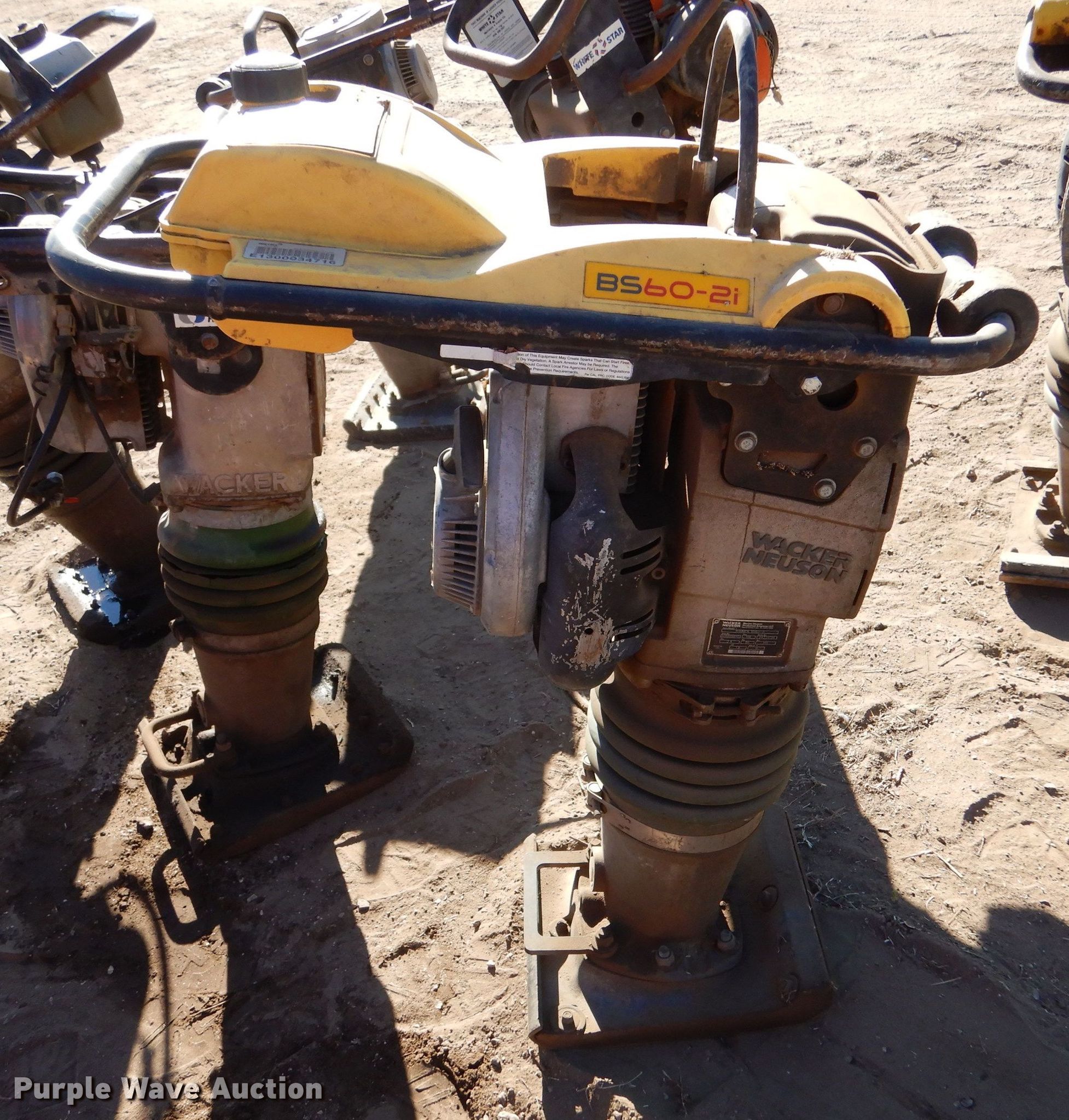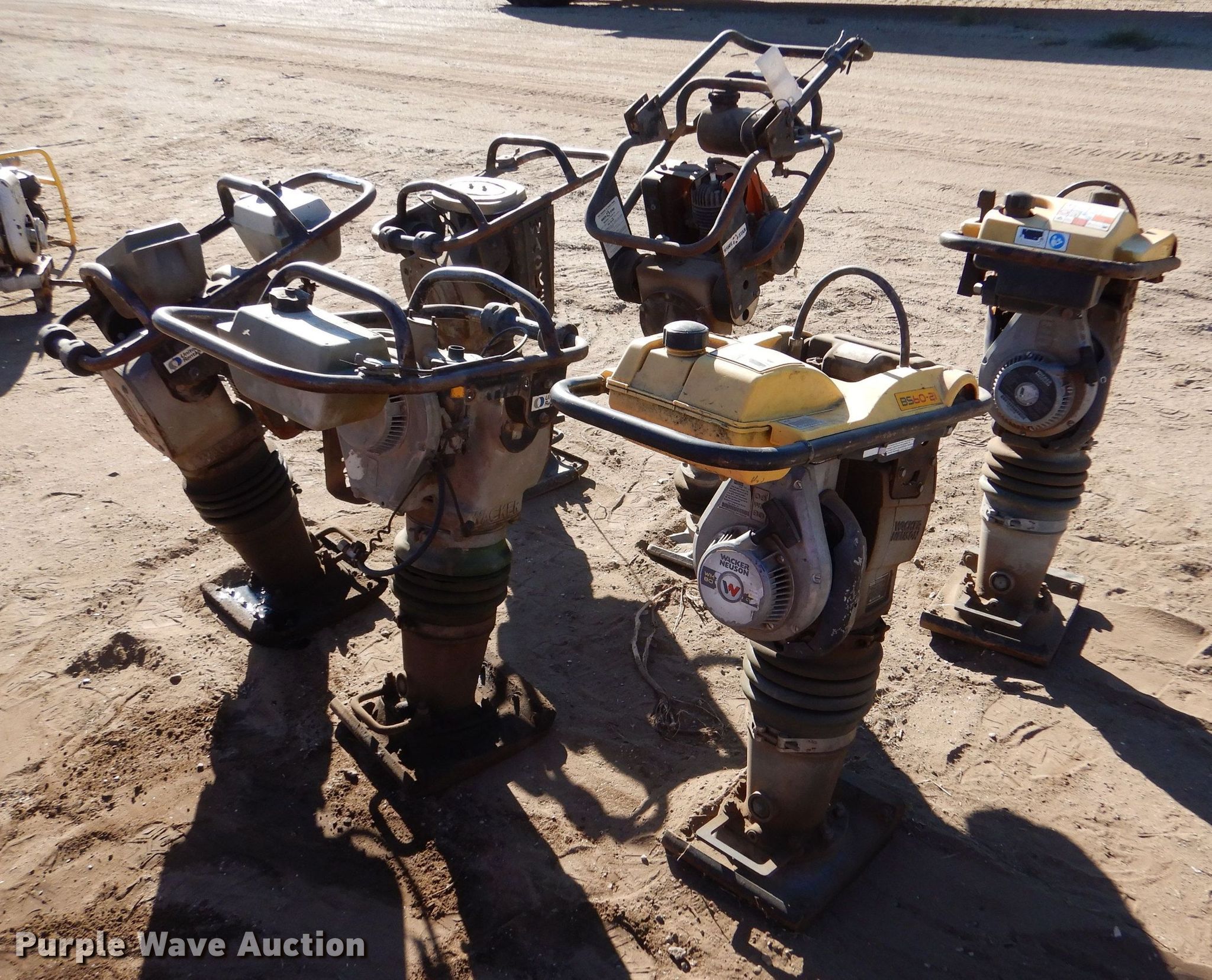 Purple Wave is selling a used Plate Compactor in Kansas. This item is a (6) plate compactors with the following: (3) Wacker BS62Y, 3 HP, 2.2 kW, 150lbs, M-B-W R270, (2) Wacker Neuson Rammer BS60-2i, 2.4 HP, 1.8 kW, 145 lbs