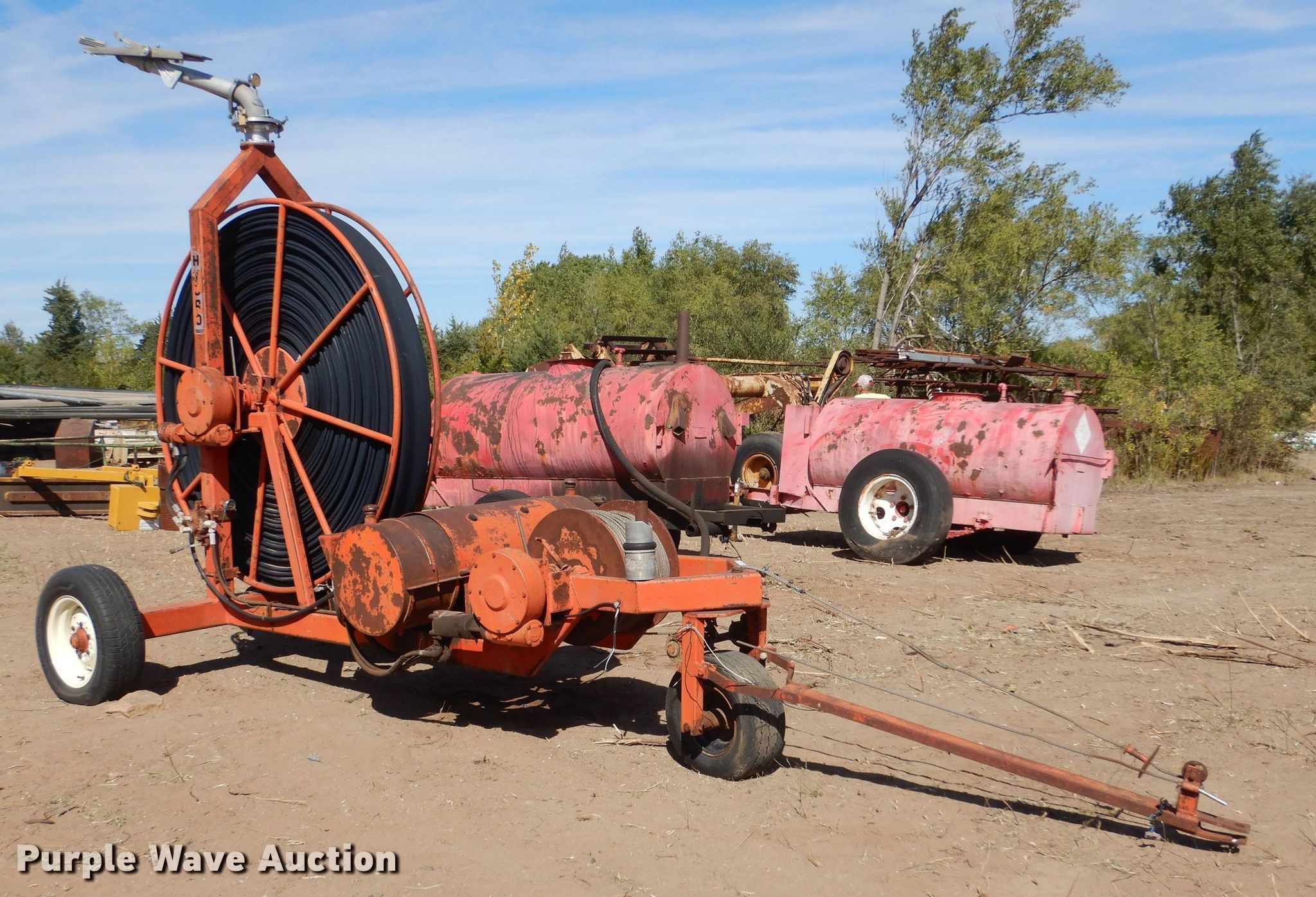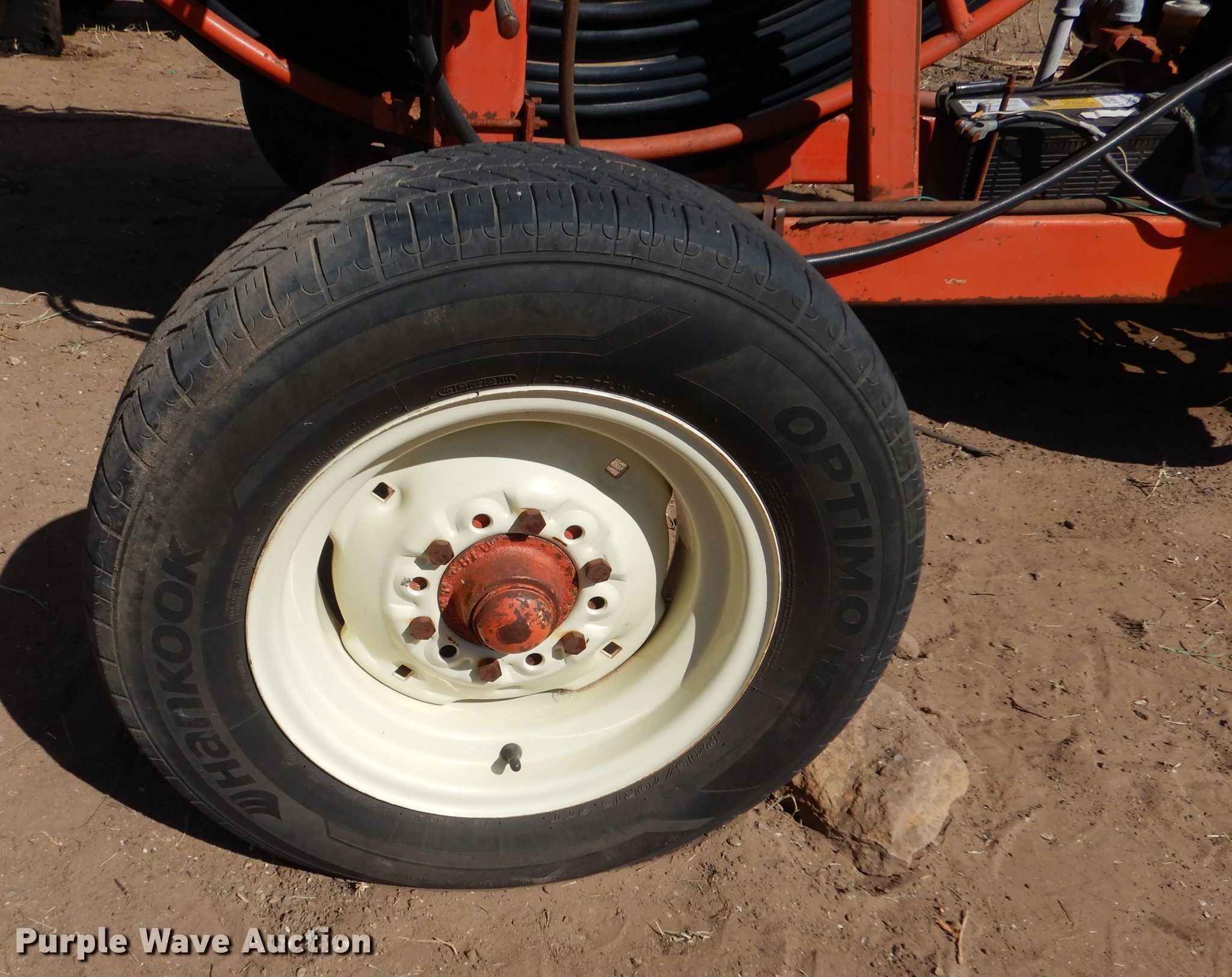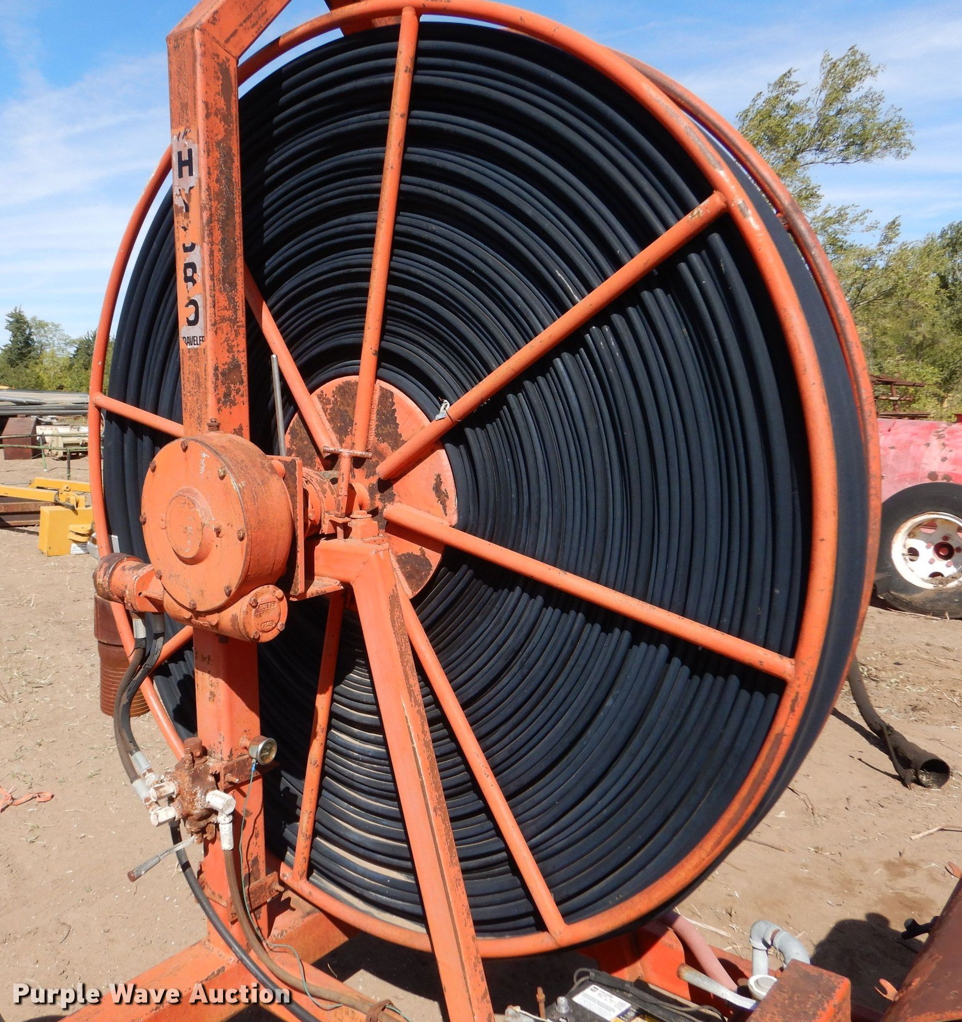 Purple Wave is selling a used Tools in Kansas. This item is a Hydro Traveler H77 water cannon with the following: Kohler single cylinder gas engine, Winch, Power hose reel, 76" diameter, 6" hose, 215/70R15 tires