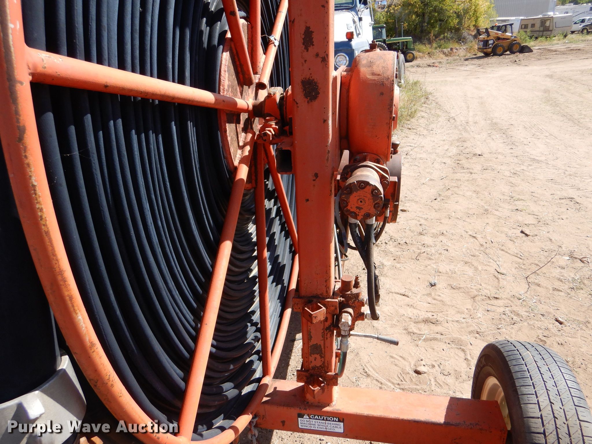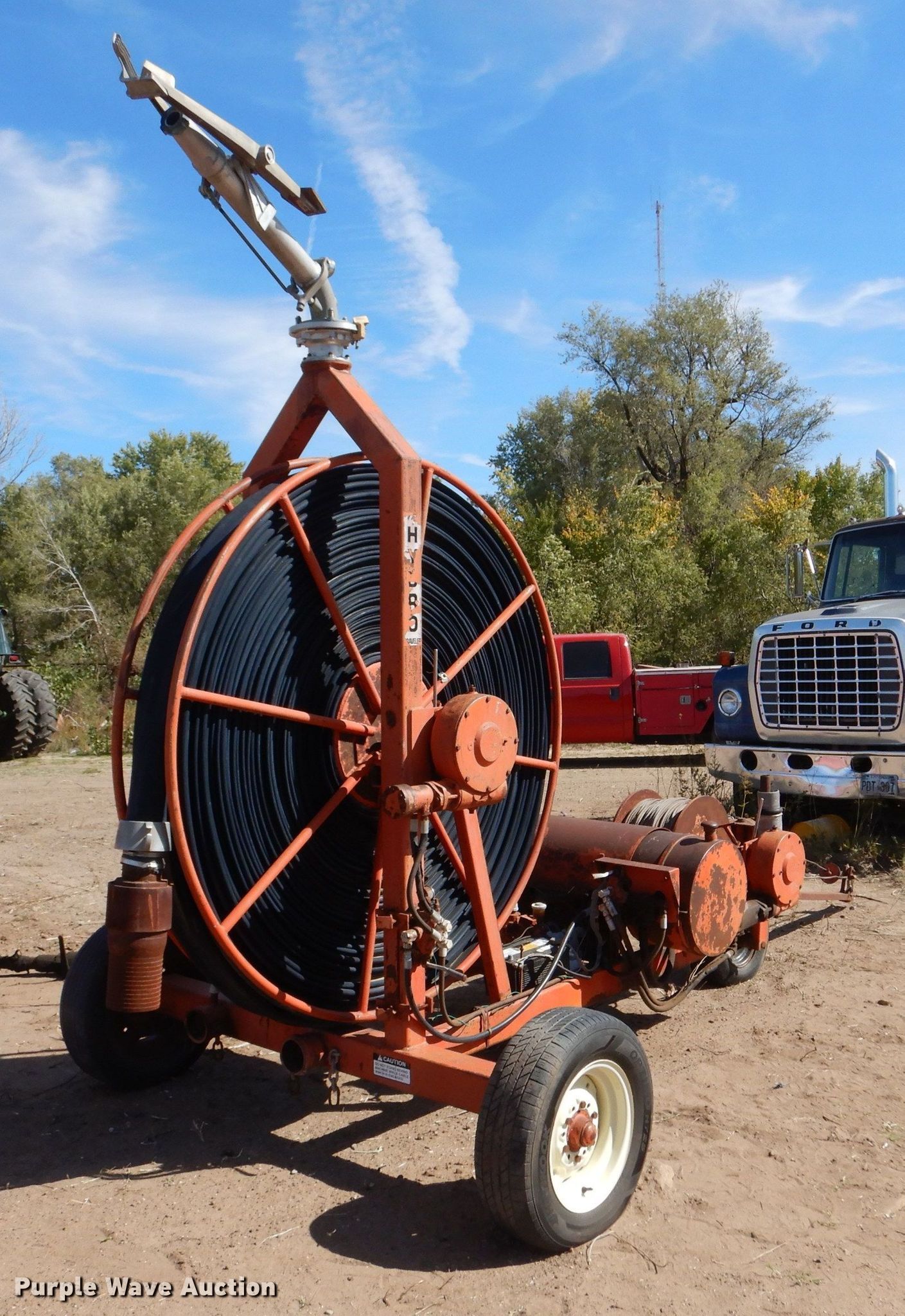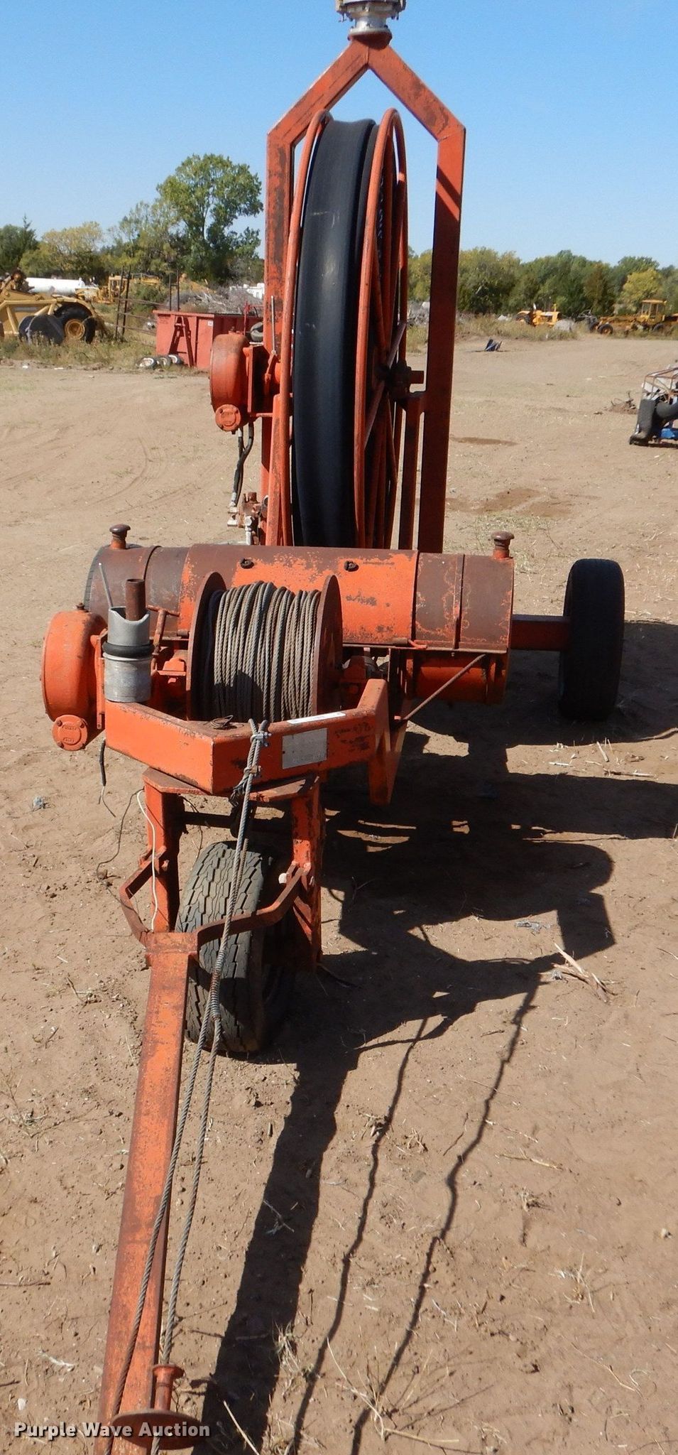 Hydro Traveler H77 water cannon. Kohler single cylinder gas engine, Winch, Power hose reel 76" diameter, 6" hose, 215/70R15 tires. Esfeld Construction, Inc... Great Bend, KS 67530