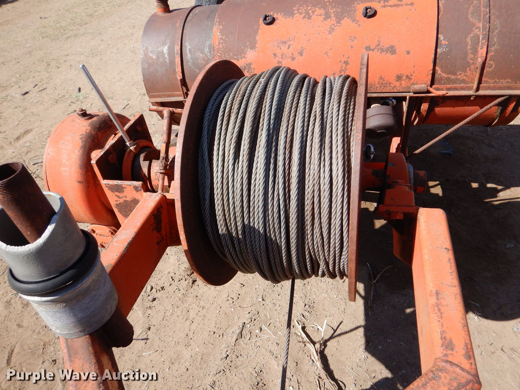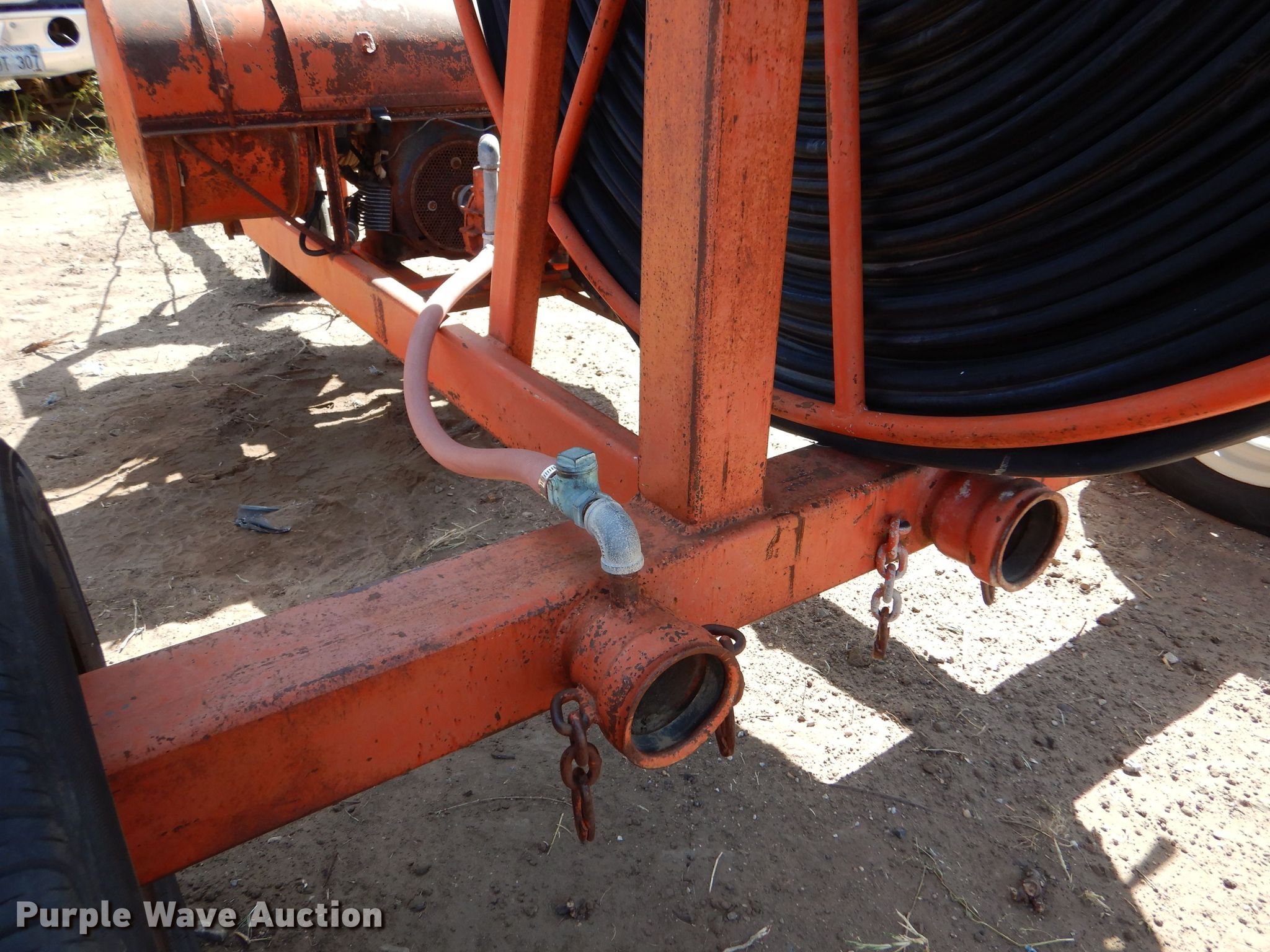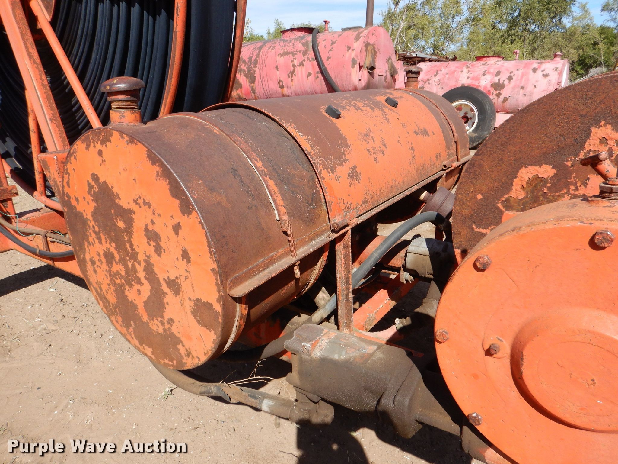 Hydro Traveler H77 water cannon. Kohler single cylinder gas engine, Winch, Power hose reel 76" diameter, 6" hose, 215/70R15 tires. Esfeld Construction, Inc... Great Bend, KS 67530