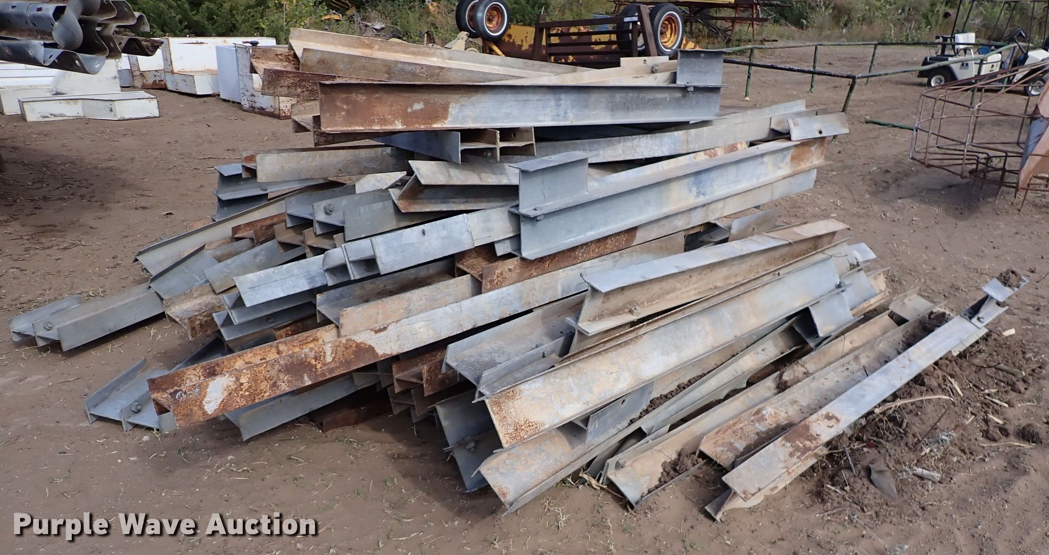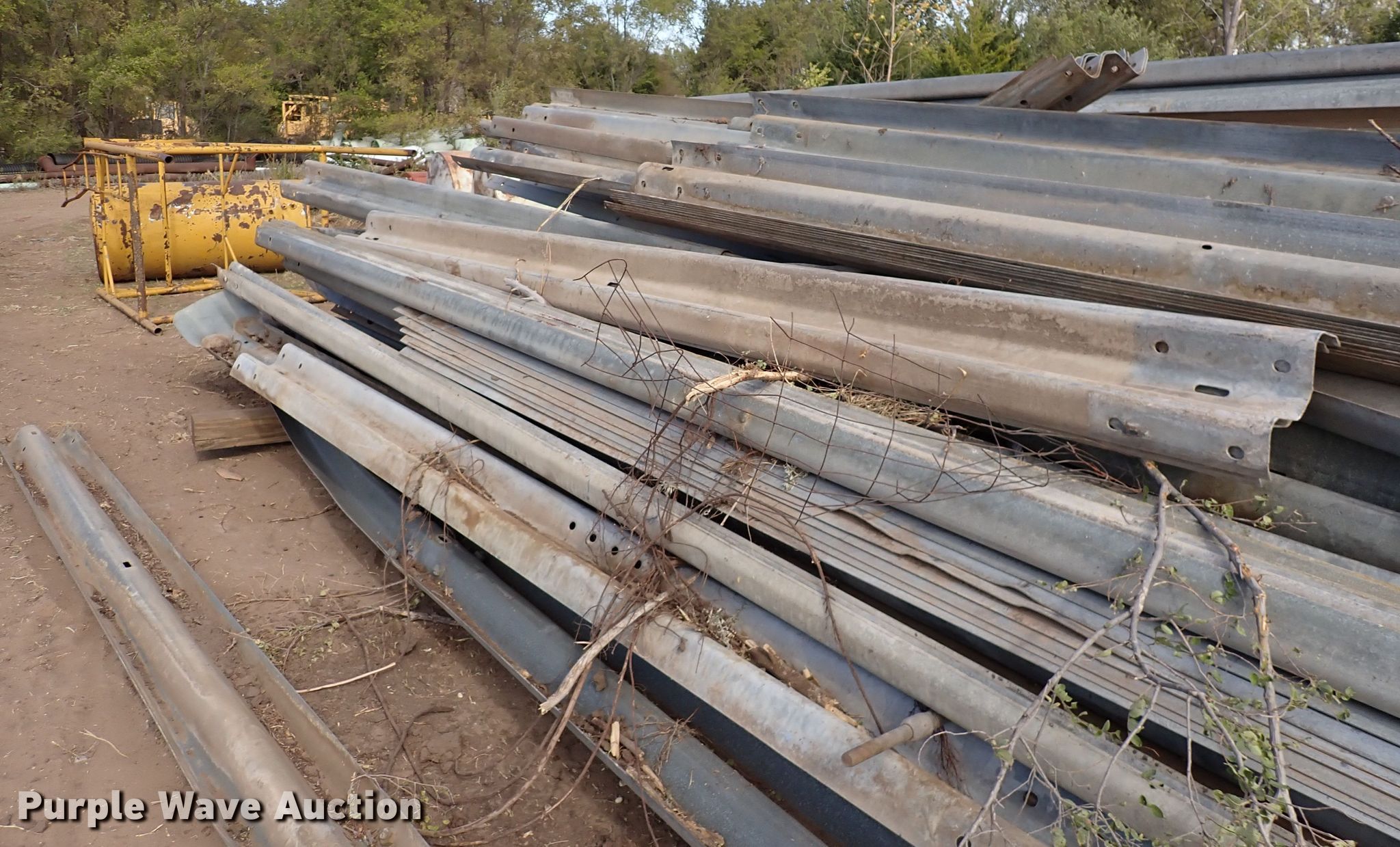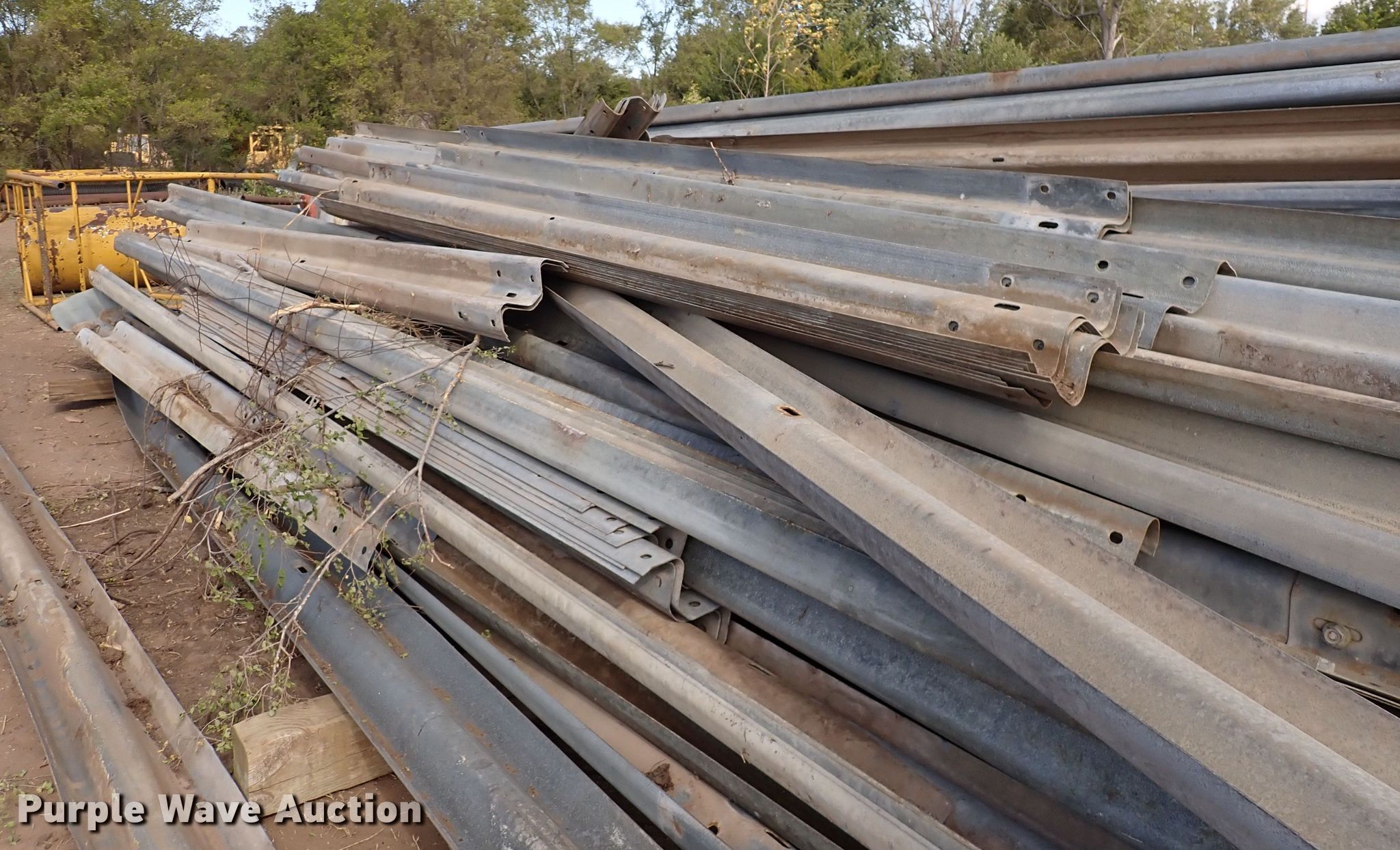 Purple Wave is selling a used Building Materials in Kansas. This item is a Approximately 125 pieces of guard rail with the following: Lengths: 13' 6" to 26', Guard rail legs, Approx. 6' 9"L
