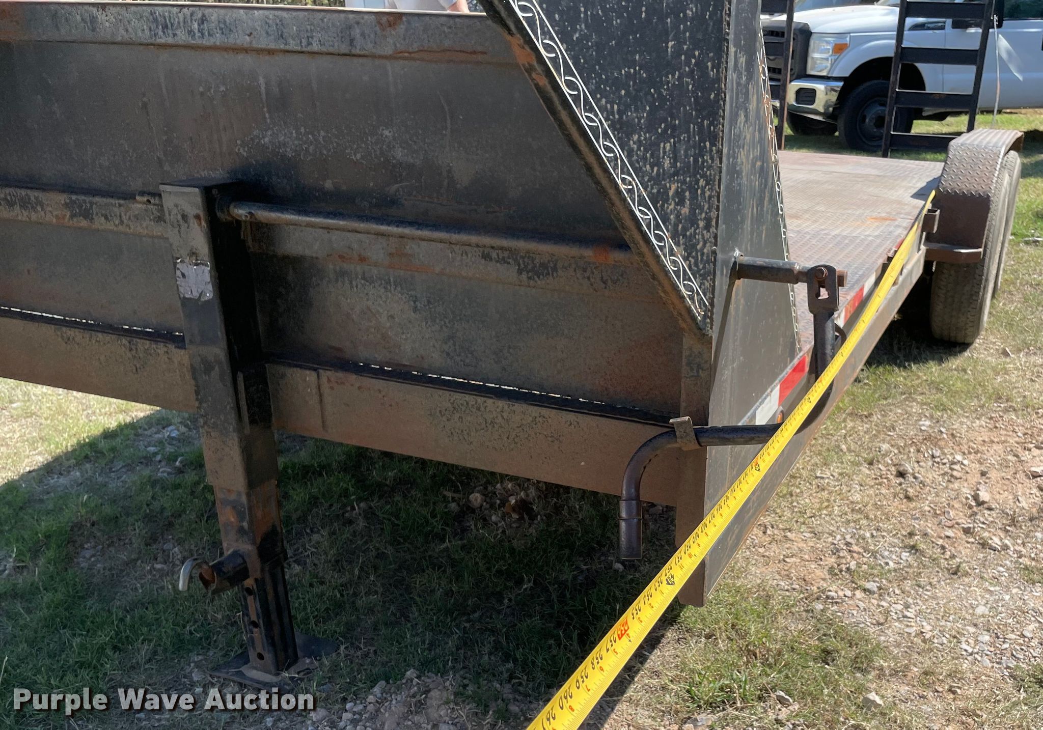 2012 Buck Dandy equipment trailer. VIN: 4DHCP2026CS027783. Dimensions Overall: 27' L x 103" W, Deck: 18' L x 83" W, Tail length: 2', Ramps: Manual Length: 57". Features Deck type: Steel. Chassis Hitch: Gooseneck, Landing gear: Single, Suspension: Spring, Brakes: Electric, Axles: Tandem, GVWR: 14,000 lbs. Tires Size: ST235/80R16. Oklahoma title. Seller is an Oklahoma licensed motor vehicle dealer. Title will be assigned and distributed by the dealer. Please contact the seller for distribution questions. 315 South Front Street. Noble, OK 73068