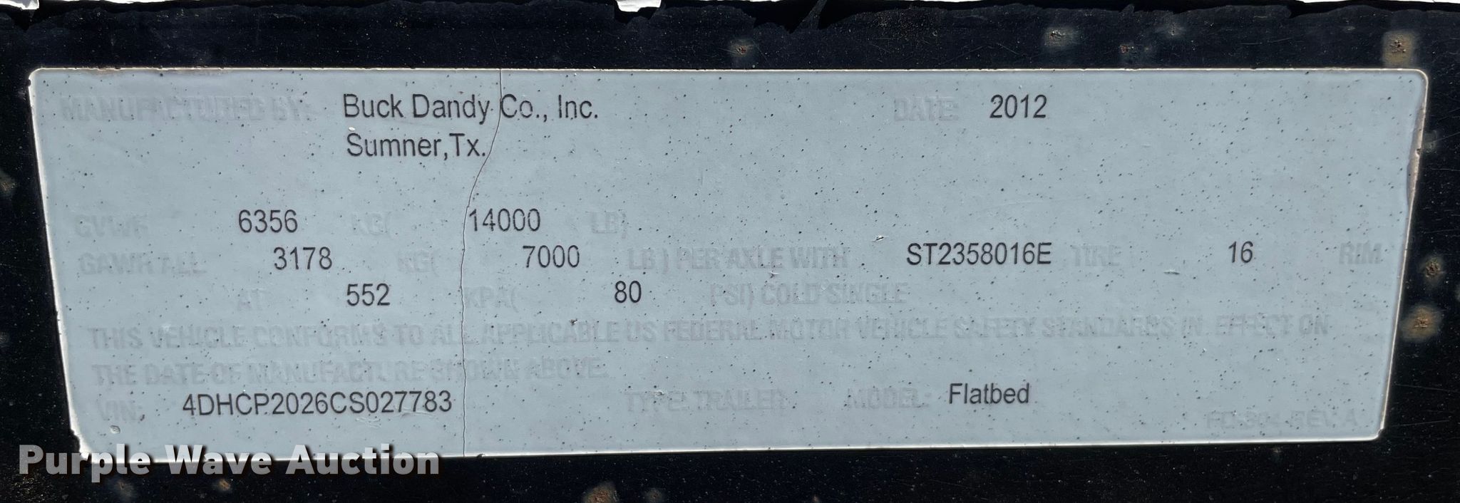 Purple Wave is selling a used Equip. Trailer in Oklahoma. This item is a 2012 Buck Dandy equipment trailer with the following: VIN: 4DHCP2026CS027783