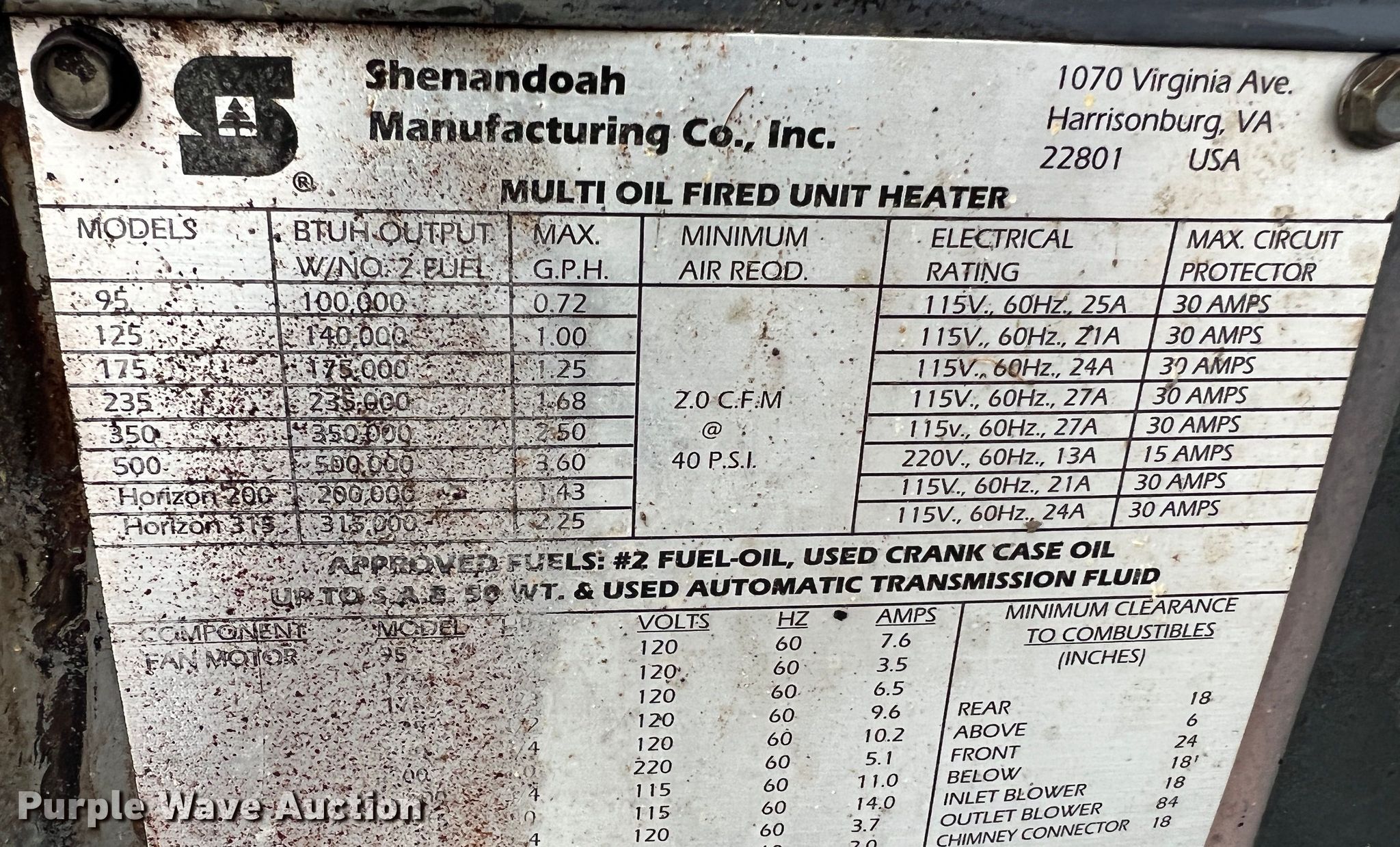 Shenandoah oil burning furnace | SOLD! November 16 Vehicles and Equipment Auction