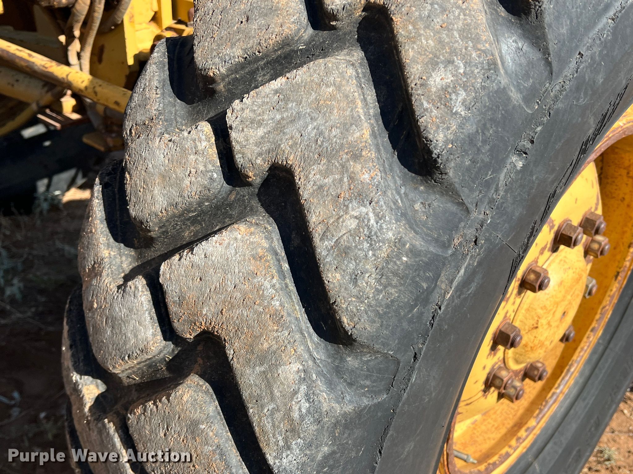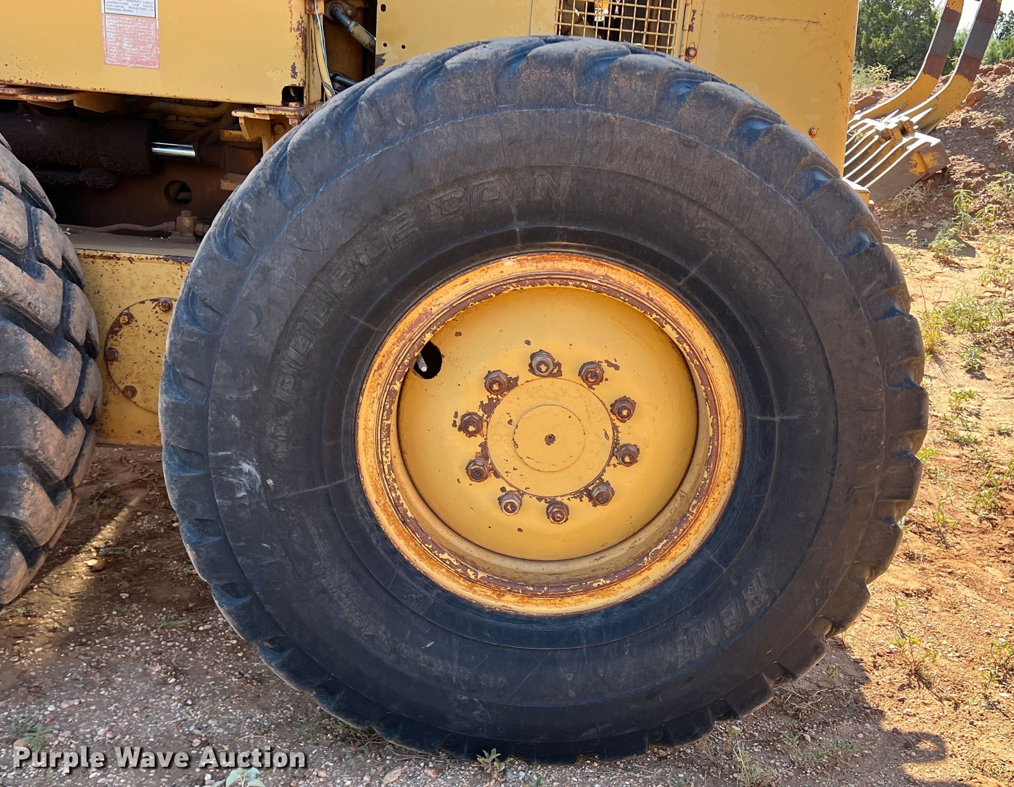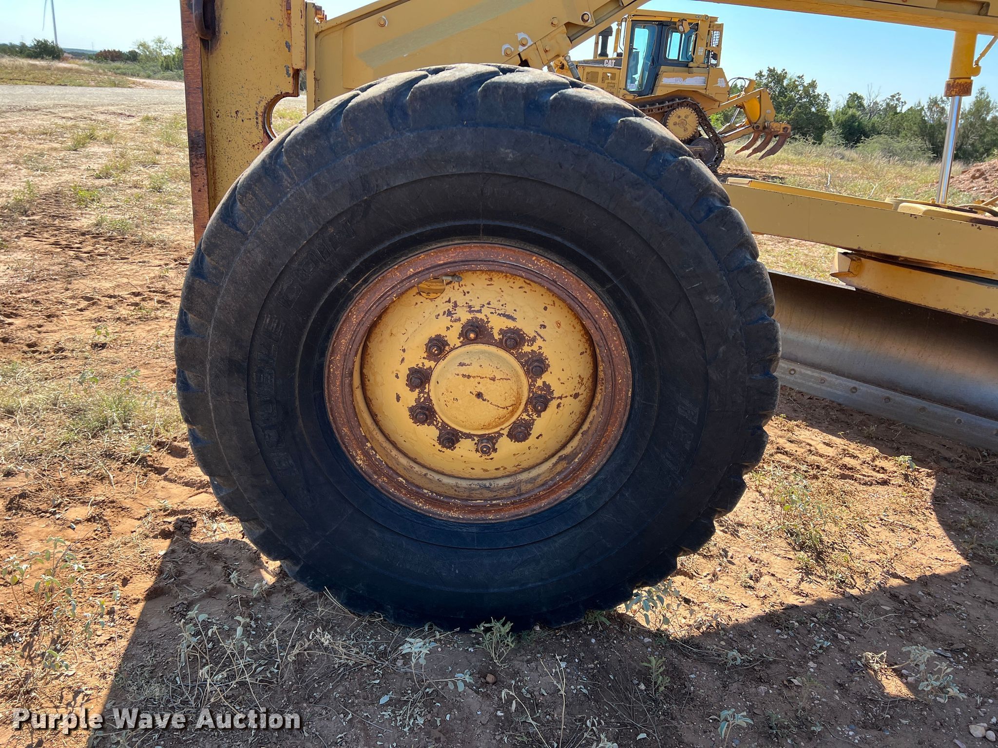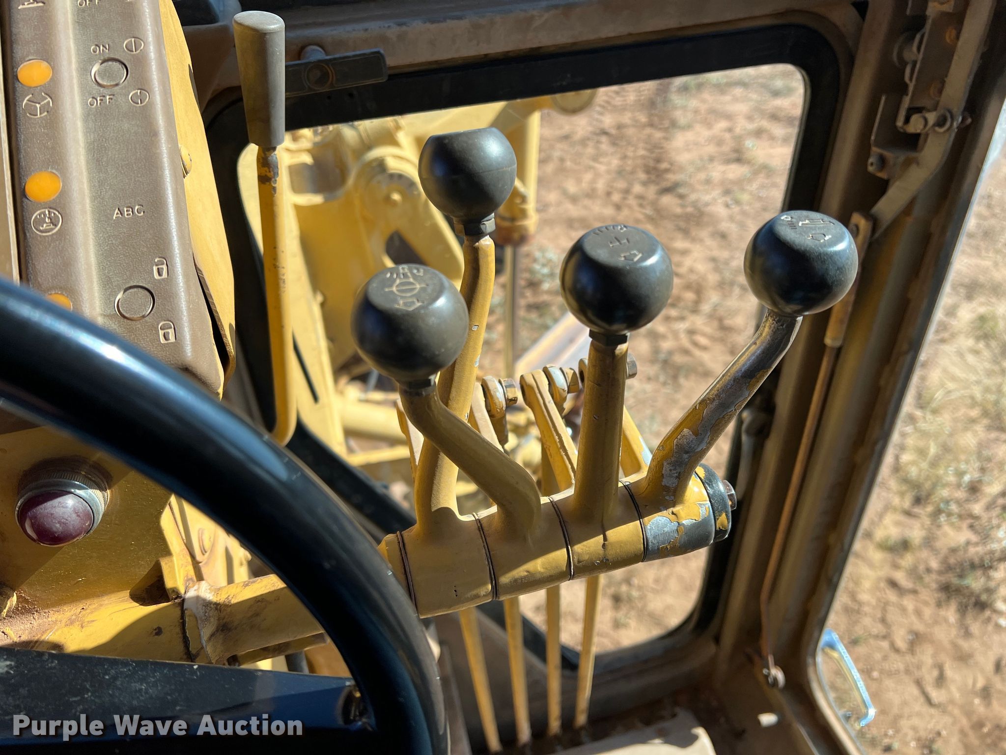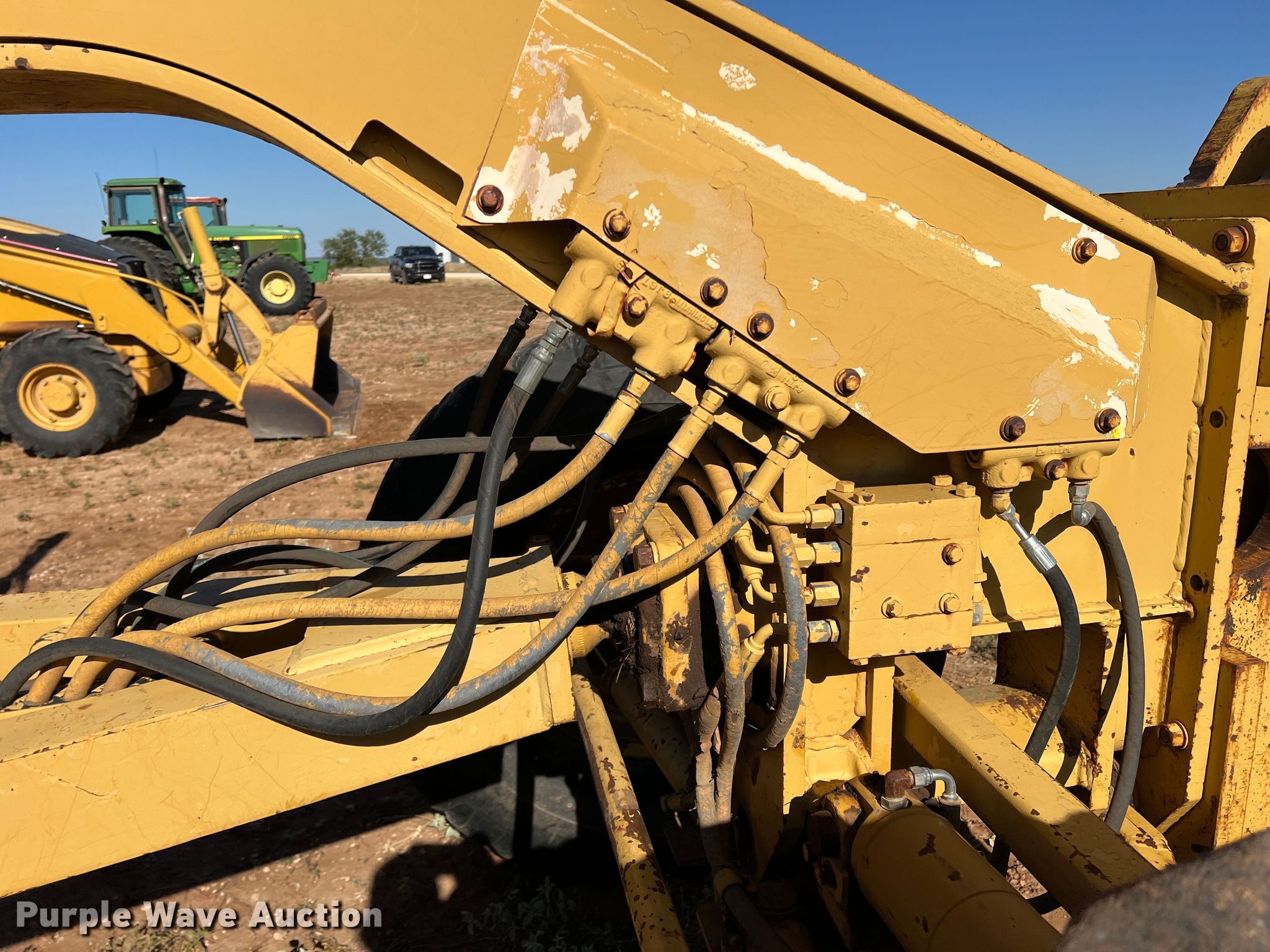 1983 Caterpillar 120G motor grader. Serial: 87V06601. Engine Caterpillar 3304 D1, Serial: 07Z04916, Cylinders: 4, Fuel type: Diesel. Transmission Powershift, 6F - 6R. Operators station Enclosed cab, AC, Heat, Hydraulic control valves: 8. Features Moldboard: Tip control, Side shift, Moldboard total length: 14', Front-mounted push block. Tires Size: 14.00R24. Notes Glass cracked. Southwest Dirt Contractors Inc. County Road 1137. Snyder, TX 79549