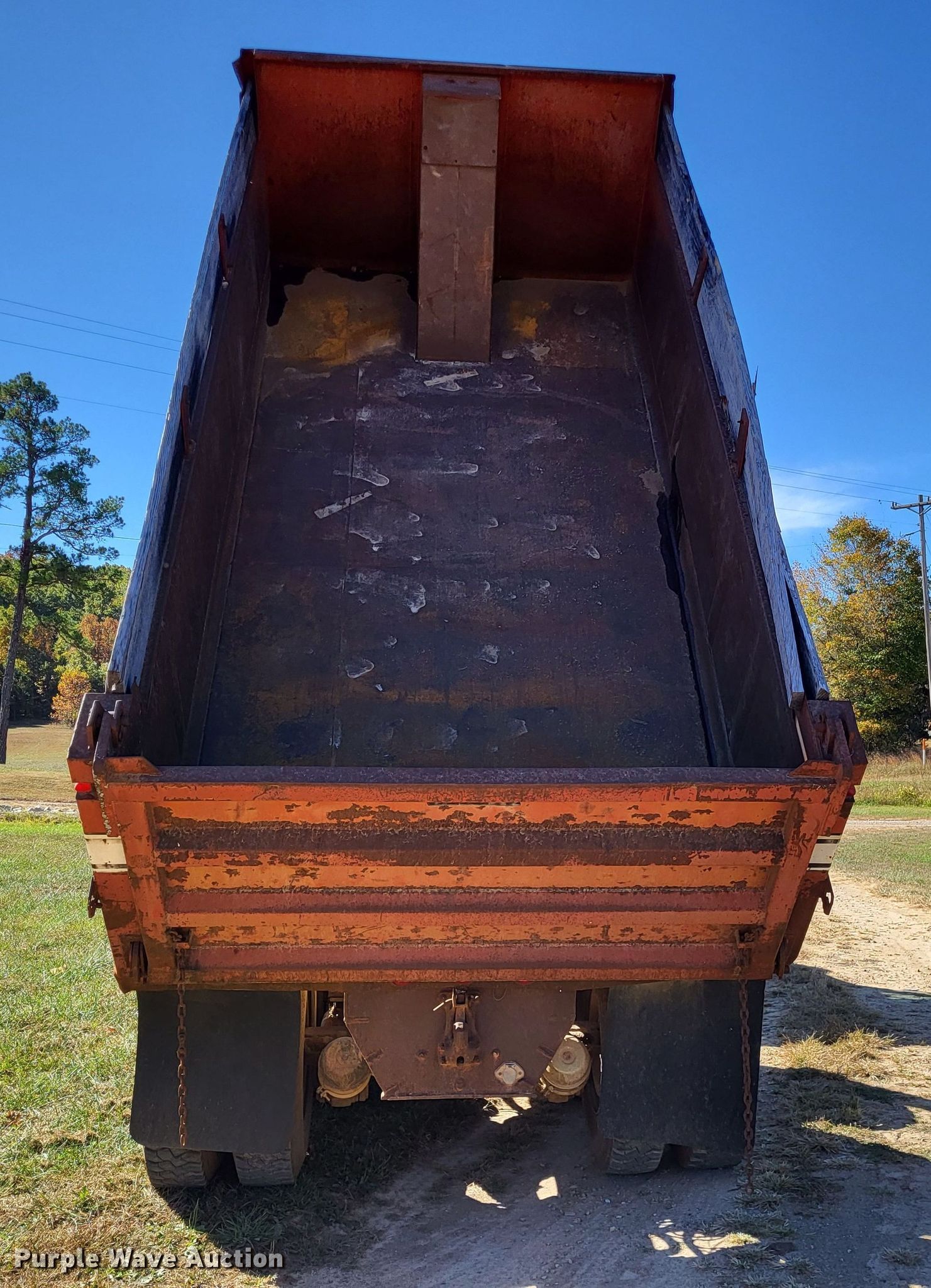 1977 Ford 9000 dump truck. Miles: 560,074 on odometer, VIN: U91VVY25629. Engine Cummins, Cylinders: 6, Fuel type: Diesel. Transmission Eaton Fuller Roadranger, Manual, Speed: 13. Chassis Axles: Tandem, Differential lock: Inter-axle, Suspension: Spring over walking beam, Brakes: Air, PTO, GVWR: 44,800 lbs, Wheelbase: 186". Interior Heat. Features Dump bed Peabody Galion 502FDA-8, Capacity: 12 cu.yd., 15' L x 95" W, Side height: 37", Side board height: 12", Bed type: Steel, Ram: Single , End gate: Air operated. Tires Front: 315/80R22.5, Rear: 11R22.5. Missouri title. Brinkley Wood Products. 16720 Missouri 34. Piedmont, MO 63957
