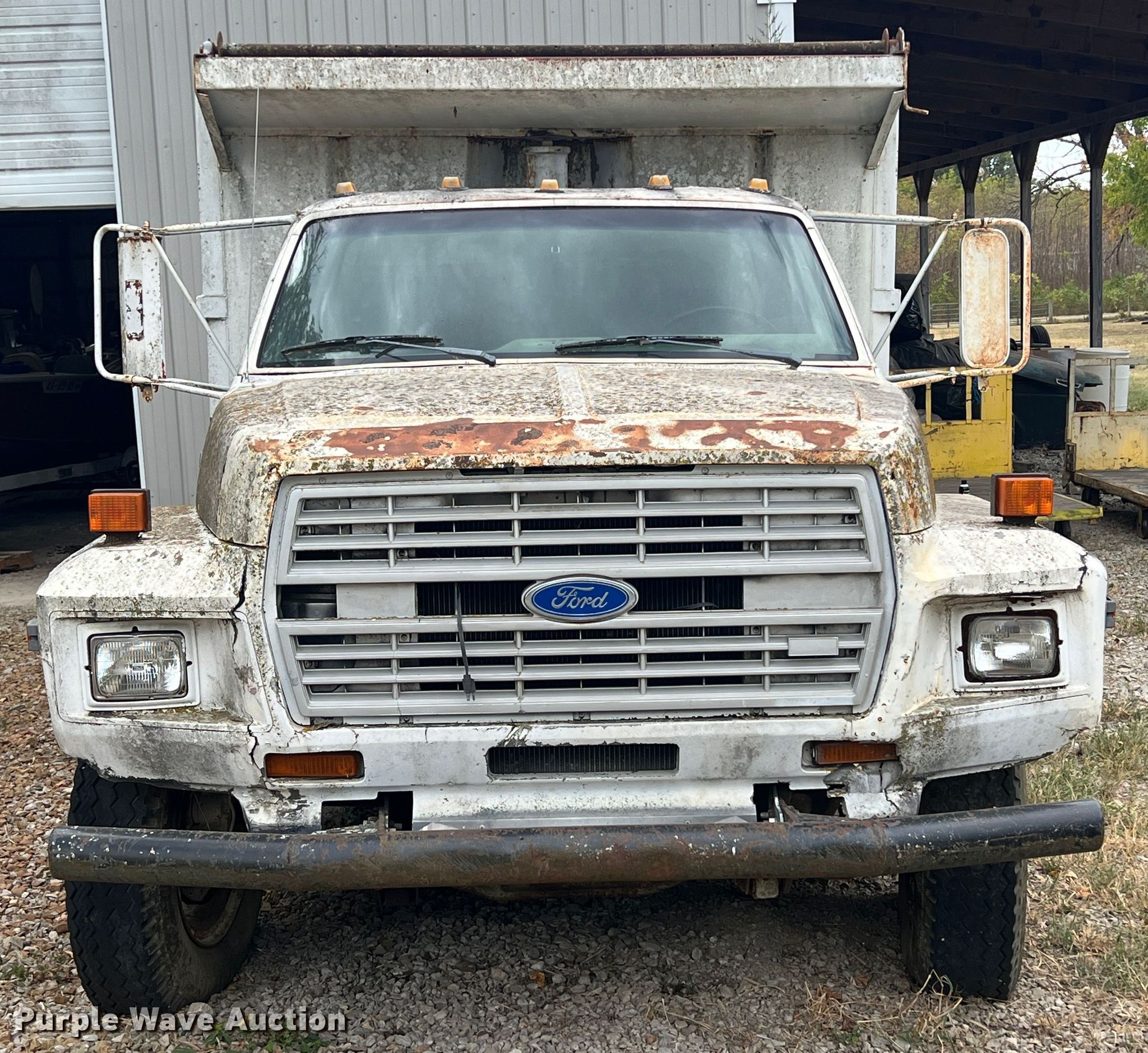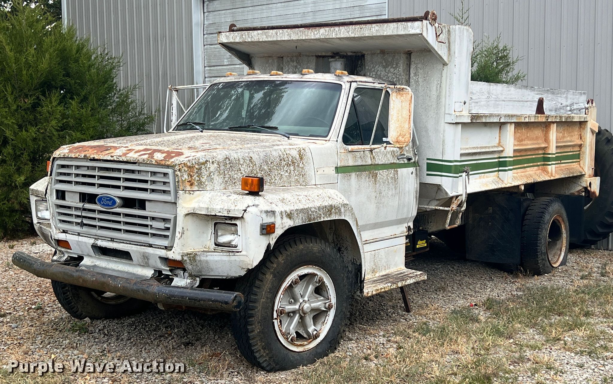 Purple Wave is selling a used Construction Dump Truck in Kansas. This item is a 1985 Ford F600 dump truck with the following: Miles: 265,416 on odometer, VIN: 1FDNK64NXFVA08252