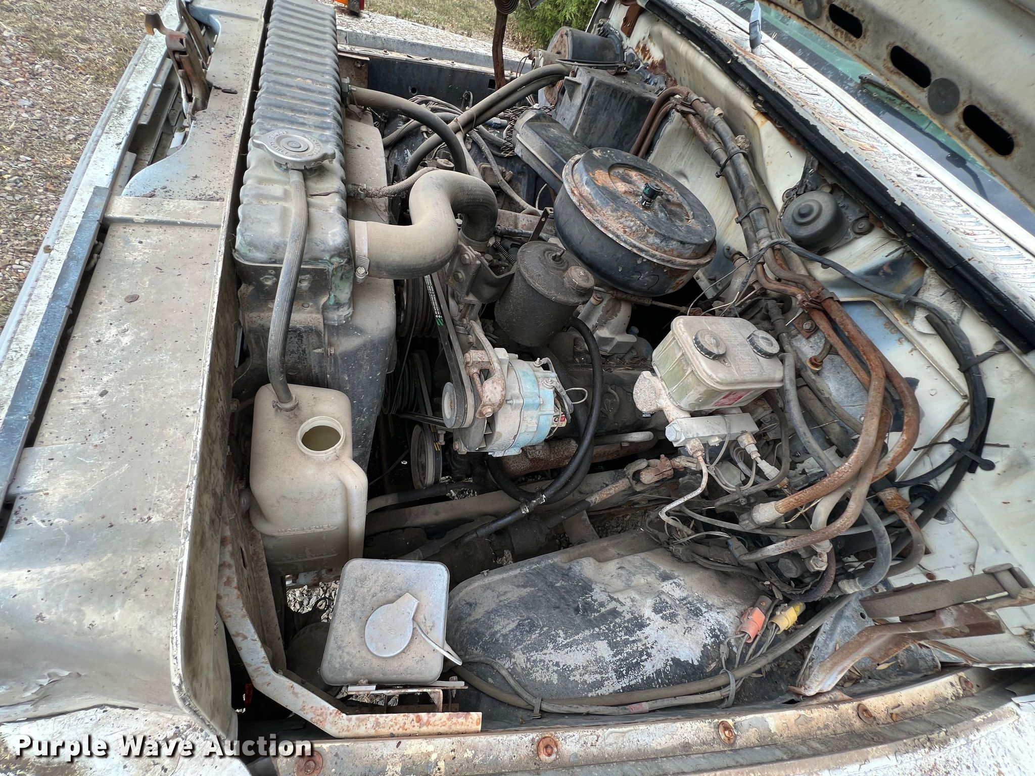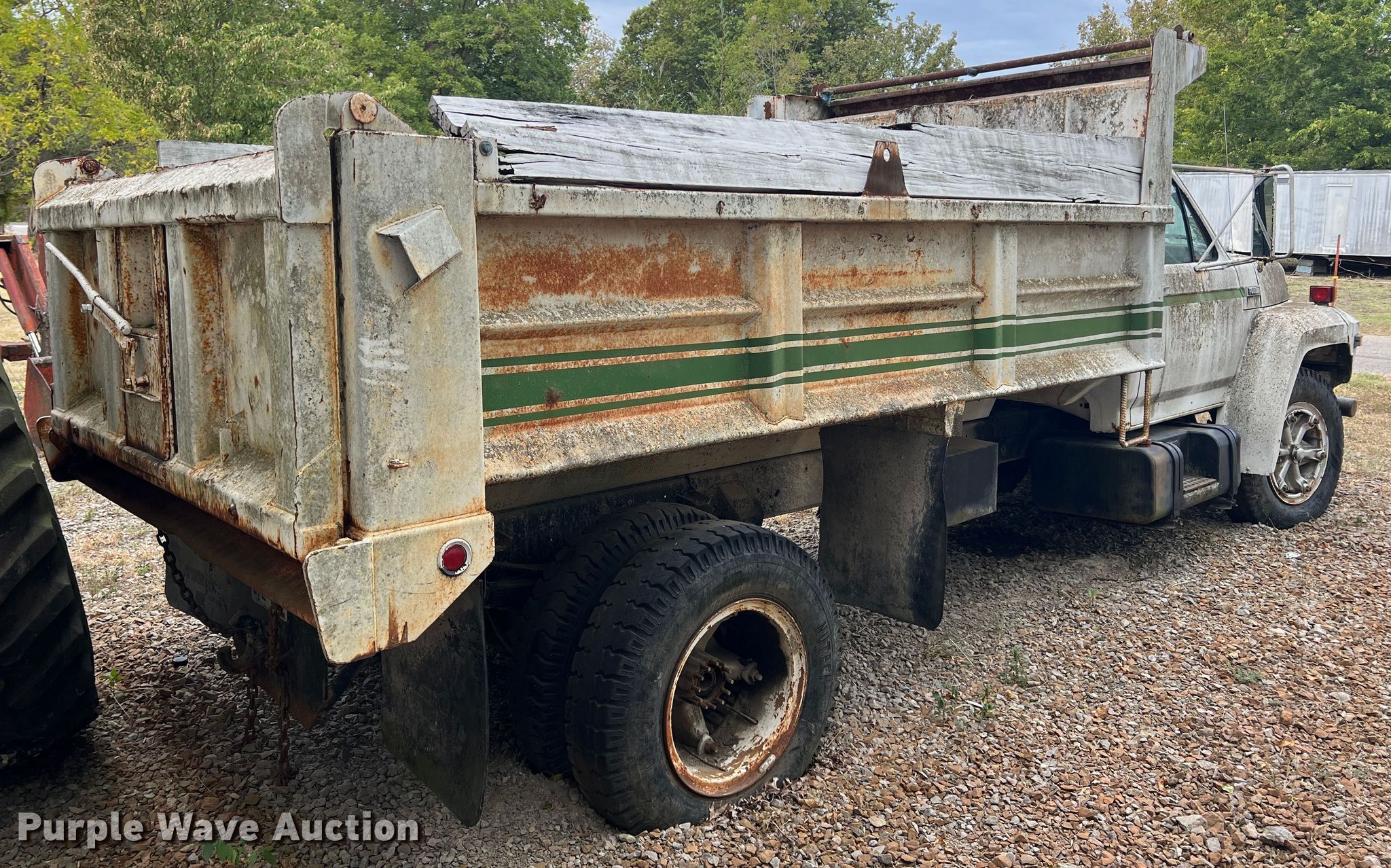 1985 Ford F600 dump truck. Miles: 265,416 on odometer, VIN: 1FDNK64NXFVA08252. Engine Detroit Diesel, Displacement: 8.2L, Cylinders: 8, Fuel type: Diesel. Transmission Manual, Speed: 5, plus 2. Chassis Axles: Single, Suspension: Spring, Brakes: Hydraulic, PTO, GVWR: 24,500 lbs, Wheelbase: 177". Interior Heat, Brake controller. Features Dump bed 13' L x 8' W, Side height: 28", Side board height: 11", Bed type: Steel, Ram: Single , End gate: Manual. Tires Size: 9.00-20. Notes Batteries missing, Drive train parts missing , Non-operational unit. Kansas antique title. Mulberry, KS 66756