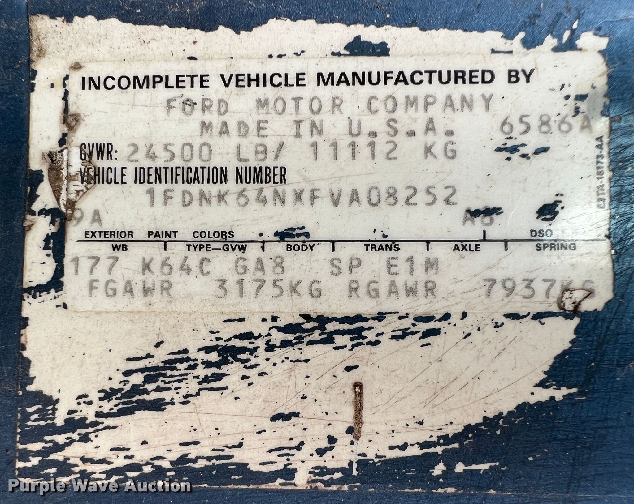 • VIN: 1FDNK64NXFVA08252