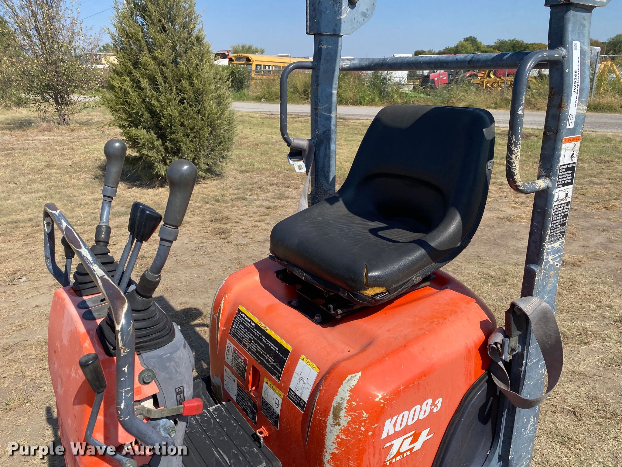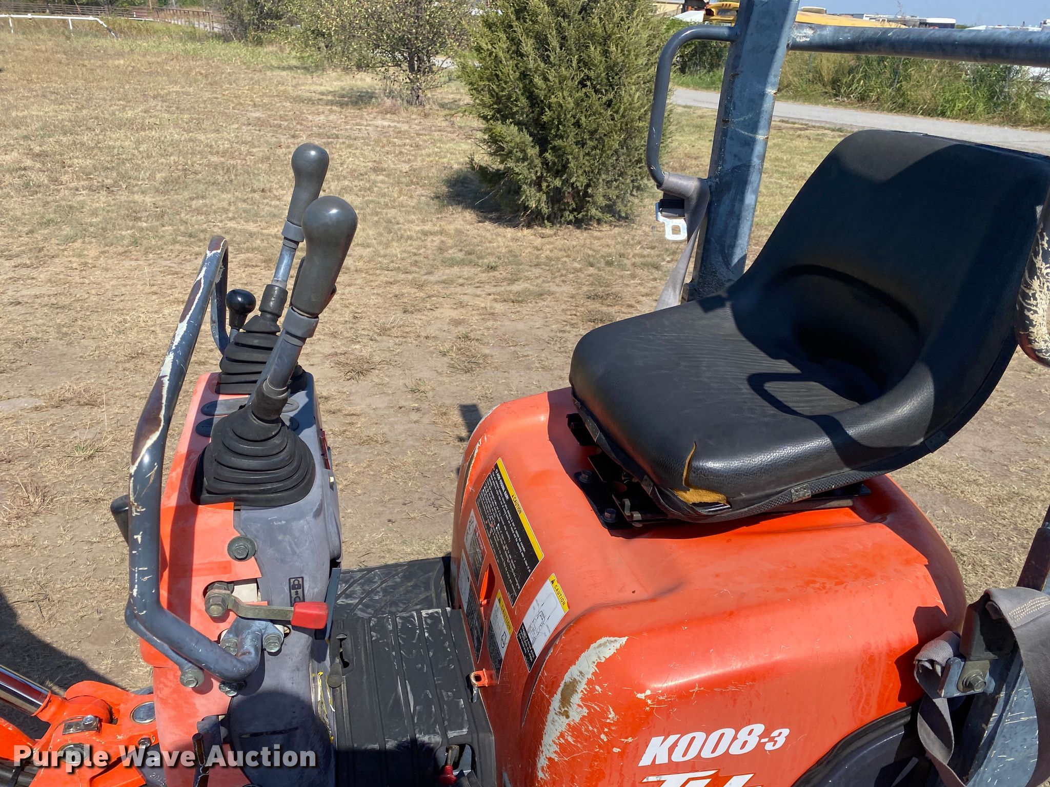 Purple Wave is selling a used Mini Excavator in Oklahoma. This item is a 2009 Kubota K008-3 mini excavator with the following: Hours: 828 on meter, Serial: JKUK0083H0183