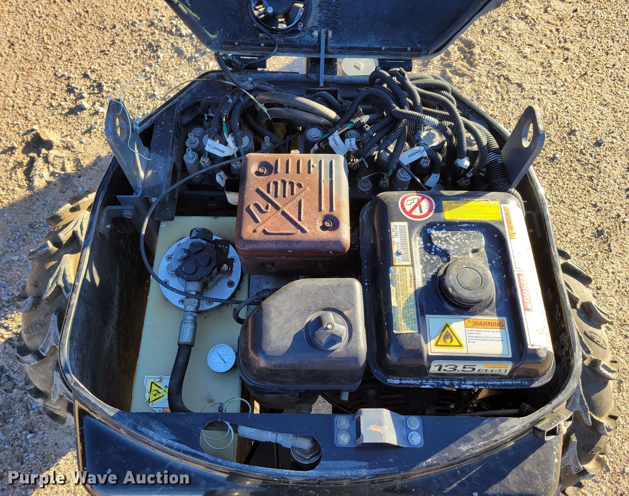 Somero Hosehog line placer. Hours: 504 on meter, Serial: 80015-1006. Engine Robin EH41, Displacement: 404cc, Cylinders: 1, Fuel type: Gas, HP: 13.5, Electric start, Pull start. Tires Size: 28x10-12. Lottman & Carpenter Construction. 311 Commercial St. Diller, NE 68342