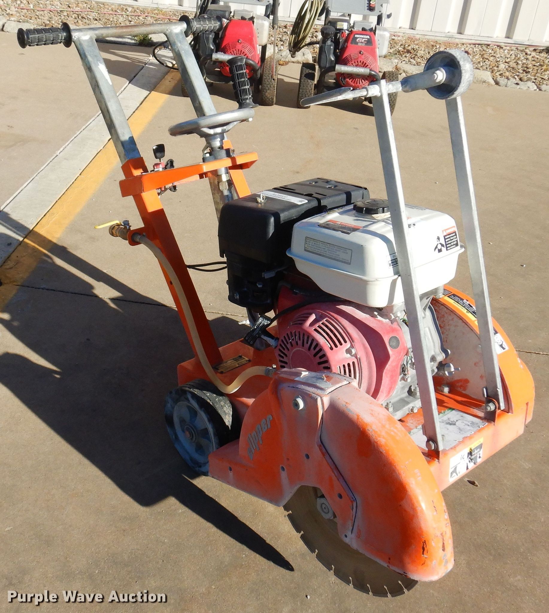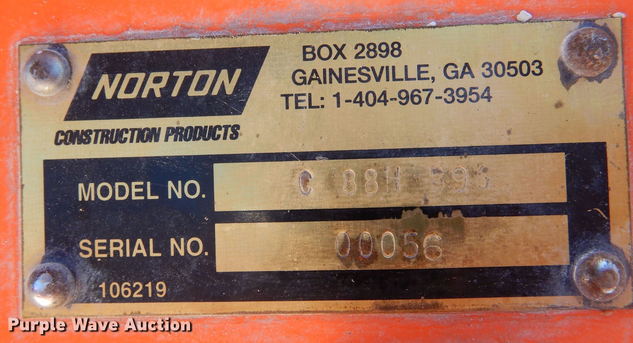 Purple Wave is selling a used Concrete Equip. or Acces. in Kansas. This item is a Norton Clipper C88HB96 concrete saw with the following: Honda GX240 gas engine, Blade: 14" diameter, Serial: 00056