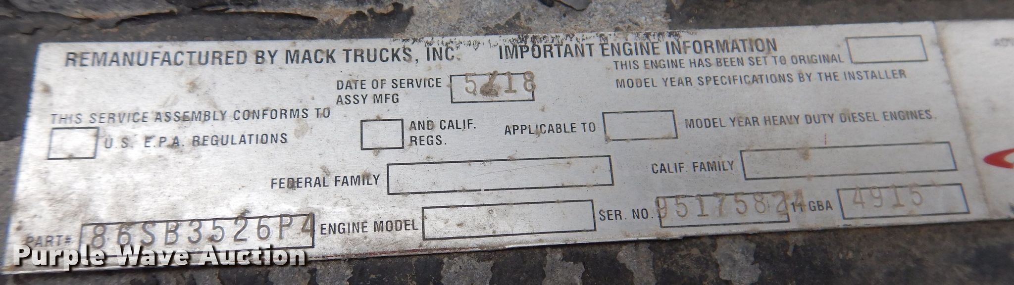 Purple Wave is selling a used Truck Tractor in Iowa. This item is a 2000 Mack CL713 semi truck with the following: Miles: 510,836 on odometer, Hours: 20,337 on meter, VIN: 1M2AD62C6YW010409