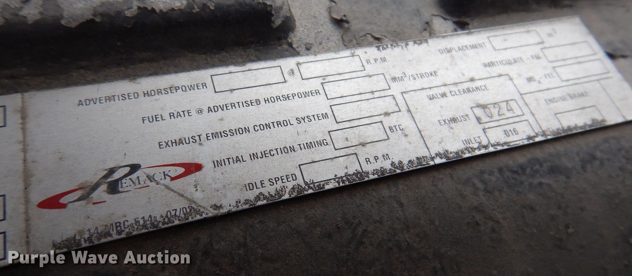 2000 Mack CL713 semi truck. Miles: 510,836 on odometer, Hours: 20,337 on meter, VIN: 1M2AD62C6YW010409. Engine Mack E7, Serial: 95175824, Displacement: 12.0L, Cylinders: 6, Fuel type: Diesel, Engine brake. Transmission Mack Maxitorque ES, Manual, Speed: 18. Chassis Axles: Triple, Pusher axle, Differential lock: Inter-axle, Suspension: Camelback, Brakes: Air, PTO, Wet kit, GVWR: 84,000 lbs FAWR: 20,000 lbs, IAWR: 22,000 lbs, RAWR: 22,000 lbs, Lift axle GAWR: 20,000 lbs. Interior AC, Heat, Heated mirrors, Cruise control, Air ride cab. Features Deck plate: Aluminum, Fifth wheel type: Air operated, Sliding, Fuel tank: Dual. Tires Front: 385/65R22.5, Rear: 11R22.5, Lift axle: 255/70R22.5. Notes Remanufactured engine installed in July 2018. View repairs. Iowa title. 7647 30th Ave. Norwalk, IA 50211