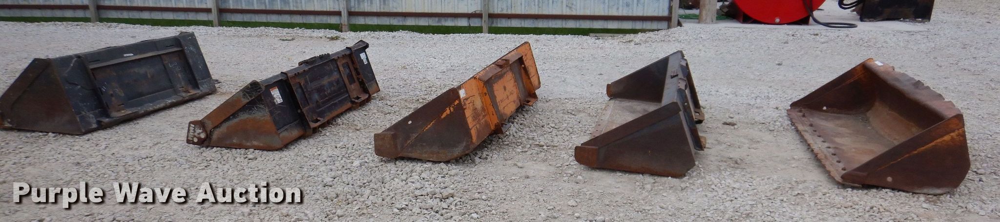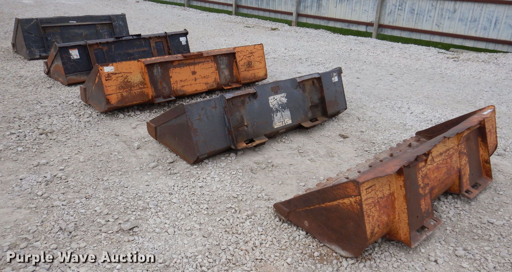 Purple Wave is selling a used Skid Steer Attach. in Iowa. This item is a (5) skid steer bucket with the following: Case 81" W skid steer bucket, Case 72" W skid steer bucket, Kubota 72" W skid steer bucket, Thomas 72" W skid steer bucket, Bobcat 68" W skid steer bucket
