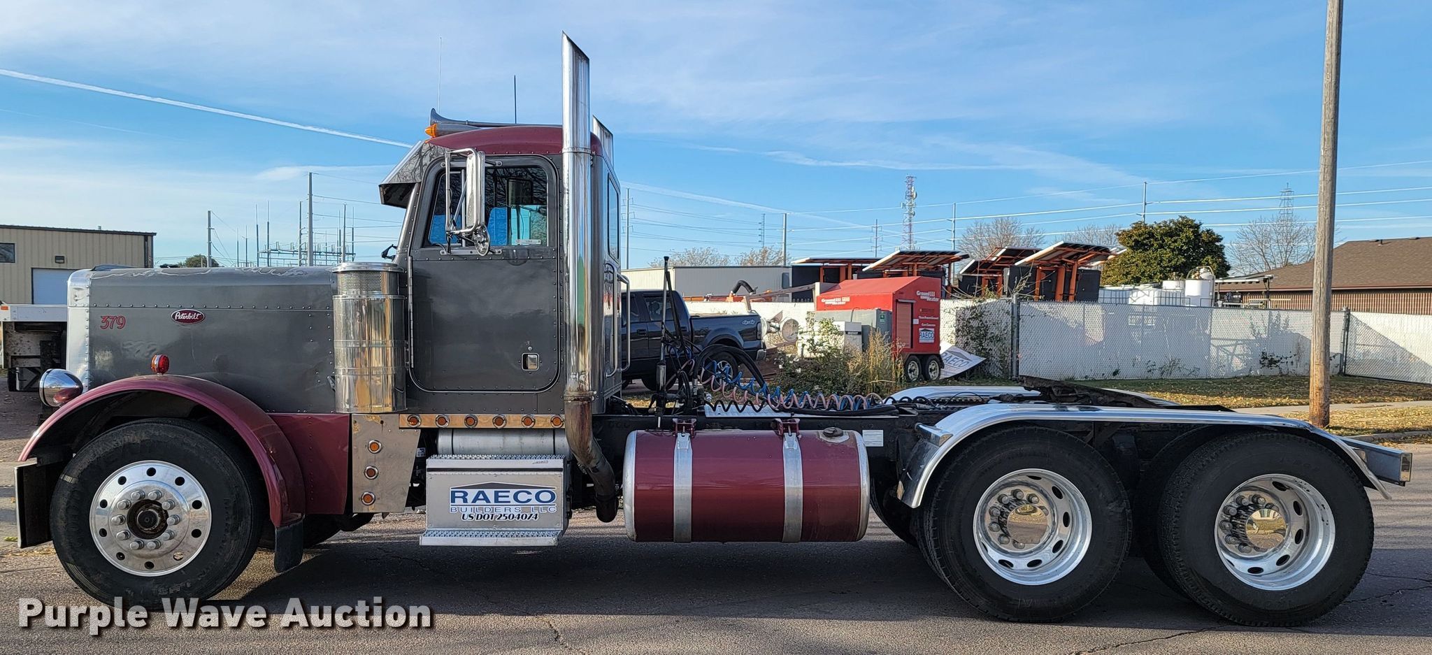 1989 Peterbilt 379 semi truck. Miles: 199,394 on odometer, VIN: 1XP5DB9X3KN270334. Engine Displacement: 14.0L, Cylinders: 6, Fuel type: Diesel, Engine brake. Transmission Eaton Fuller, Manual, Speed: 13. Chassis Axles: Tandem, Differential lock: Inter-axle, Suspension: Air Dump valves, Brakes: Air, PTO, Wet kit, GVWR: 50,000 lbs FAWR: 12,000 lbs, IAWR: 19,000 lbs, RAWR: 19,000 lbs. Interior AC, Heat, Heated mirrors. Features Deck plate: Aluminum, Fifth wheel type: Air operated, Sliding, Fuel tank: Dual. Tires Size: 11R24.5. Notes Windshield chipped or cracked. South Dakota title. Title distribution may be delayed up to 14 days from verification of funds. Raeco Builders LLC. 115 North Garfield Avenue. Sioux Falls, SD 57104