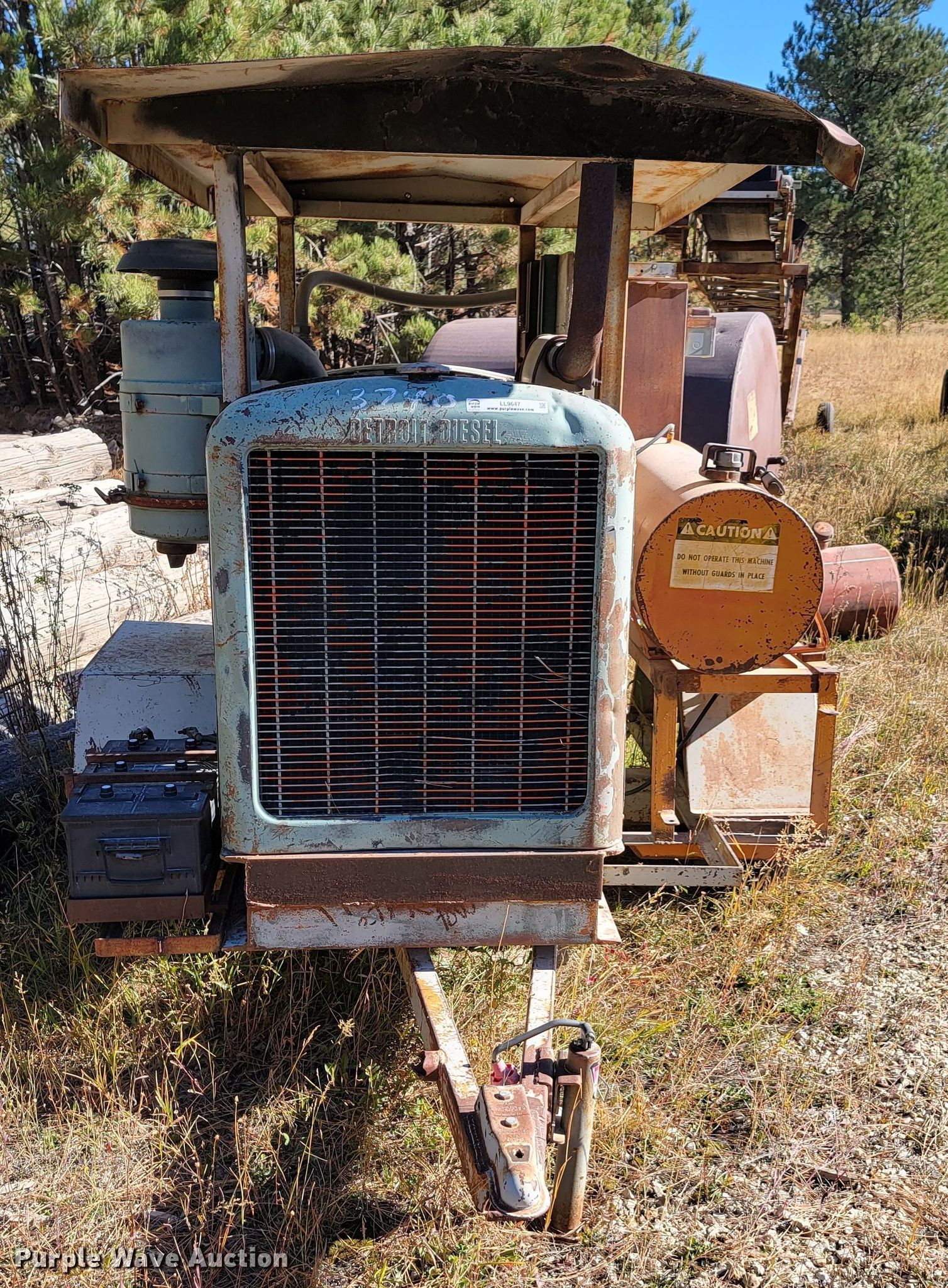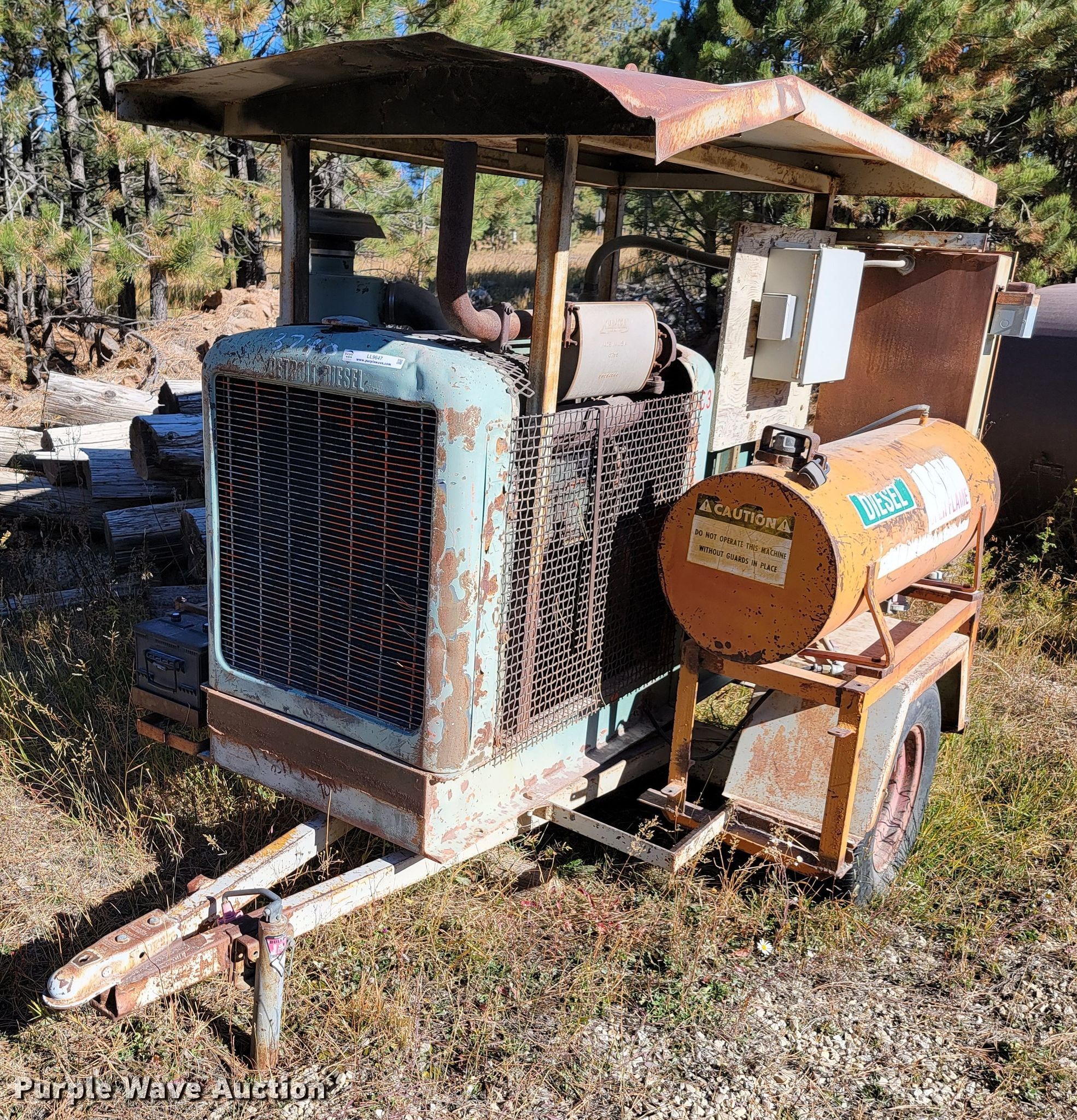 Generator. Hours: 5,217 on meter. Engine Detroit Diesel, Cylinders: 4, Fuel type: Diesel. Features Fuel tank. Trailer 10' L x 77" W, Ball hitch size: 2", Suspension: Spring, Axles: Single. Notes Unknown operating condition. Transfer of ownership documentation will be a bill of sale. H & S Sand & Gravel, Inc.. 11481 Brownsville Road. Lead, SD 57754
