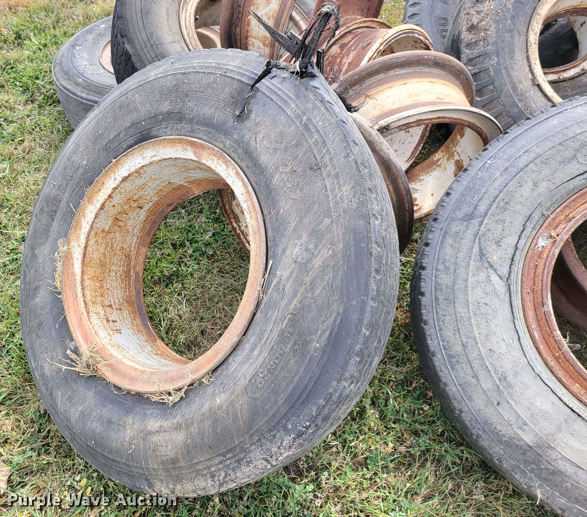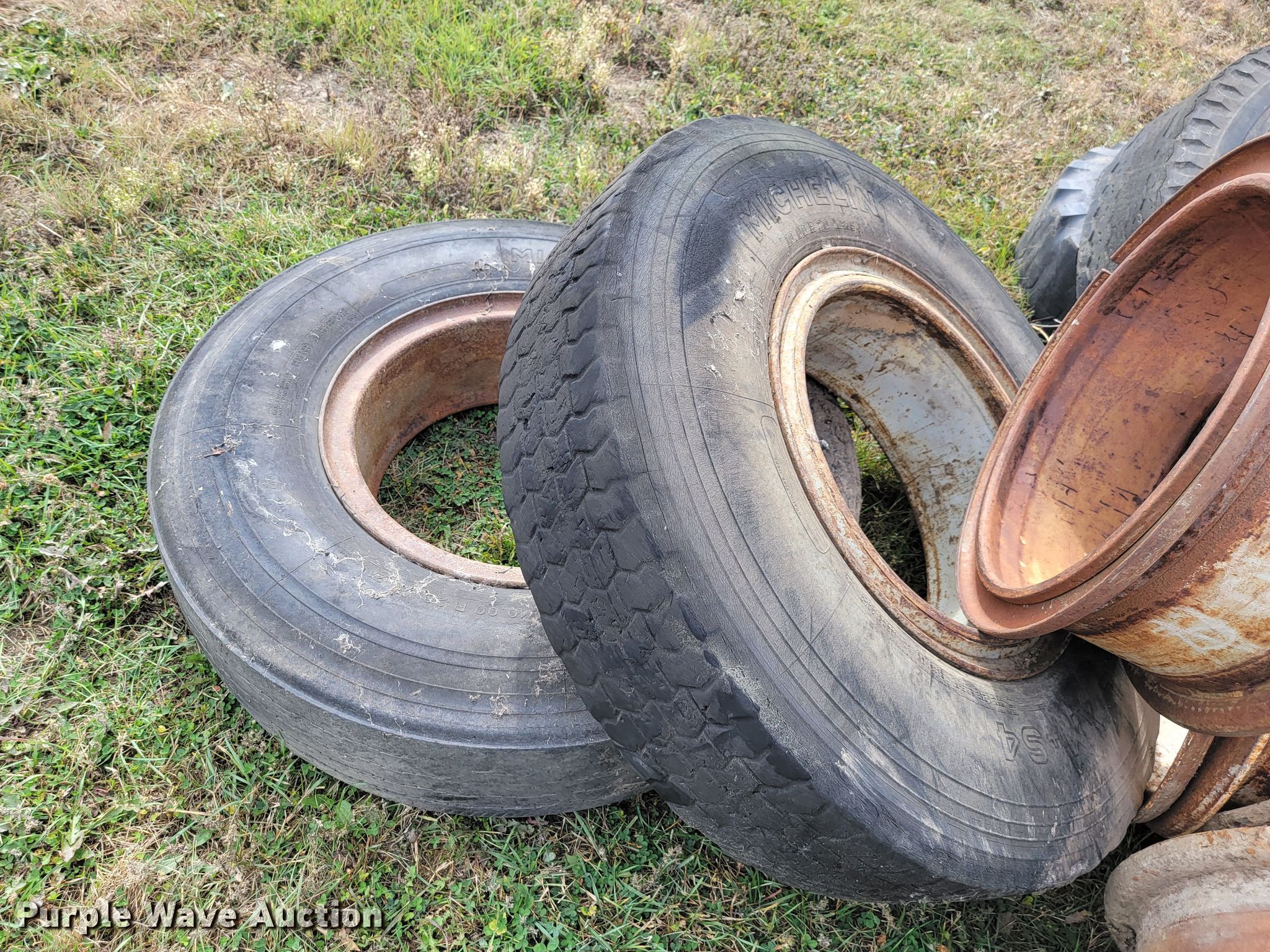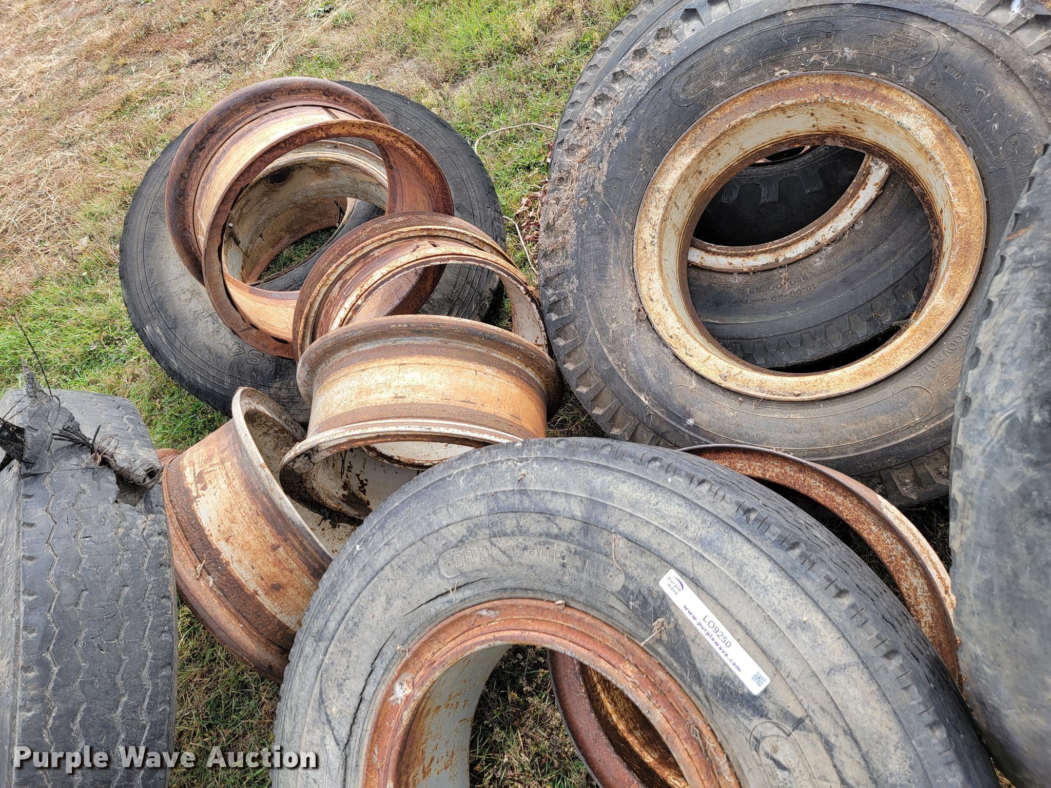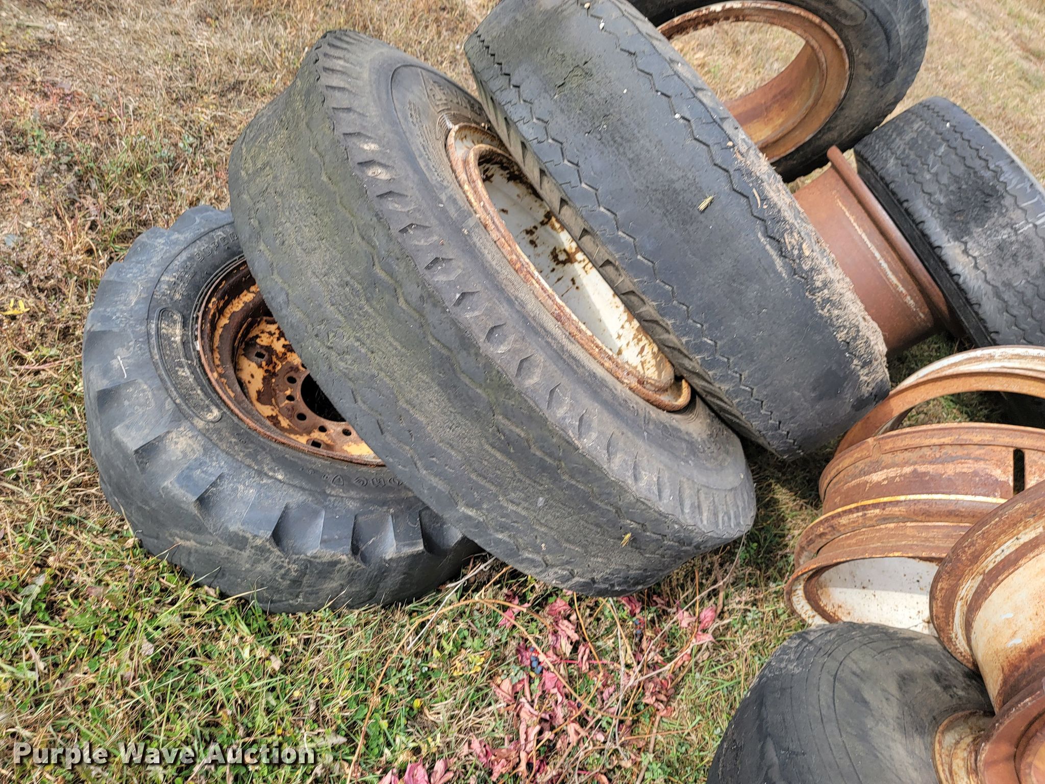 Purple Wave is selling a used Fleet Tires in South Dakota. This item is a (13) Tires and wheels with the following: (7) 10.00R-20 tires and wheels, (5) wheels, 10-16.5 tire and wheel