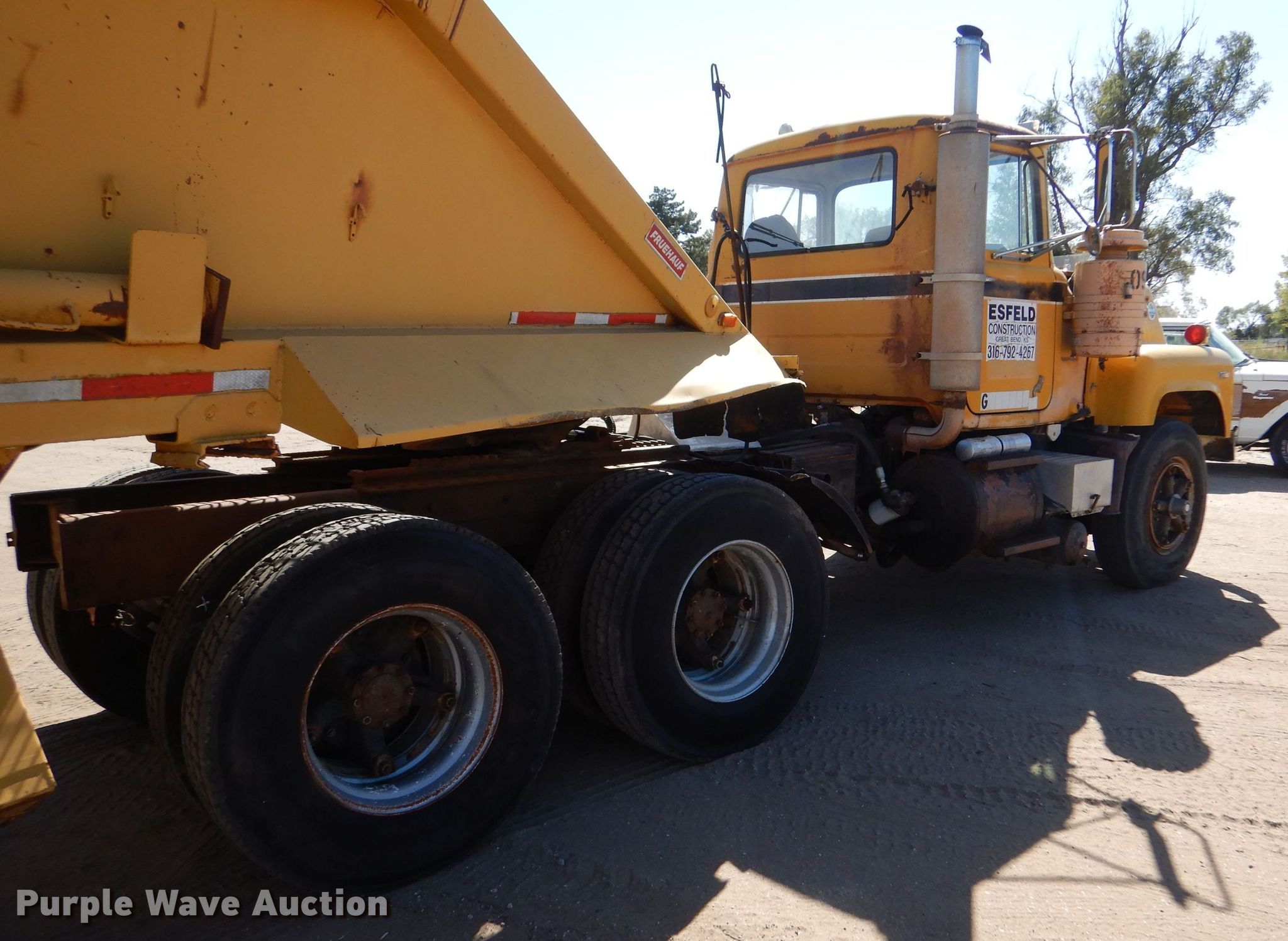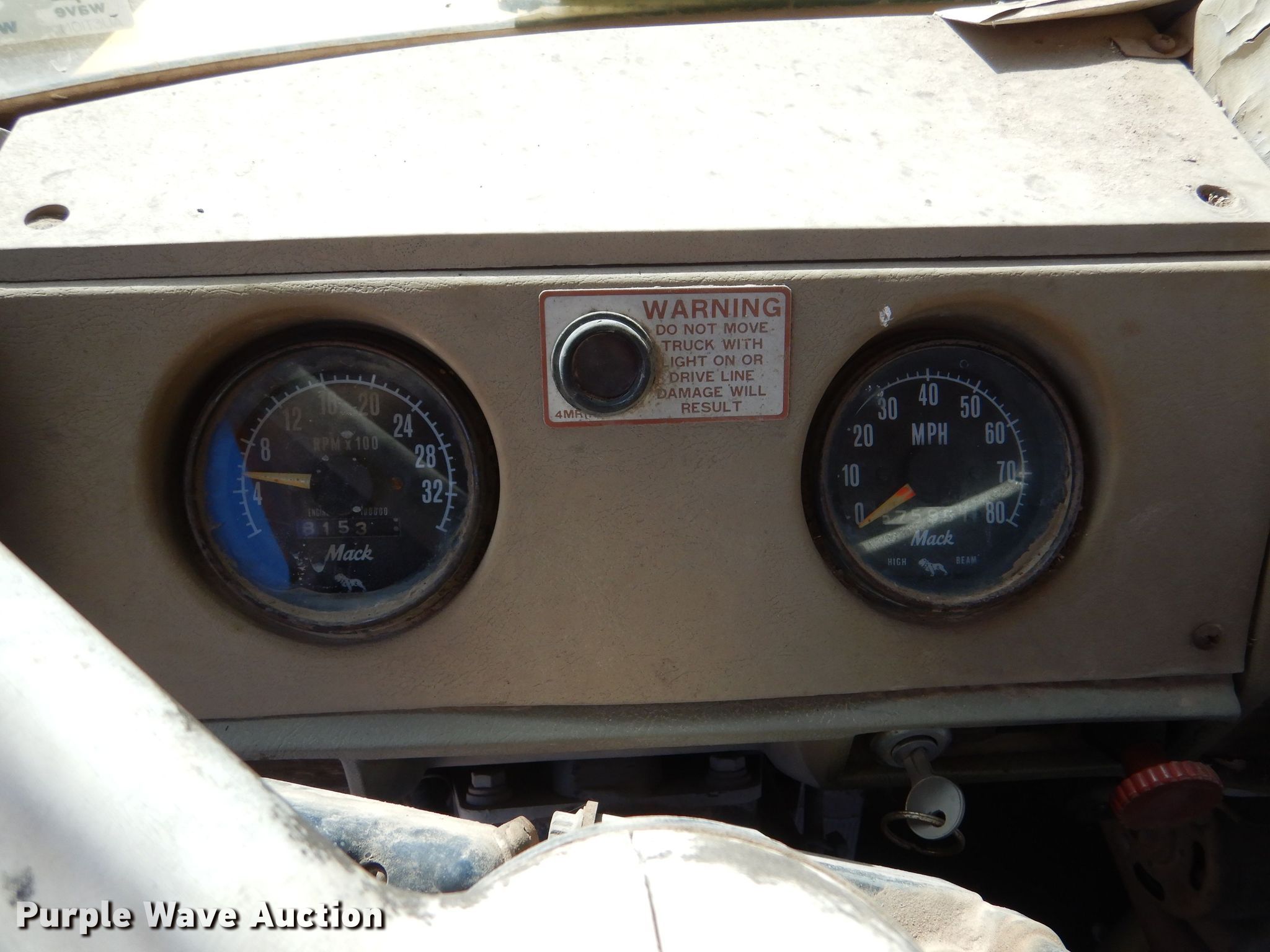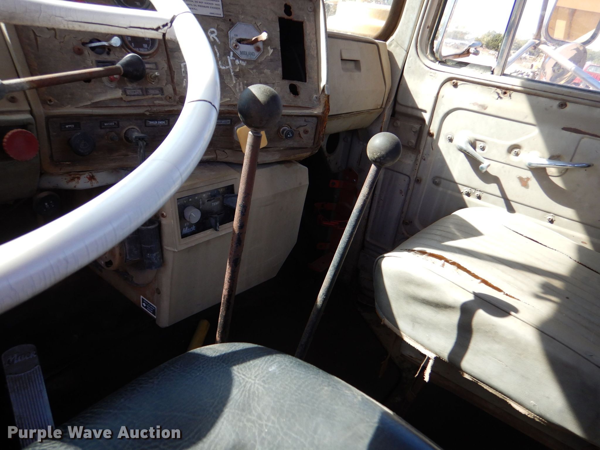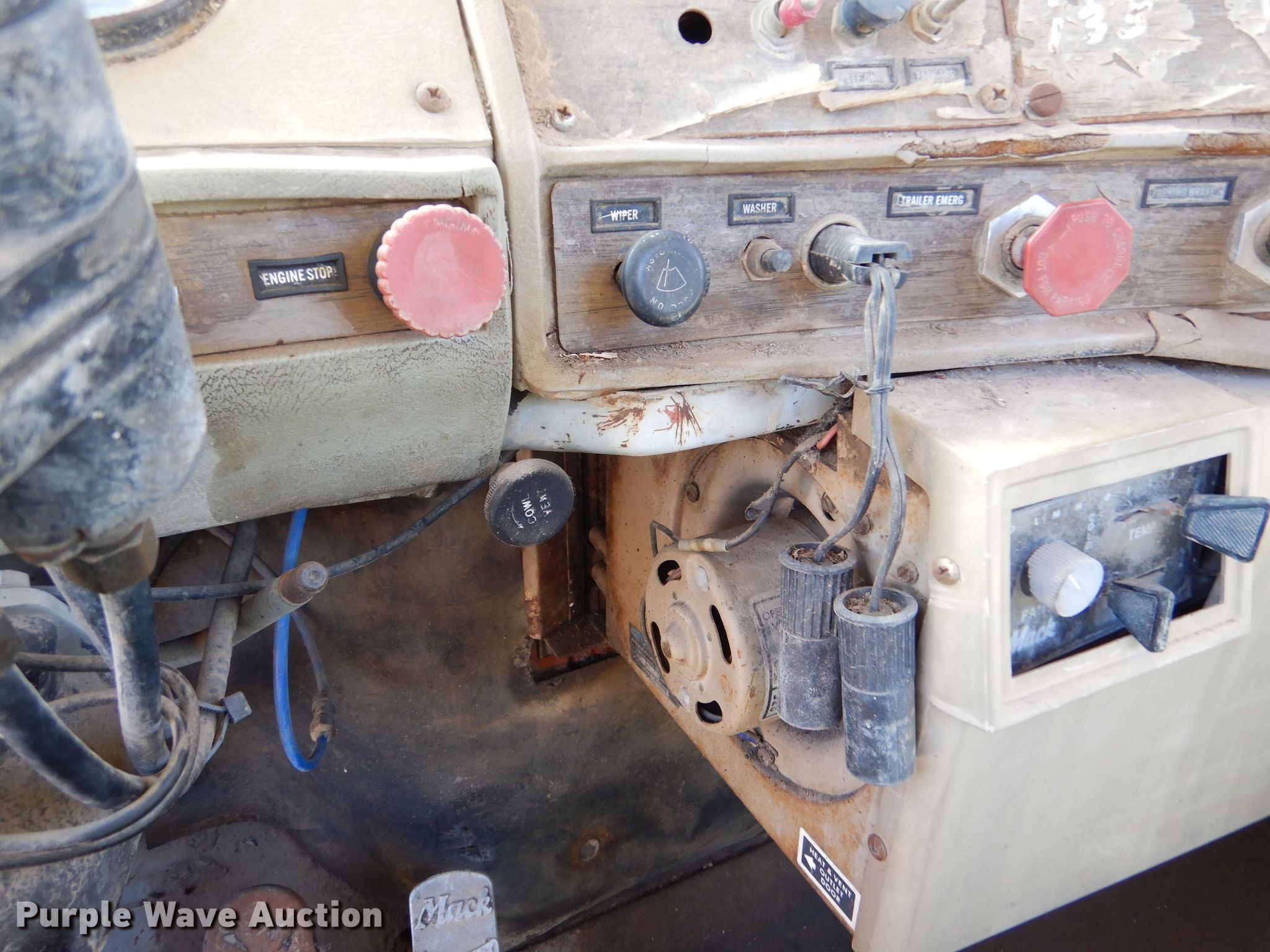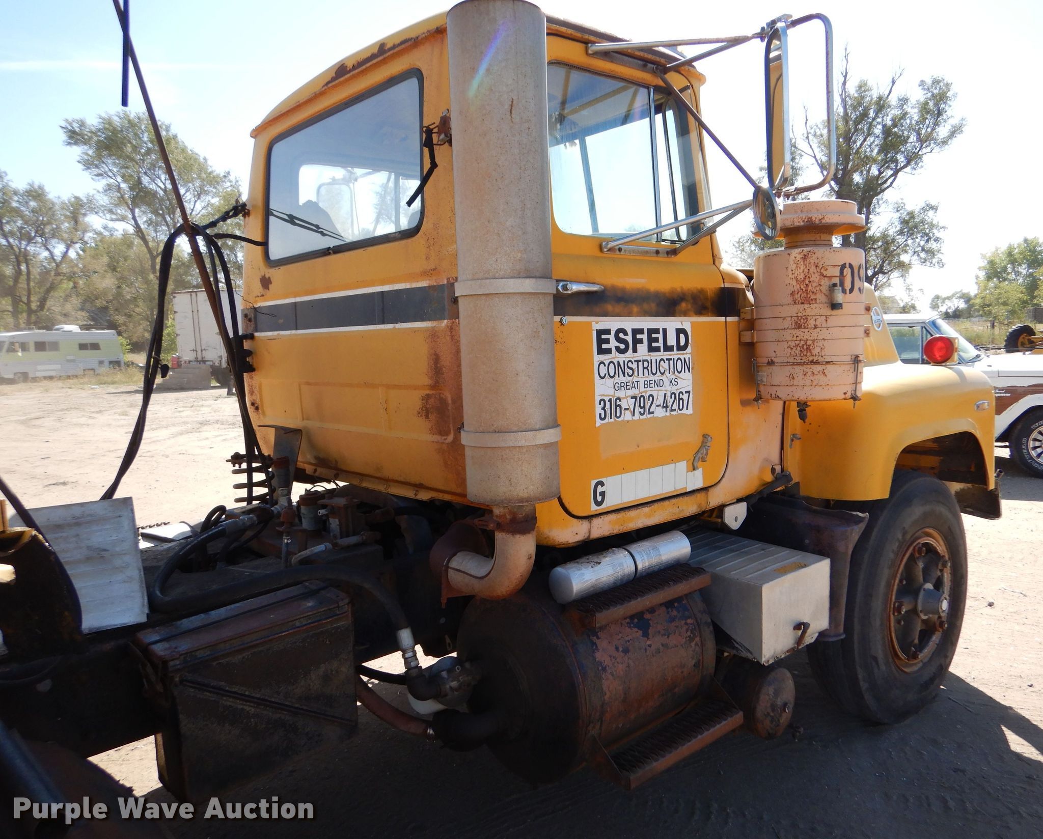 1975 Mack RS685LST semi truck. Miles: 575,951 on odometer, Hours: 8,153 on meter, VIN: RS685LST23926. Engine Mack ENDT 675, Cylinders: 6, Fuel type: Diesel, HP: 235. Transmission Manual, Speed: 5, plus 2. Chassis Axles: Tandem, Differential lock: Inter-axle, Suspension: Camelback, Brakes: Air, PTO, Wet kit. Interior Heat. Features Fifth wheel type: Air operated, Sliding, Fuel tank: Single. Tires Size: 11R22.5. Notes Trailer not included. Kansas title. Esfeld Construction, Inc... Great Bend, KS 67530