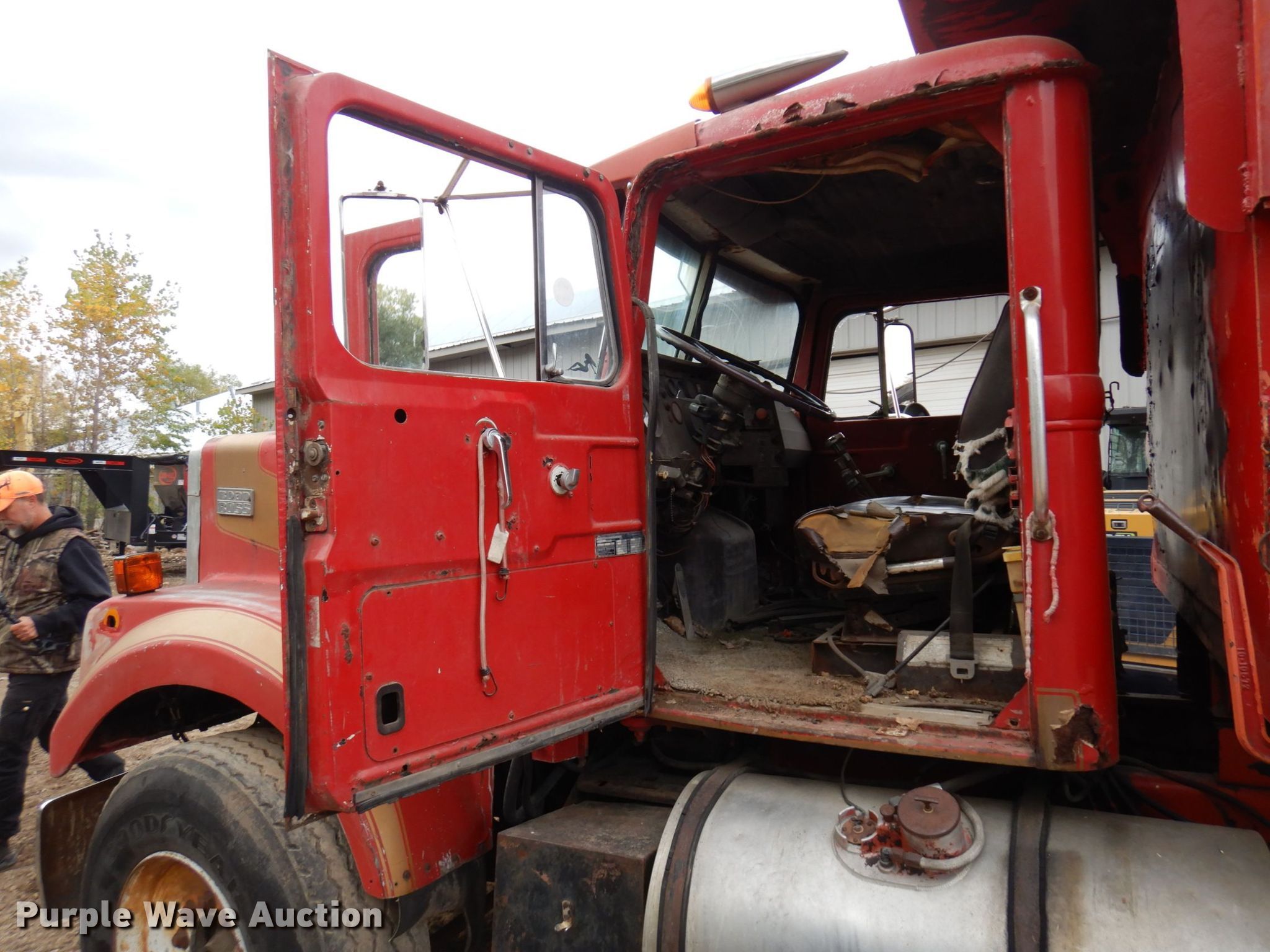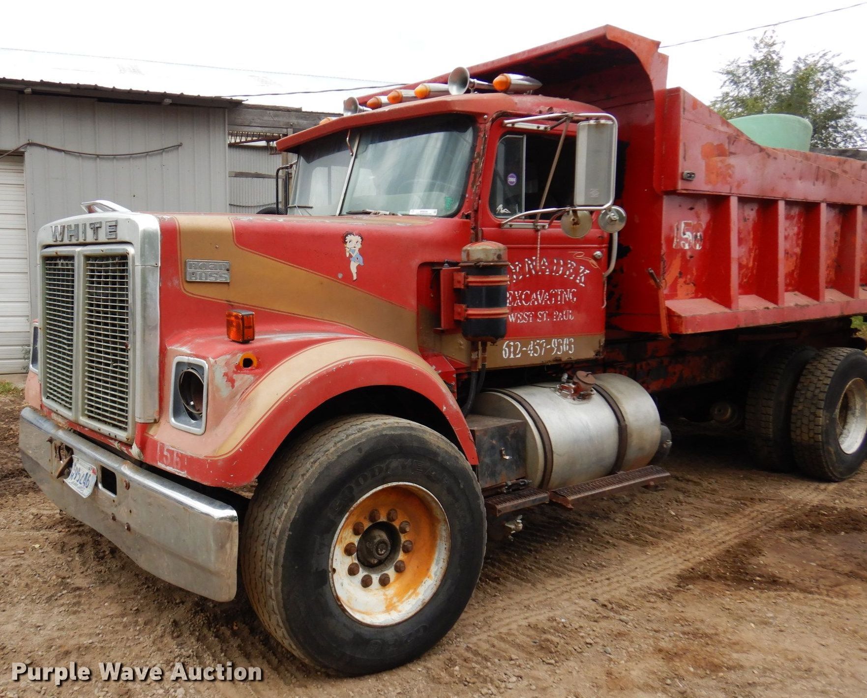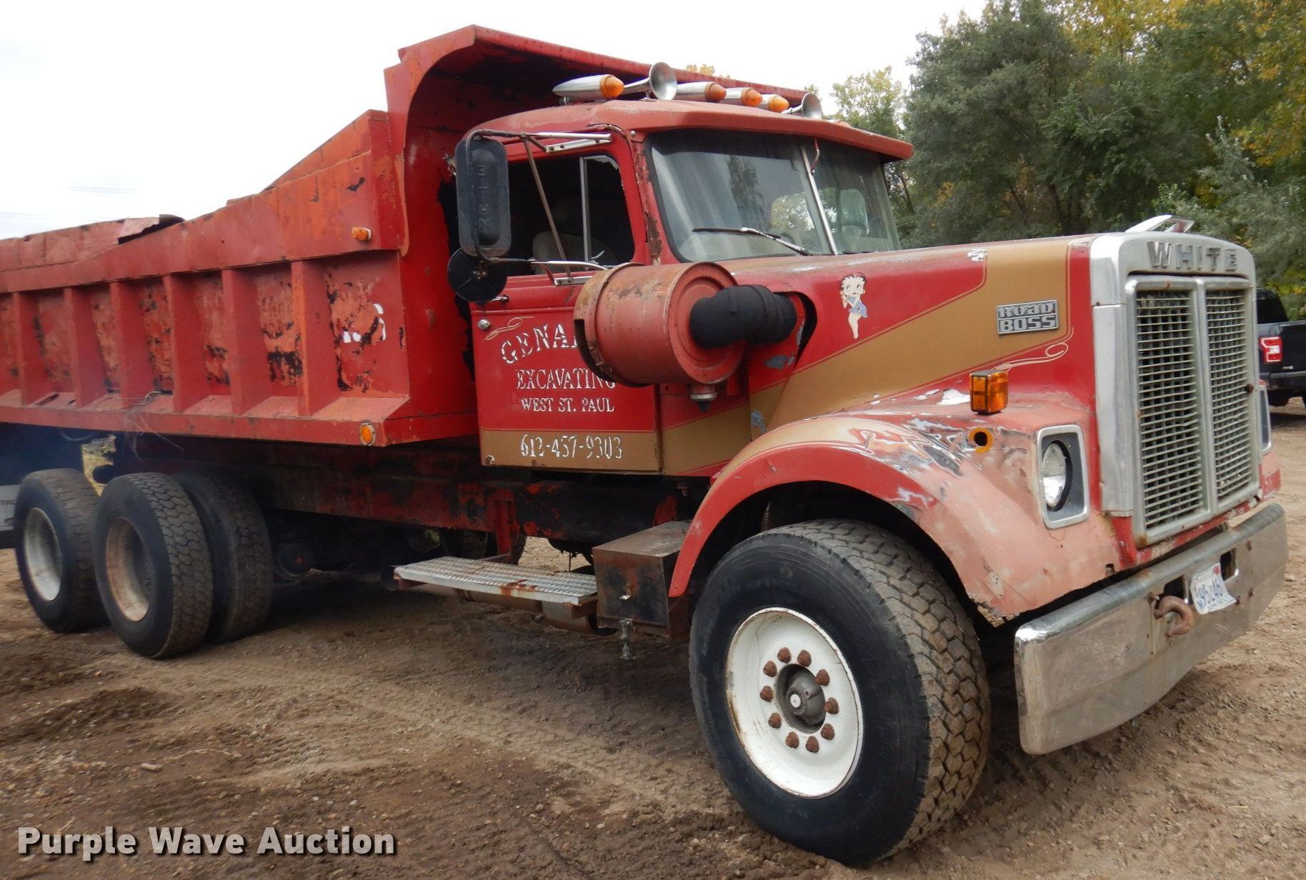 Purple Wave is selling a used Construction Dump Truck in Minnesota. This item is a 1976 White PT270 dump truck with the following: Miles: 369,674 on odometer, Hours: 5,437 on meter, VIN: GBDCDGN847421