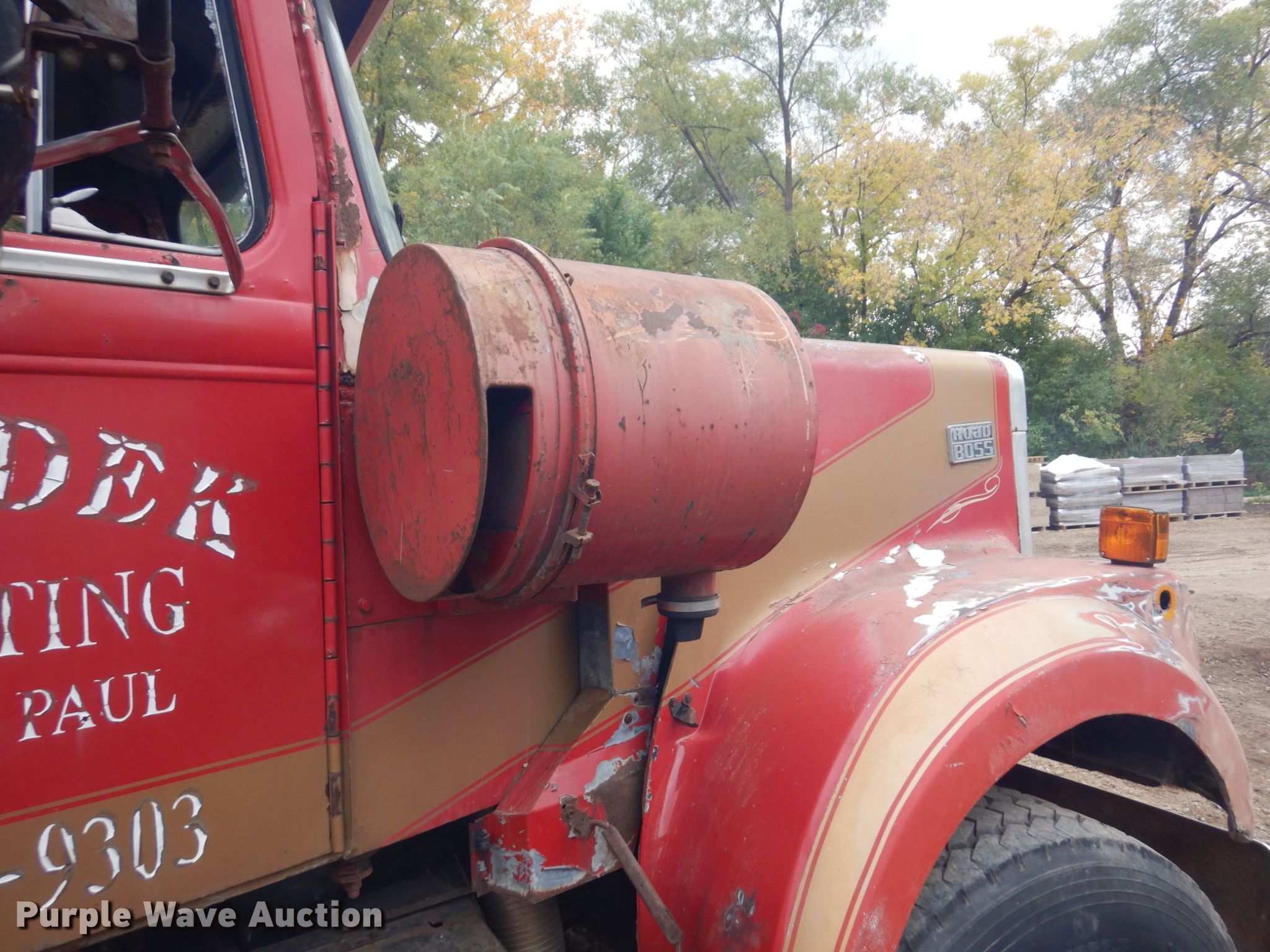 1976 White PT270 dump truck. Miles: 369,674 on odometer, Hours: 5,437 on meter, VIN: GBDCDGN847421. Engine Cummins, Cylinders: 6, Fuel type: Diesel. Transmission Manual. Chassis Double frame, Axles: Tandem, Suspension: Walking beam, Brakes: Air, GVWR: 78,400 lbs. Interior Heat. Features Dump bed 15' 10" L x 8' W, Side height: 45", Bed type: Steel, Ram: Single , End gate: Manual. Tires Front: 385/65R22.5, Rear: 11R22.5. Notes Door windows broken. Minnesota title. Genadek landscaping and Excavation inc.. 441 Villaume Avenue. South Saint Paul, MN 55075
