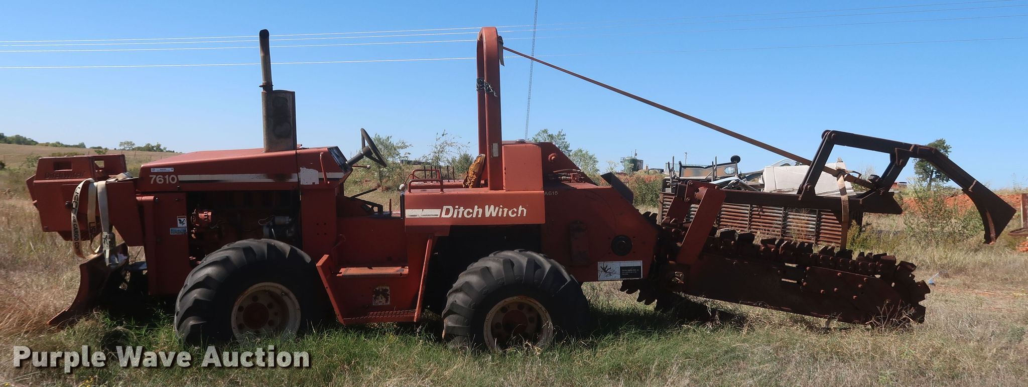 Purple Wave is selling a used Trencher or Rock Saw in Oklahoma. This item is a Ditch Witch 7610 trencher with the following: Hours: Unknown