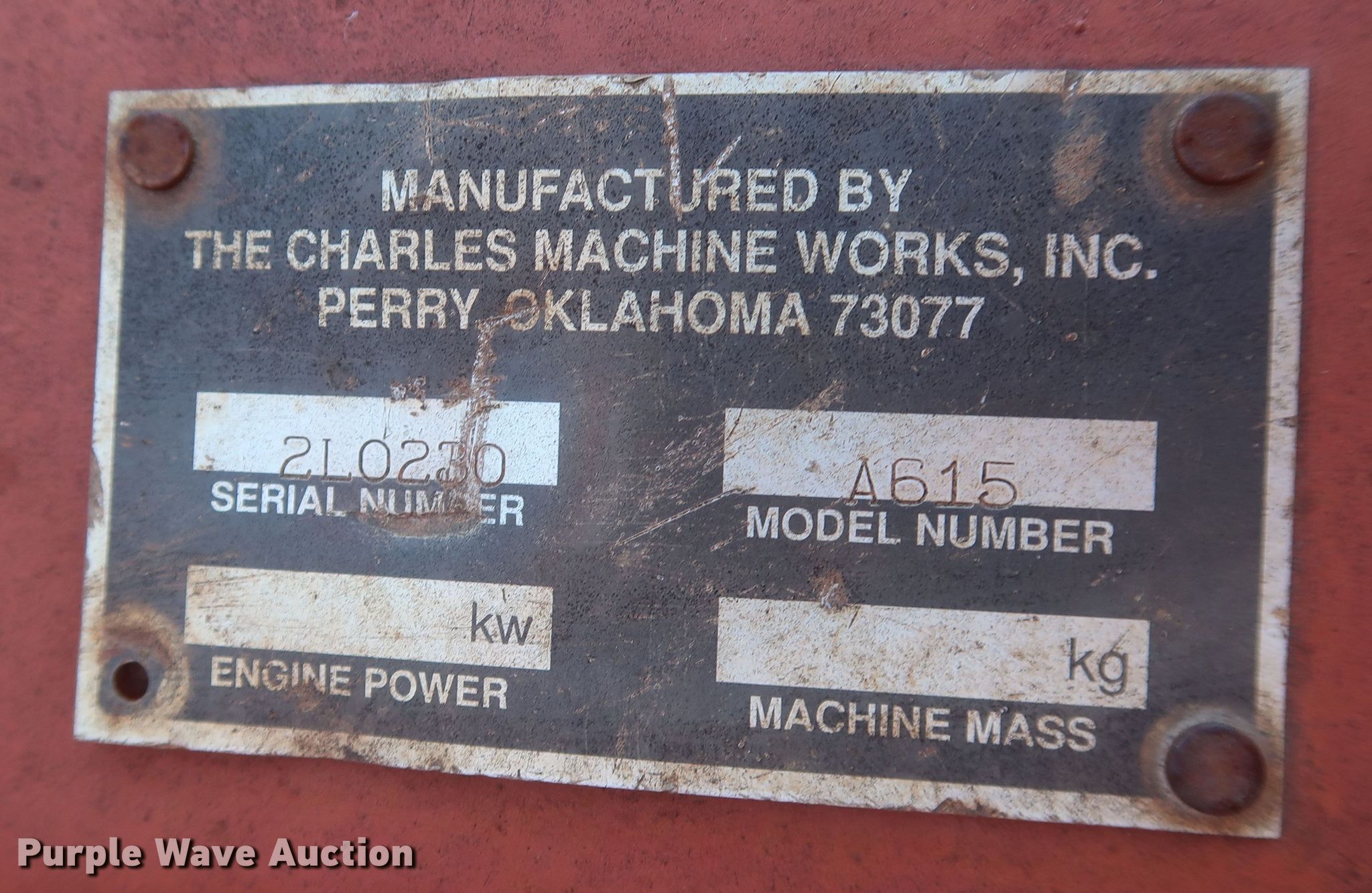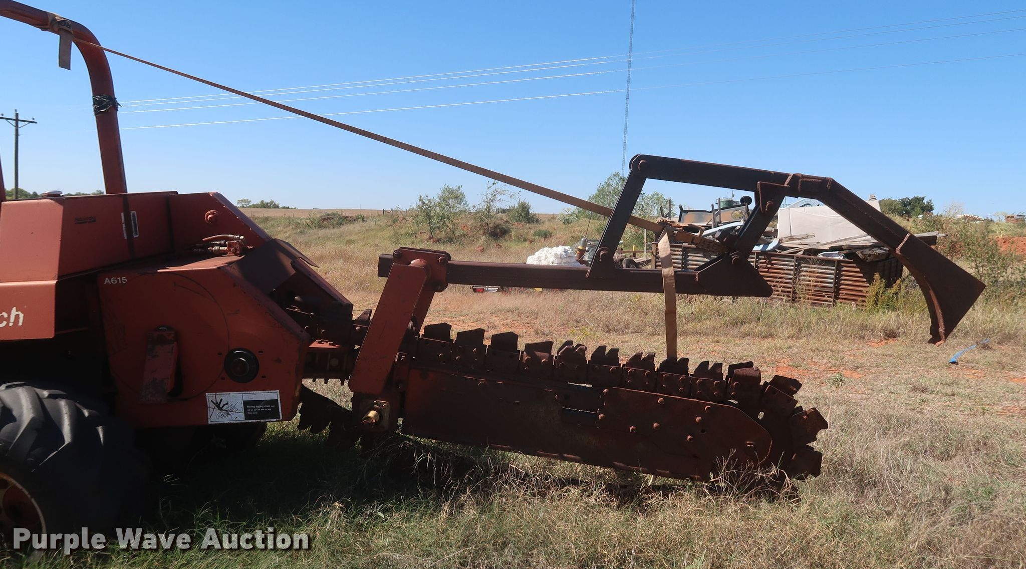 Ditch Witch 7610 trencher. Hours: Unknown. Engine Deutz F4L912, Serial: 8319865, Cylinders: 4, Fuel type: Diesel, HP: 73. Transmission Manual, Four wheel drive. Features Trencher Model: A615, Serial: 2L0230, Estimated dig depth: 72", Cutting width: 6", Teeth: Rock, Dirt, Manual crumber, Backfill blade Width: 72". Tires Size: 16.5L-16.1. Notes Non-operational unit. Goldsby, OK 73093