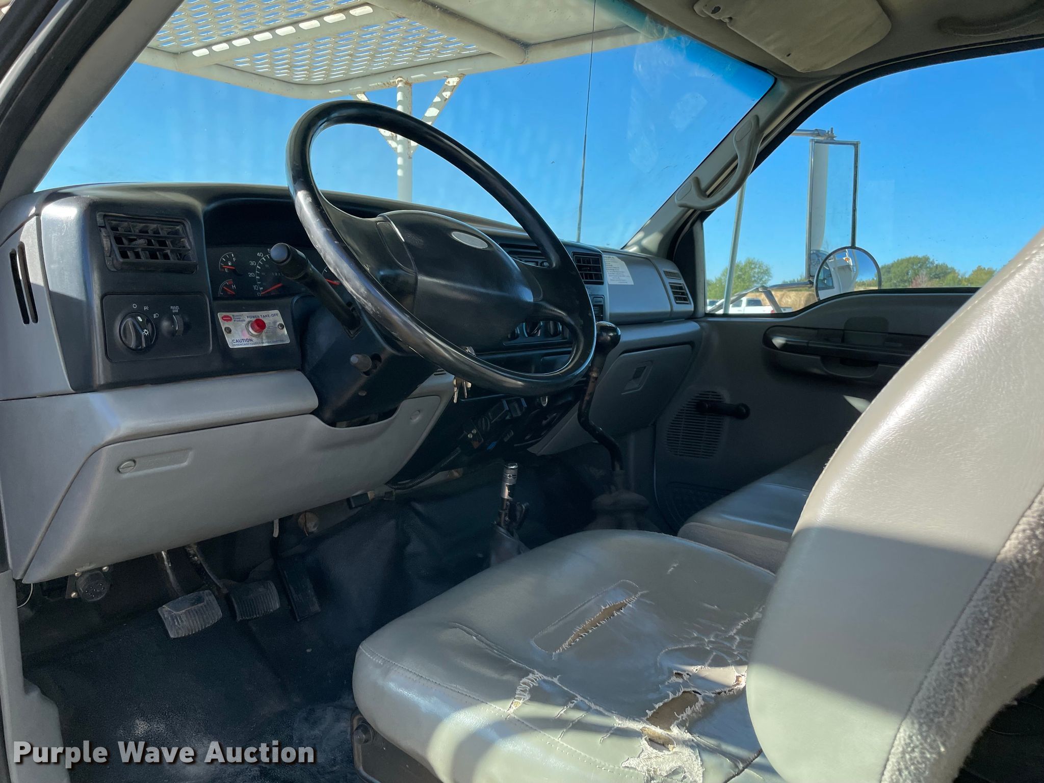 2004 Ford F650 forestry bucket truck. Miles: 132,384 on odometer, Miles or hours may vary, unit still in use, VIN: 3FRNF65E64V665576. Engine Cummins ISB 215, Displacement: 5.9L, Cylinders: 6, Fuel type: Diesel. Transmission Manual, Speed: 6. Chassis Axles: Single, Suspension: Spring, Brakes: Hydraulic, PTO, GVWR: 26,000 lbs. Interior AC, Heat, Cruise control, Brake controller. Features Chip bed 16' L x 8' W, Boom Altec LRV55, Maximum lift capacity: 400 lbs, Maximum lift height: 55', Boom type: Articulating, Man basket, Boom controls Ground, Platform/ basket.. Tires Size: 295/75R22.5. Notes Dash warning indicator: ABS. Oklahoma title. Title distribution may be delayed up to 14 days from verification of funds. East Lankford Avenue. Bennington, OK 74723