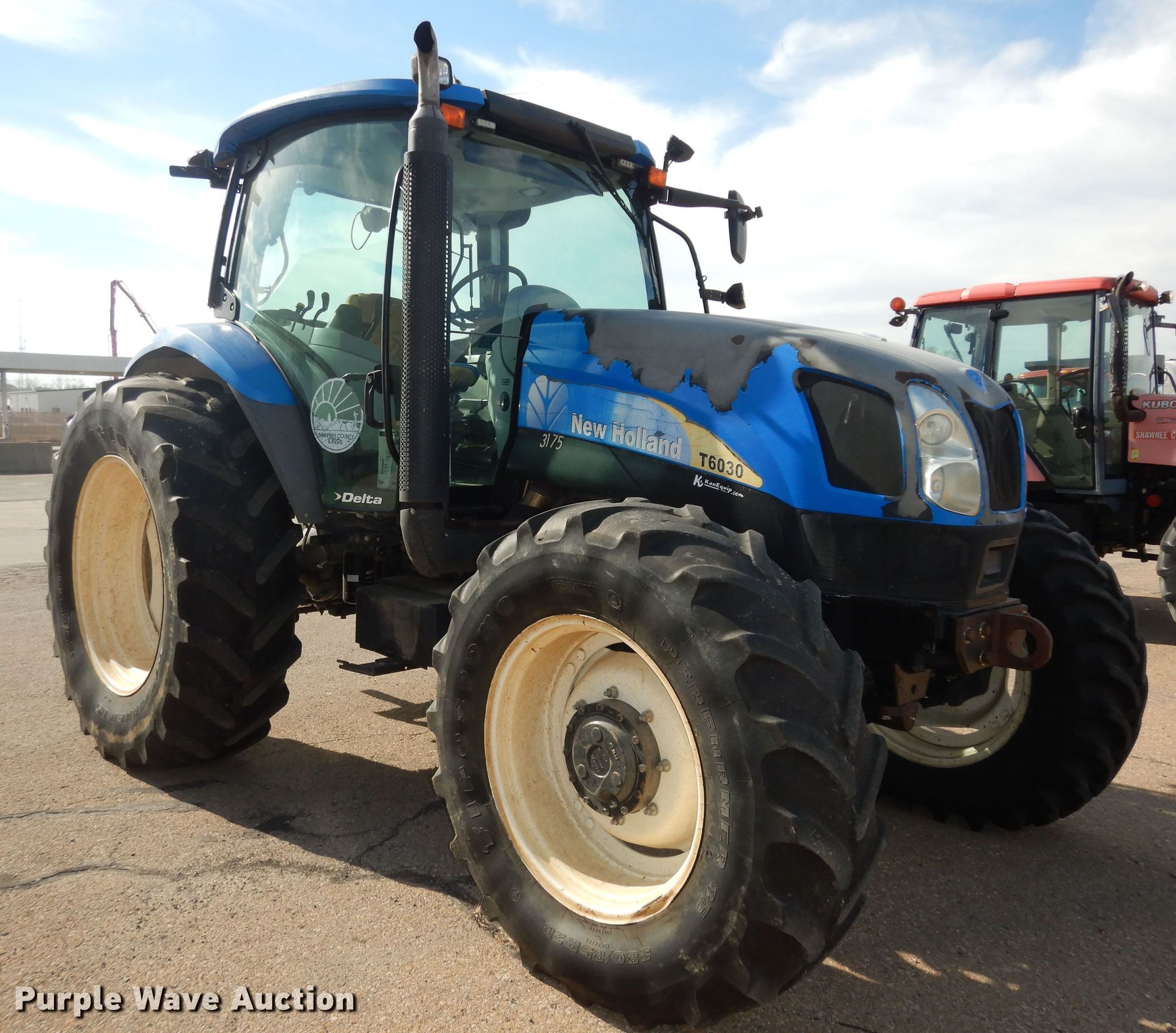 Purple Wave is selling a used Tractor in Kansas. This item is a 2008 New Holland T6030 MFWD tractor with the following: Hours: 5,286 on meter, Serial: Z7BD06133
