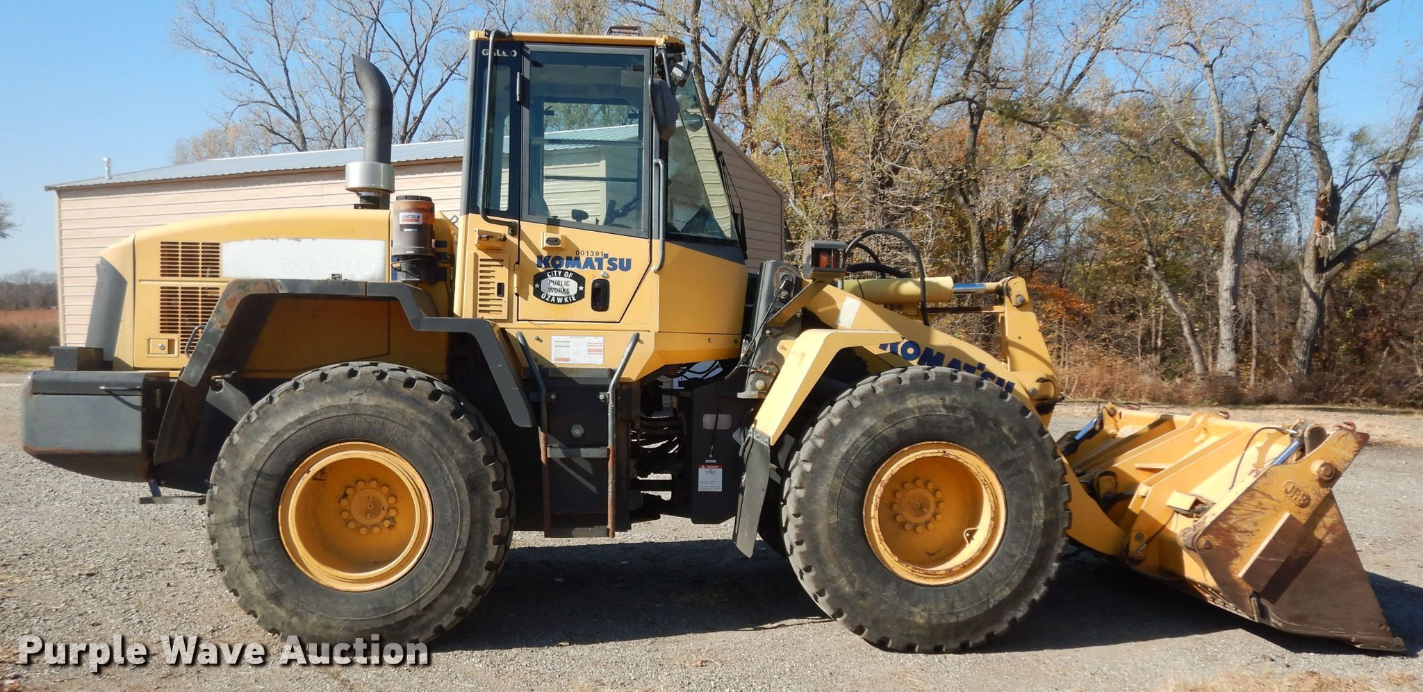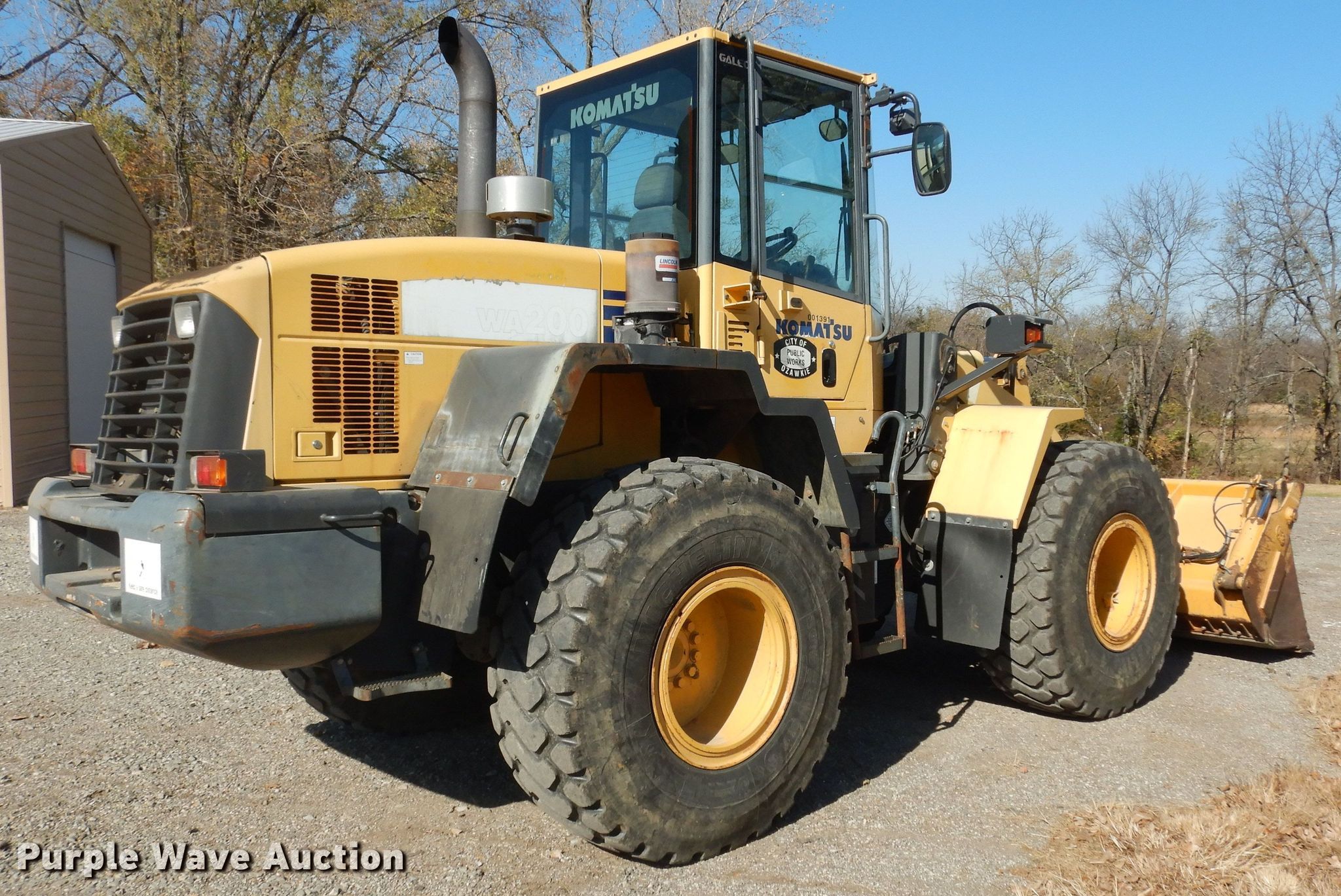 Purple Wave is selling a used Wheel Loader in Kansas. This item is a 2007 Komatsu WA200-5 wheel loader with the following: Hours: 3,199 on meter, Serial: 68618, Unit #: 001391