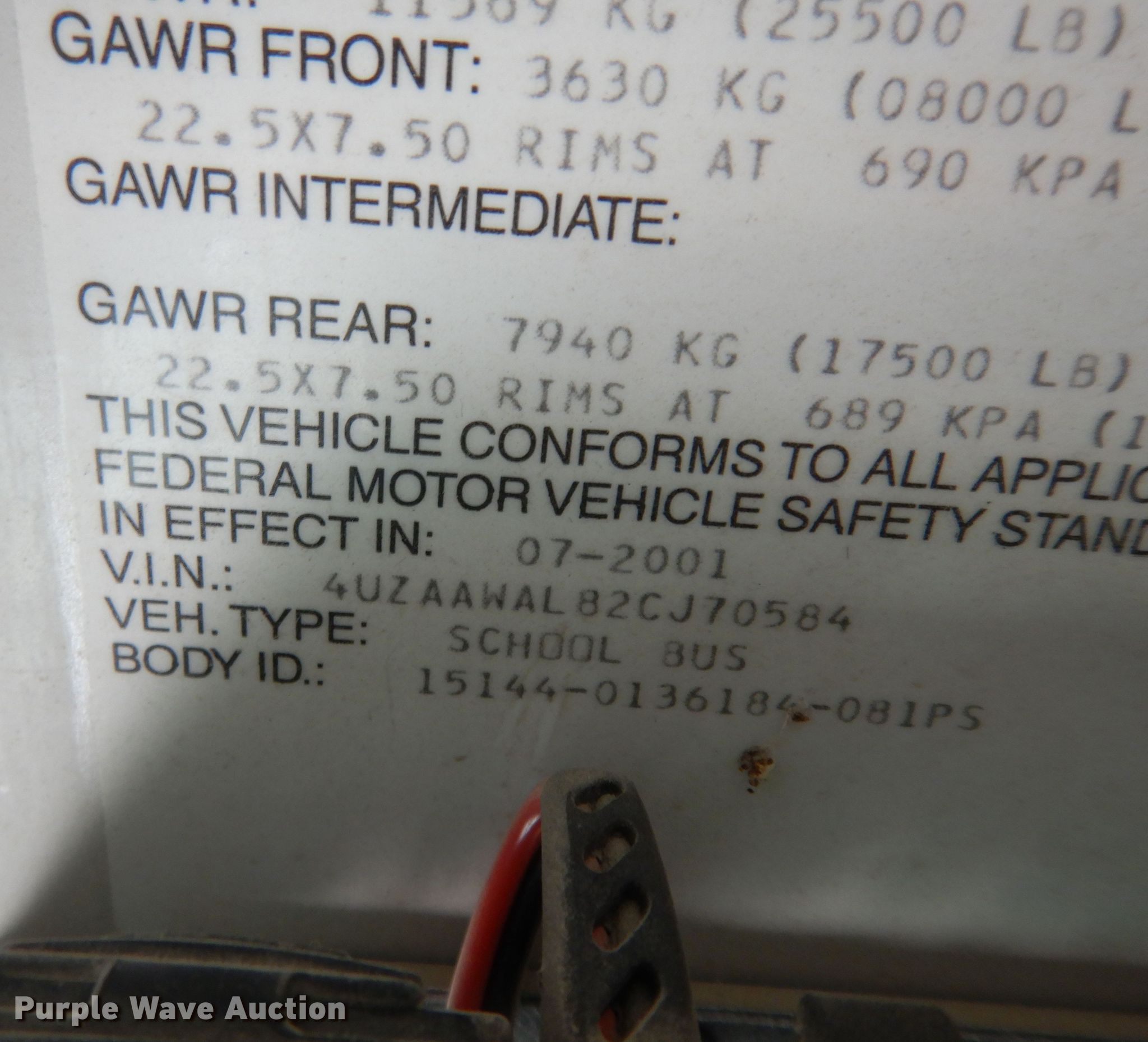 Purple Wave is selling a used Bus in Kansas. This item is a 2002 Thomas school bus with the following: Miles: 60,042 on odometer, Hours: 2,078 on meter, VIN: 4UZAAWAL82CJ70584, Unit #: 6