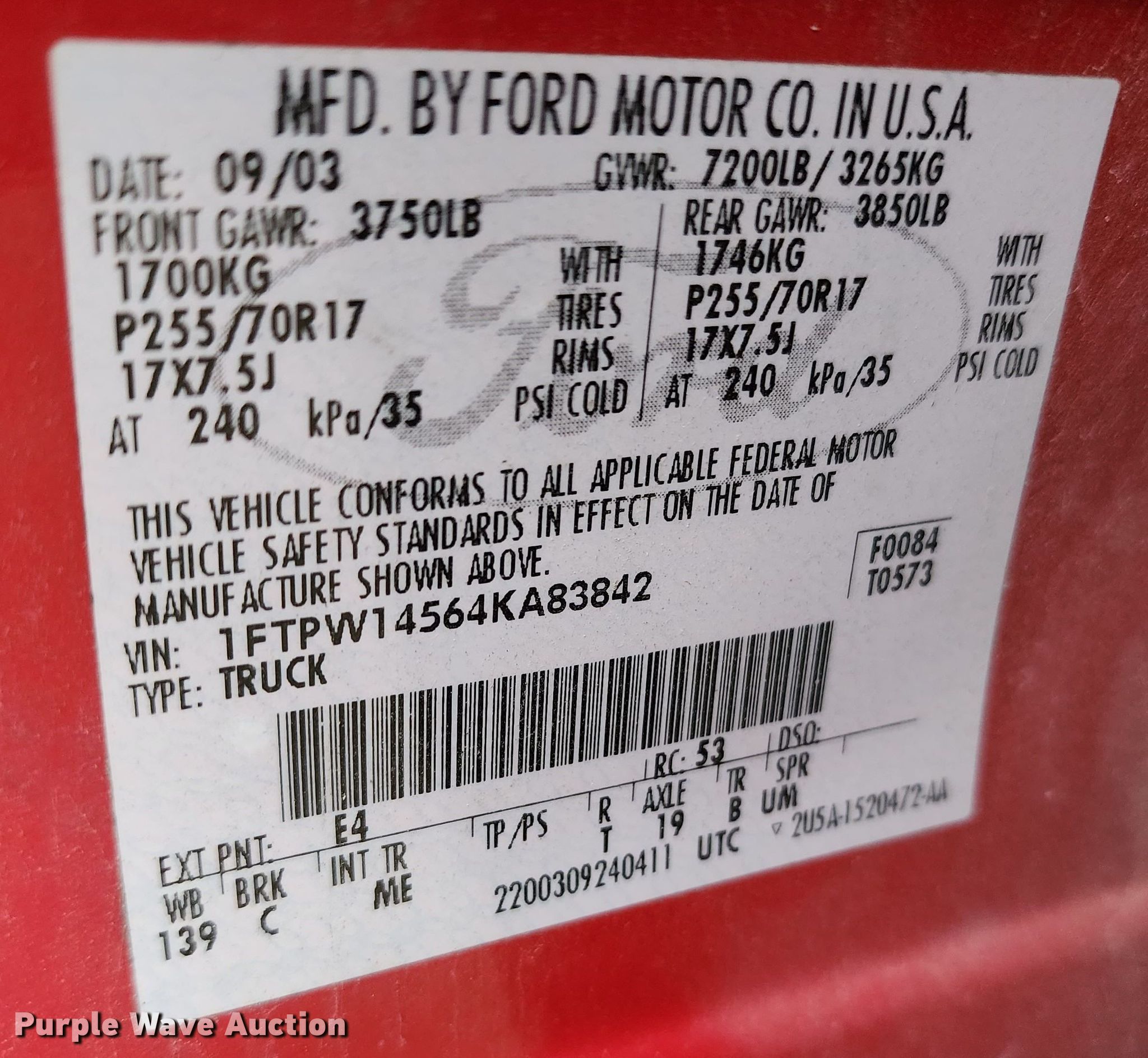 Purple Wave is selling a used 1/2 Ton Pickup or Van in Missouri. This item is a 2004 Ford F150 SuperCrew pickup truck with the following: Miles: 57,531 on odometer, VIN: 1FTPW14564KA83842