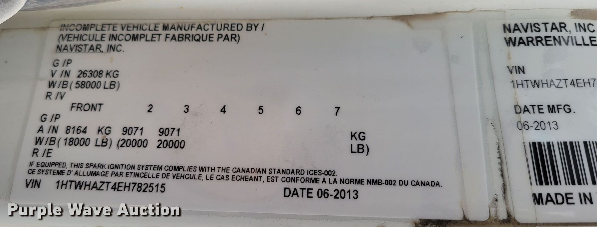 Purple Wave is selling a used Construction Dump Truck in Iowa. This item is a 2014 International WorkStar 7400 dump truck with the following: Miles: 195,912 on odometer, Hours: 7,053 on meter, VIN: 1HTWHAZT4EH782515, Unit #: 41