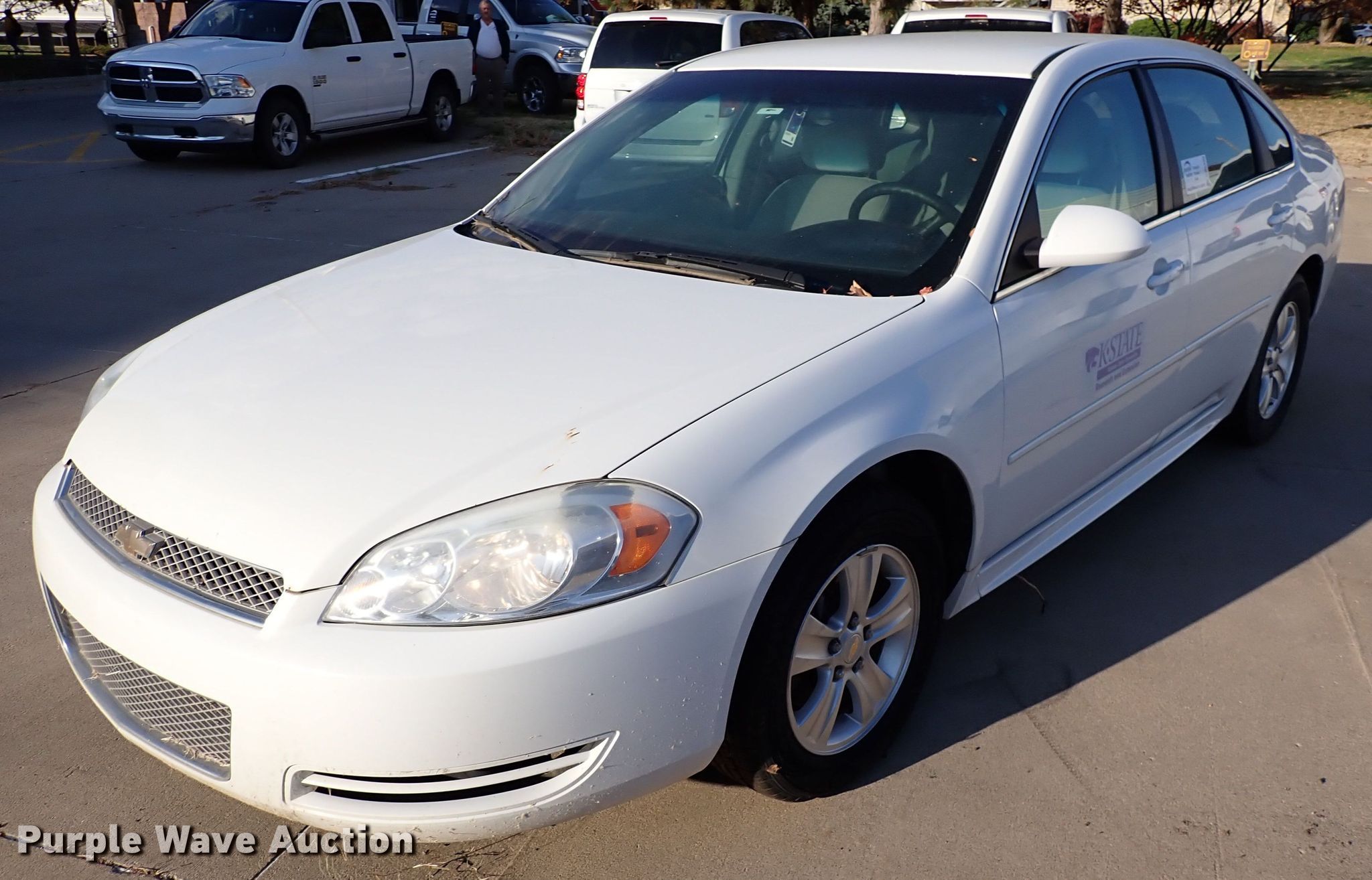 2012 Chevrolet Impala LS. Miles: 146,914 on odometer, VIN: 2G1WF5E38C1283225, Unit #: 15068. Engine Displacement: 3.6L V6 DOHC, Cylinders: 6, Fuel type: Gas. Transmission Automatic. Interior AC, Heat, Seat: Power driver, Power windows, Power locks, Cruise control. Tires Size: 225/60R16. Notes Dash warning indicator: Check engine, Dead battery. Kansas title. KCARE KSU. Manhattan, KS 66502