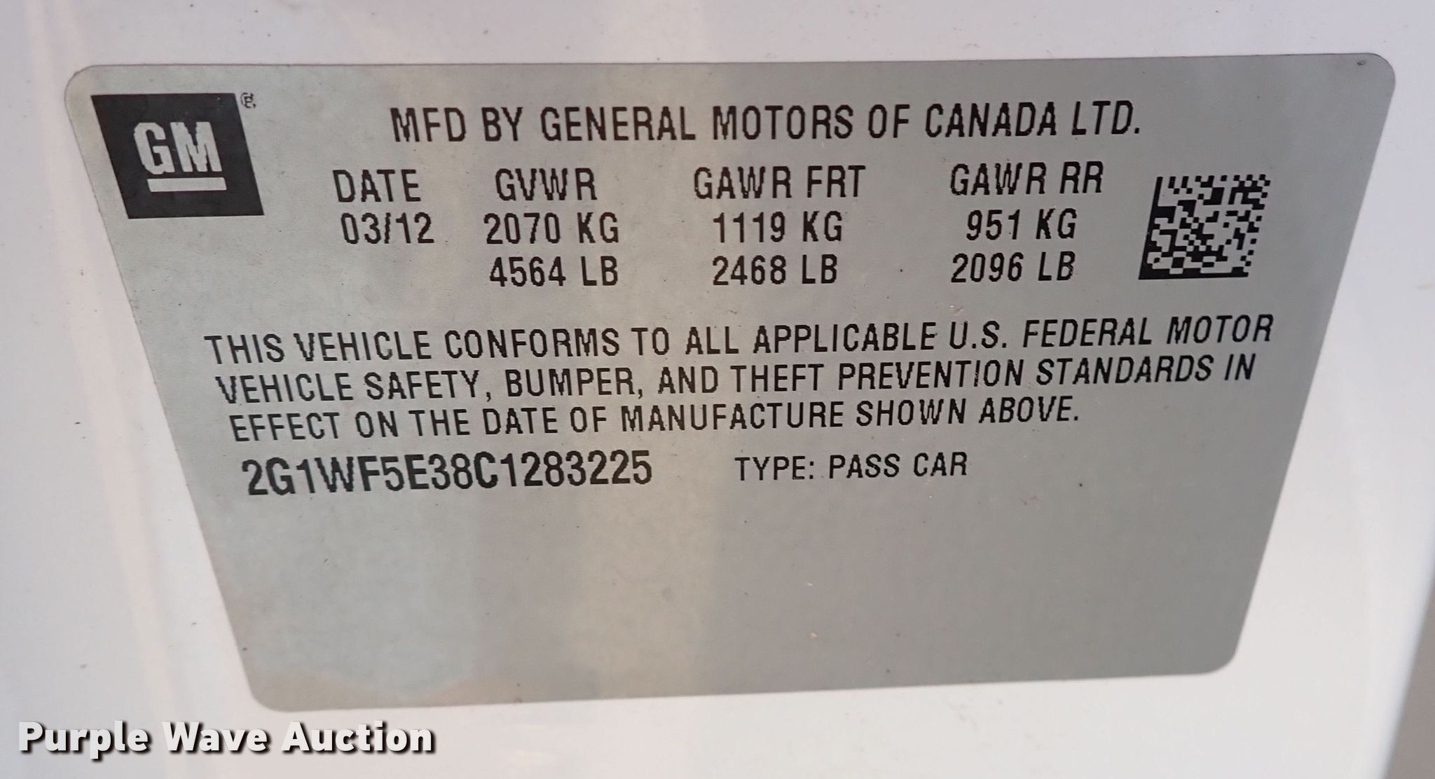 Purple Wave is selling a used Passenger Vehicle in Kansas. This item is a 2012 Chevrolet Impala LS with the following: Miles: 146,914 on odometer, VIN: 2G1WF5E38C1283225, Unit #: 15068