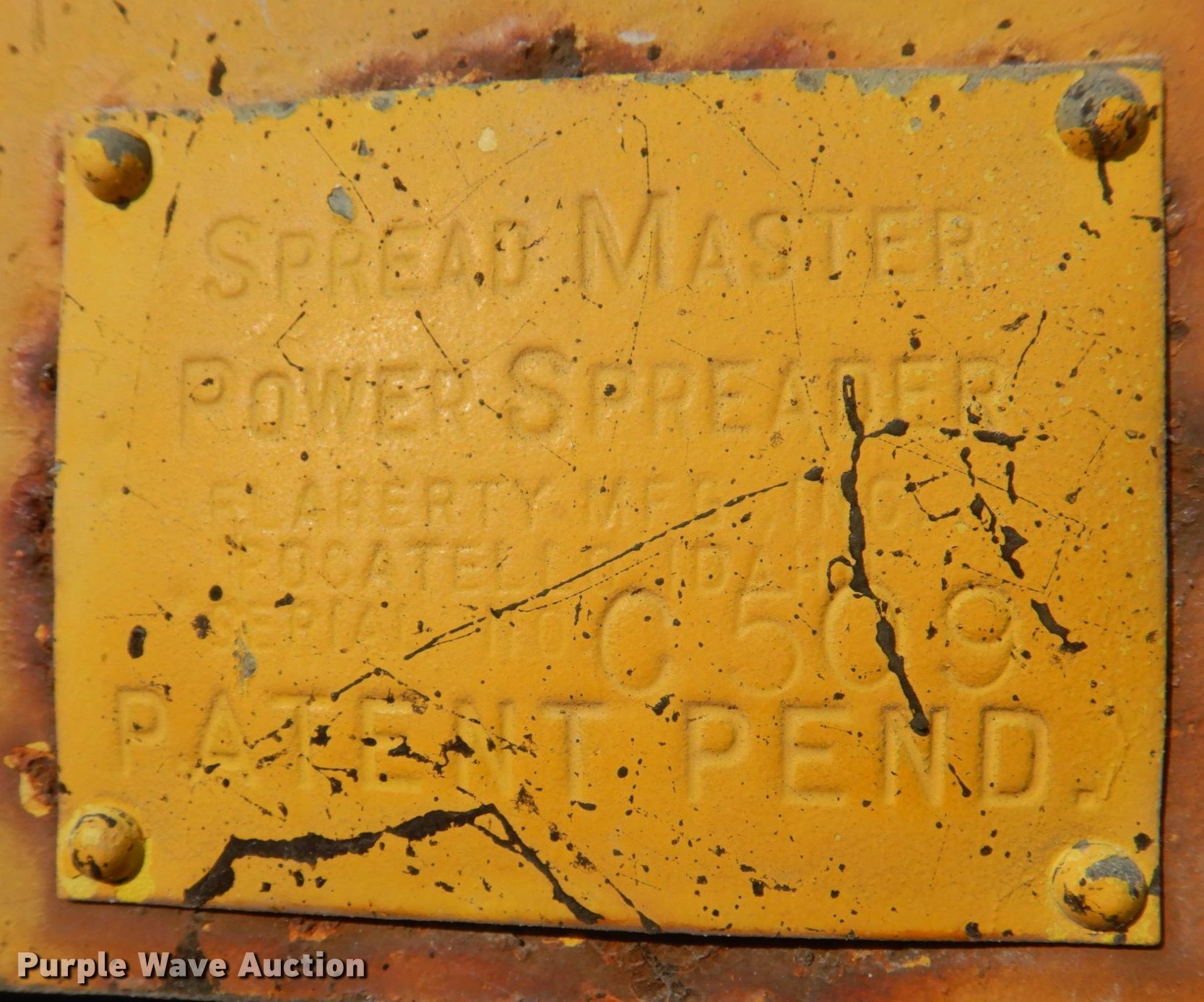 Purple Wave is selling a used Chip Spreader in Illinois. This item is a Flaherty Spread Master chip spreader with the following: Hours: Unknown, Serial: C509, Unit #: F-1