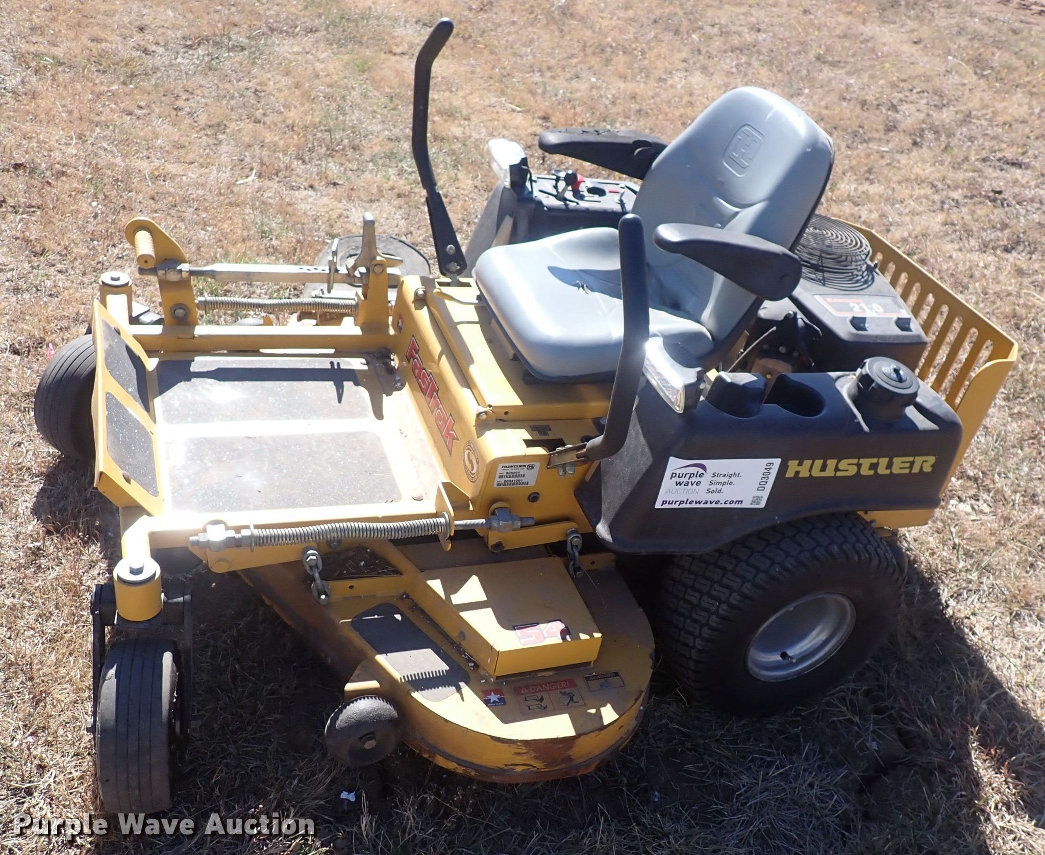 Purple Wave is selling a used Lawn Mower in Kansas. This item is a Hustler FastTrak 928291 ZTR lawn mower with the following: Hours: 814 on meter, Cutting width: 54", Serial: 08041291