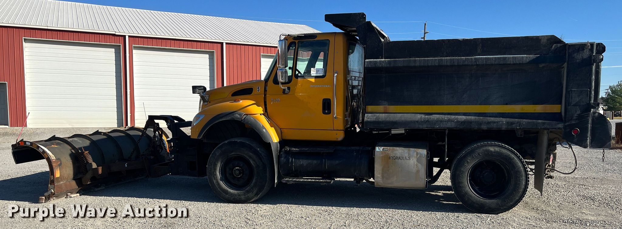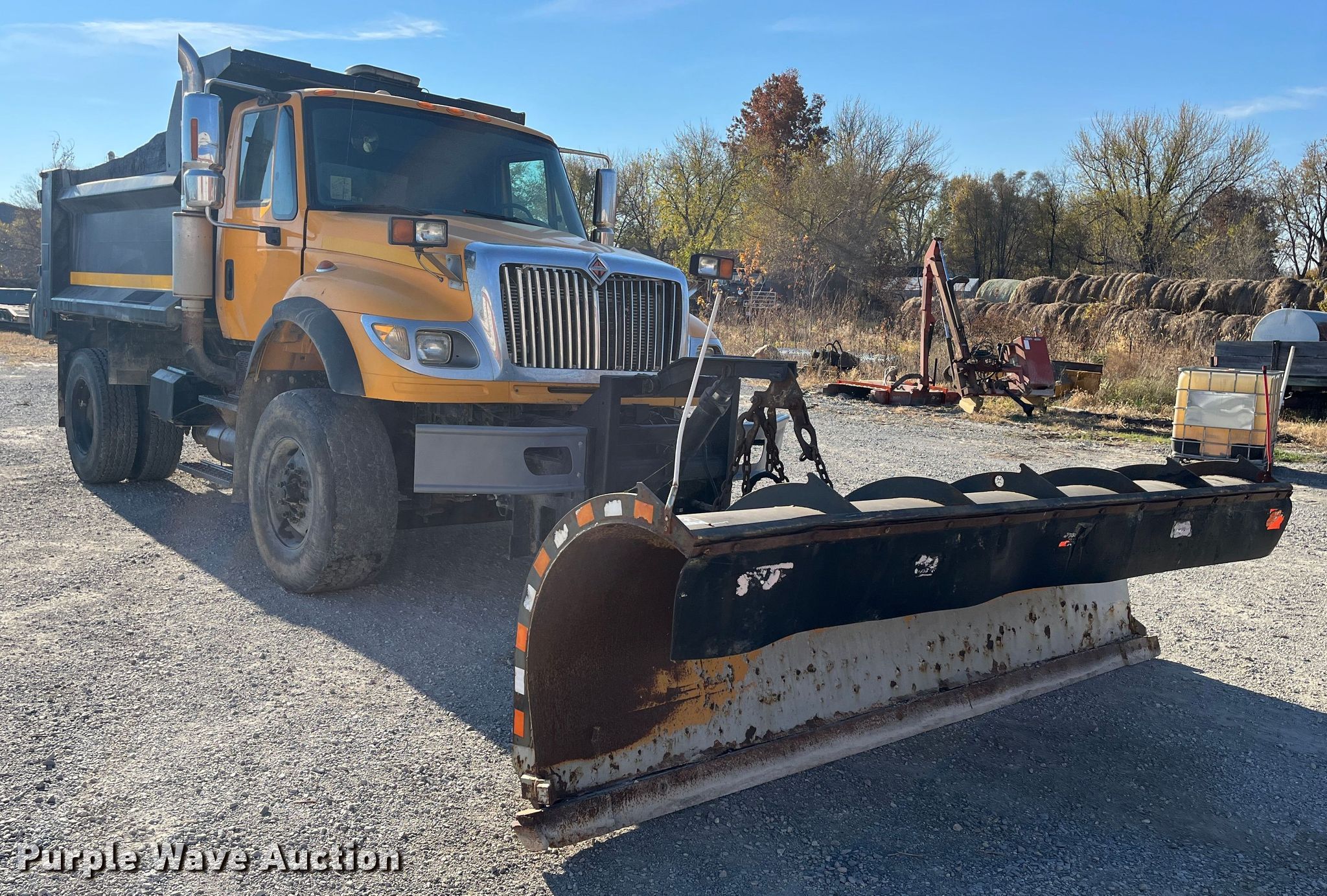 2004 International 7600 dump truck. Miles: 122,715 on odometer, Hours: 8,071 on meter, VIN: 1HTTXAHR94J082170. Engine Cummins ISM, Displacement: 10.8L, Cylinders: 6, Fuel type: Diesel. Transmission Allison, Automatic. Chassis Double frame, Axles: Single, Suspension: Spring, Brakes: Air, Front mount PTO, Wheelbase: 152". Interior AC, Heat, Cruise control. Features Dump bed 10' L x 96" W, Side height: 40", Side board height: 10", Bed type: Steel, Ram: Single , End gate: Air operated, Plow Width: 144". Tires Front: 425/65R22.5, Rear: 11R22.5. Missouri title. Title distribution may be delayed up to 14 days from verification of funds. Plattsburg Special Road District. 1101 Polotsky St. Plattsburg, MO 64477