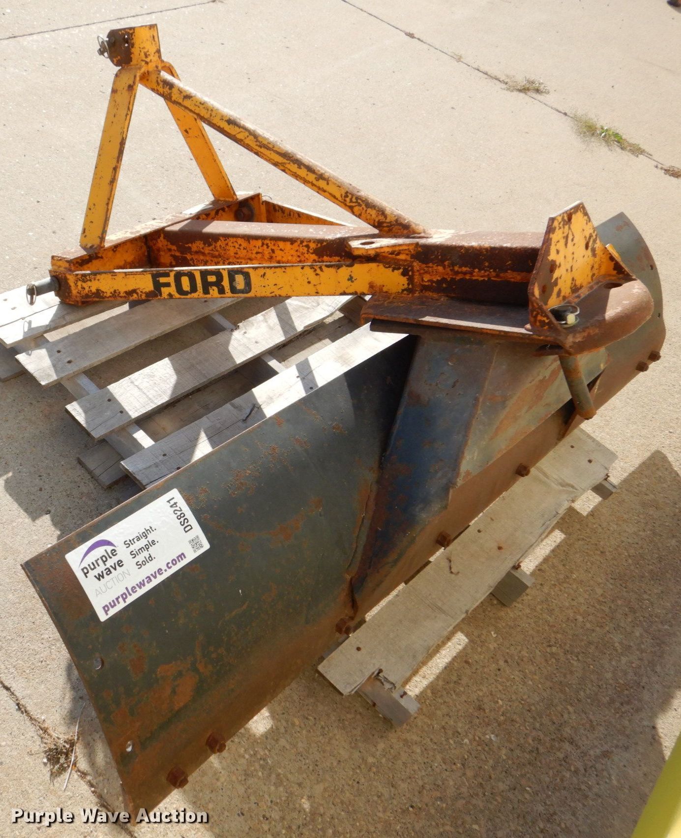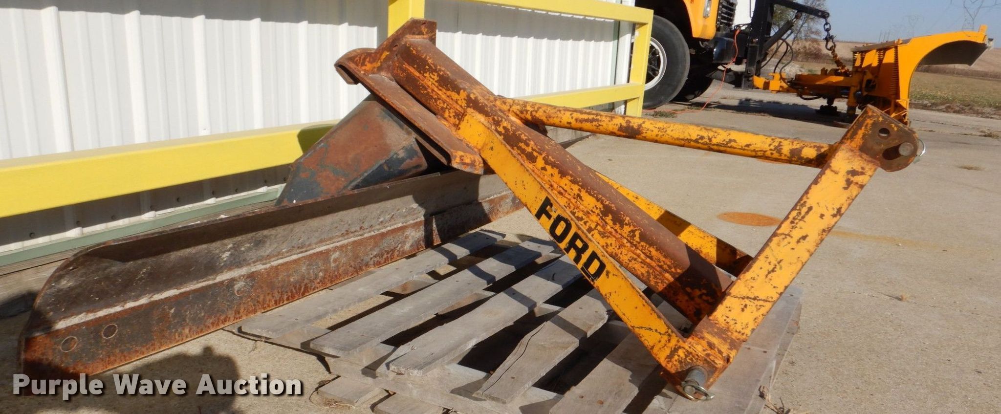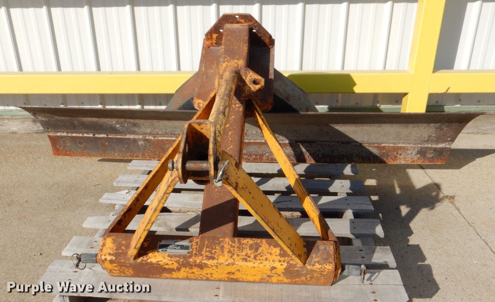 Purple Wave is selling a used Ag Equip. Other in Iowa. This item is a Ford 773A blade with the following: Serial: WD03975, Width: 6', Cutting edge: Bolt-on, Hitch: Three point