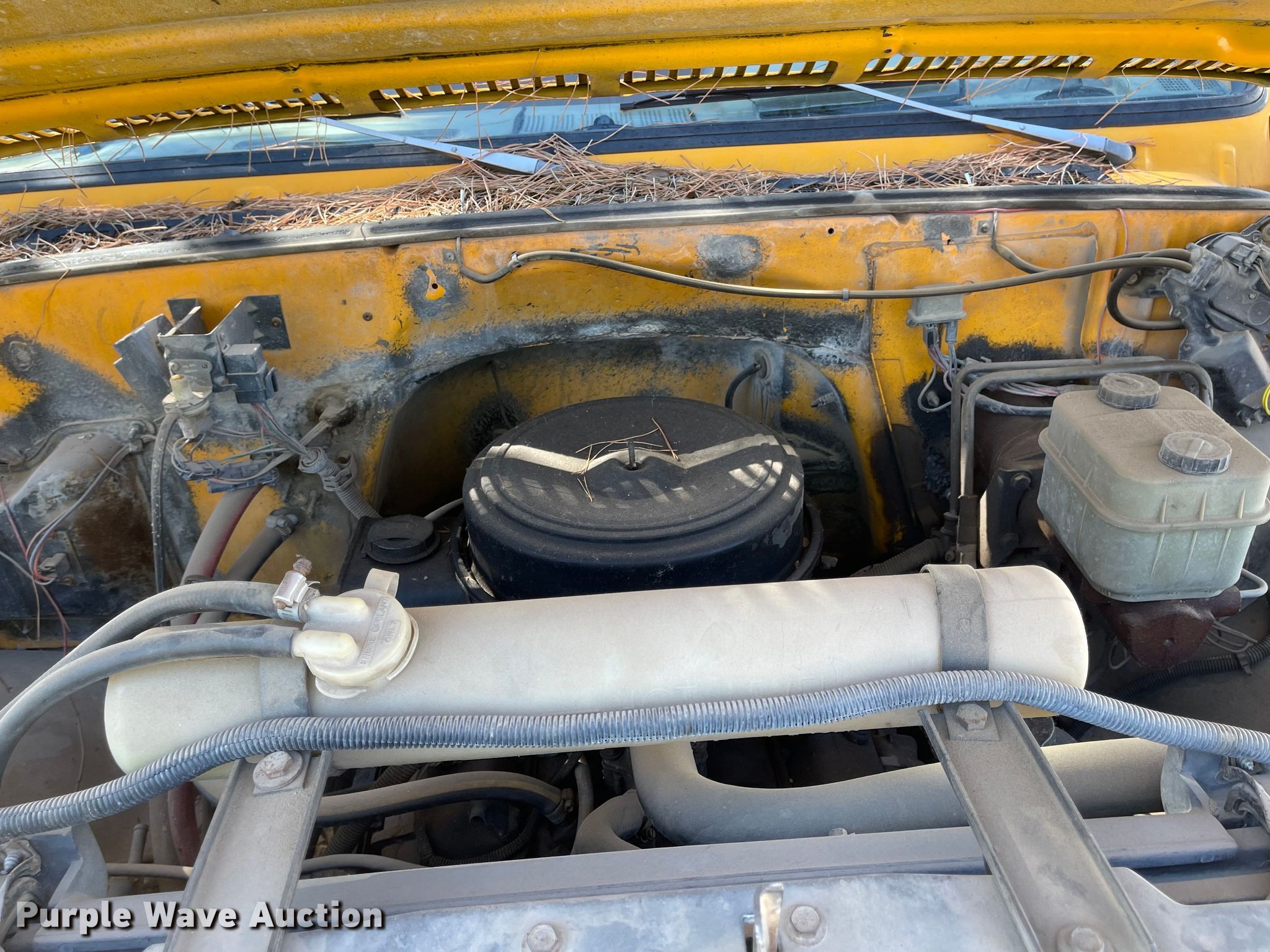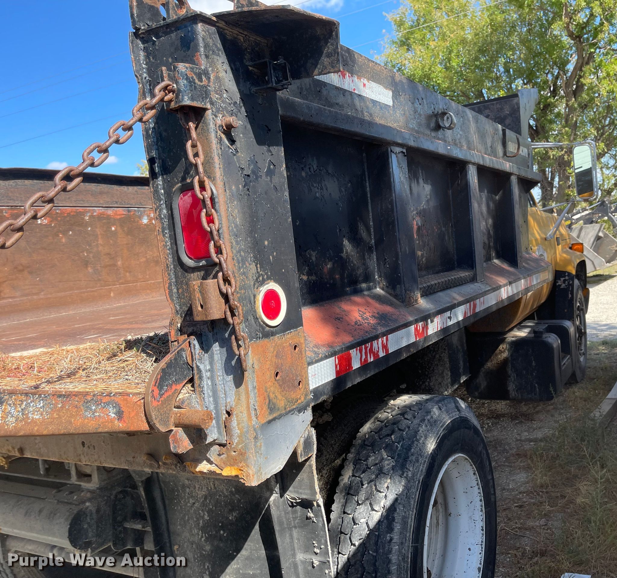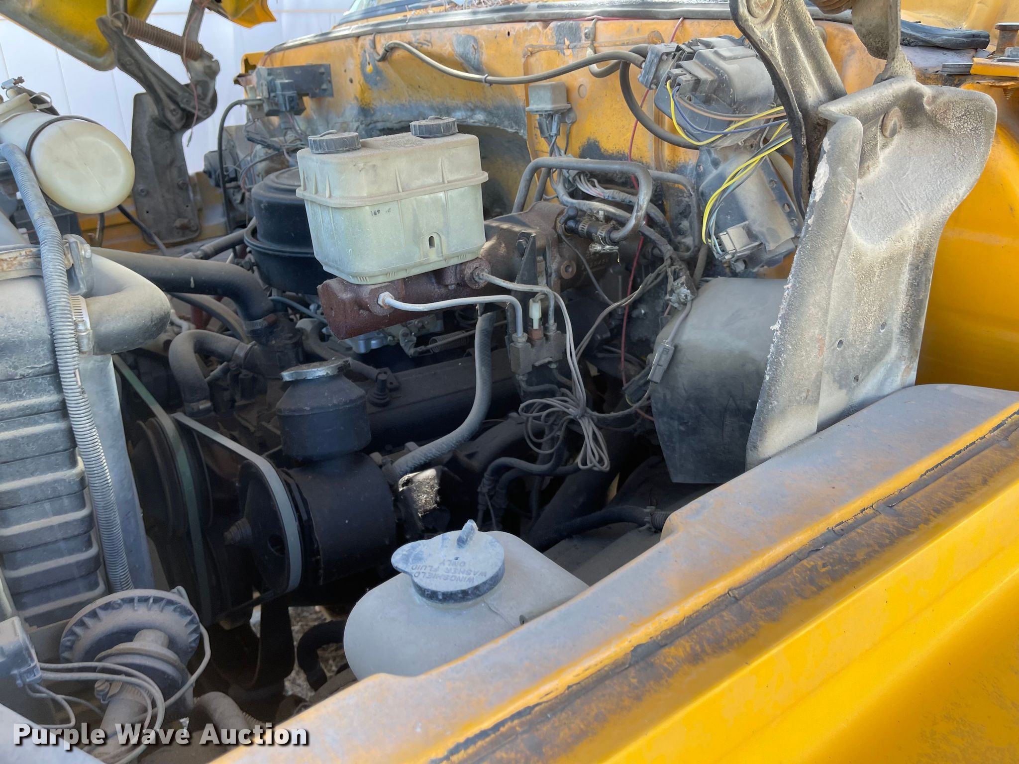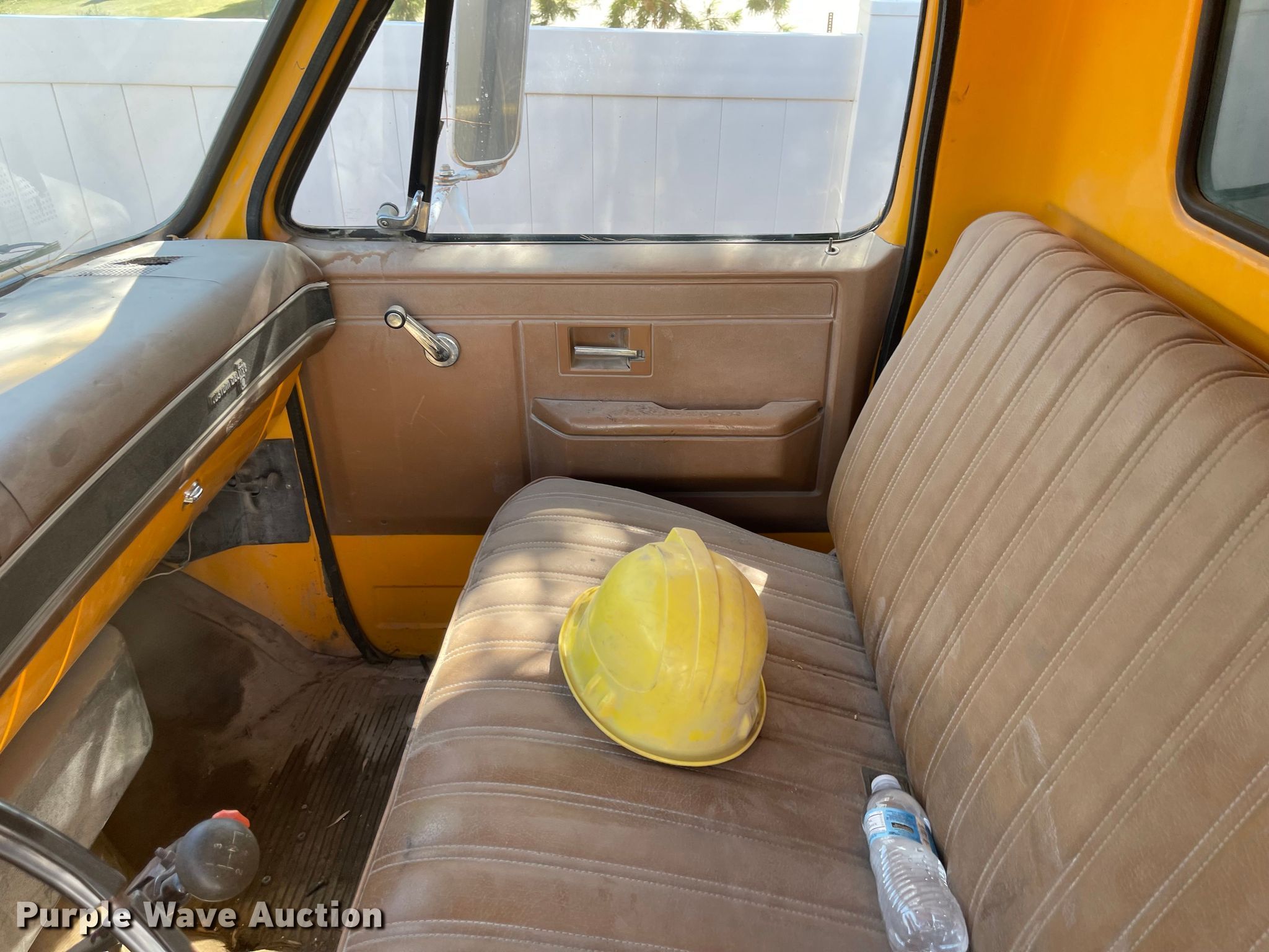 1988 Chevrolet C50 dump truck. Miles: 70,346 on odometer, VIN: 1GBG6D1AXJV106332. Engine Displacement: 5.7L, Cylinders: 8, Fuel type: Gas. Transmission Manual, Speed: 4, plus 2. Chassis Double frame, Axles: Single, Suspension: Spring, Brakes: Hydraulic, PTO. Interior Heat. Features Dump bed Heil, Capacity: 5 cu.yd., 10' L x 96" W, Side height: 30", Bed type: Steel, Ram: Single , End gate: Manual. Tires Front: 9.00R20, Rear: 295/75R22.5. Notes Dead battery. Kansas title. City of Stockton. 115 South Walnut Street. Stockton, KS 67669