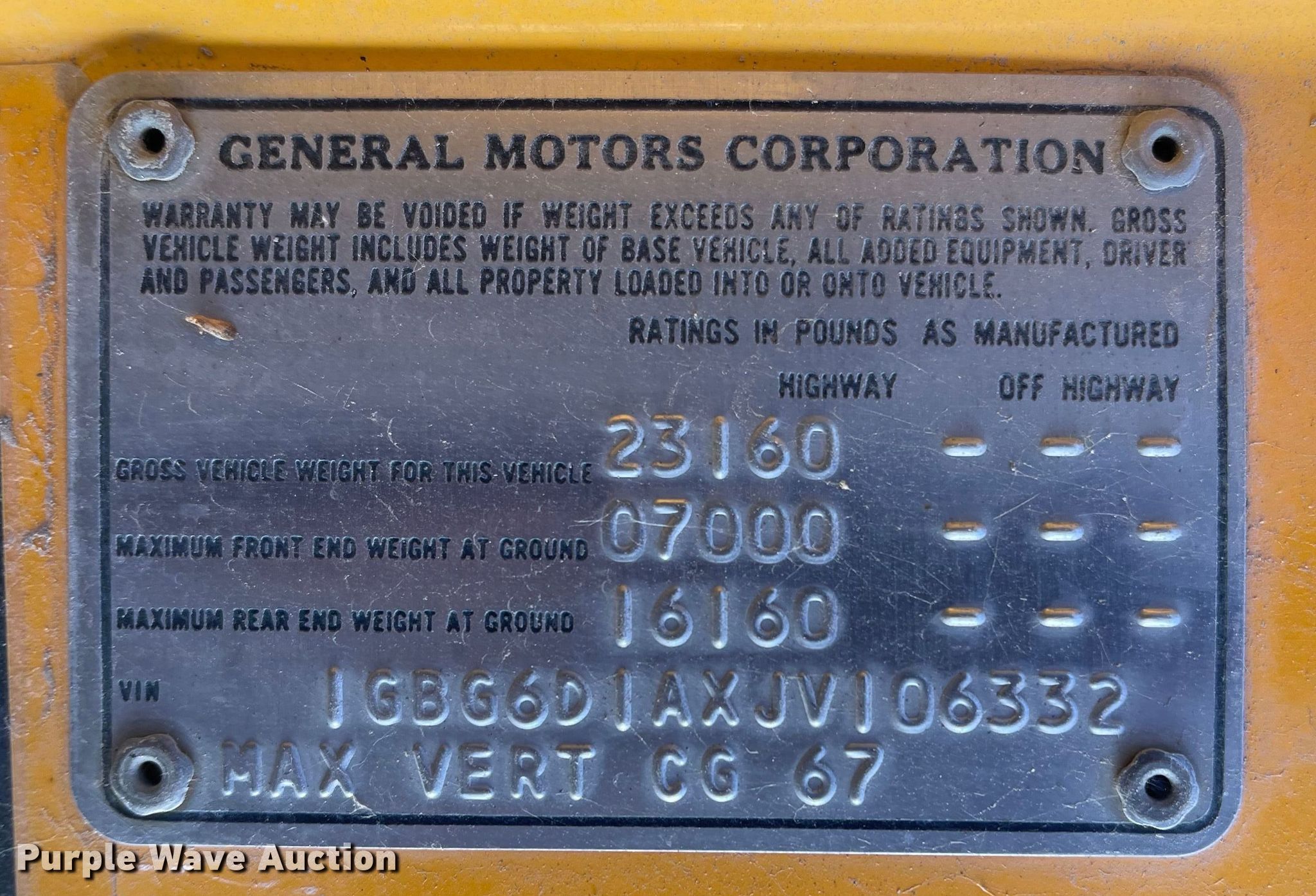 Purple Wave is selling a used Construction Dump Truck in Kansas. This item is a 1988 Chevrolet C50 dump truck with the following: Miles: 70,346 on odometer, VIN: 1GBG6D1AXJV106332